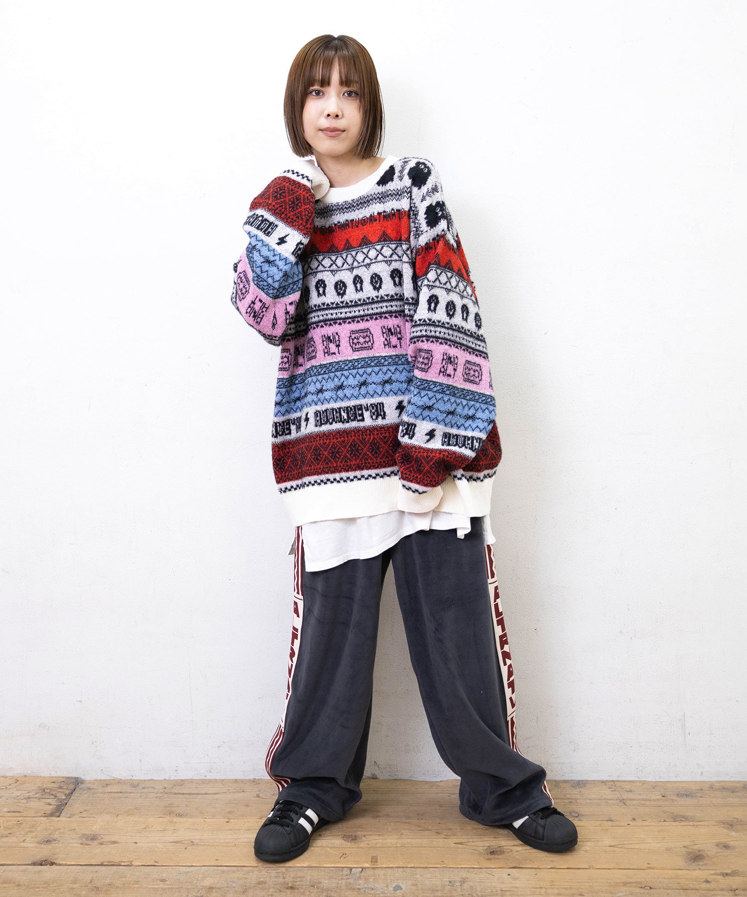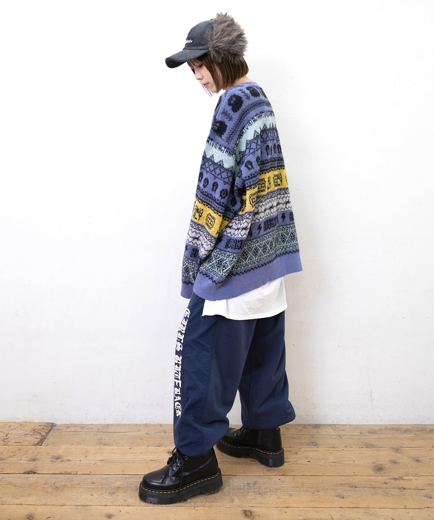 デニムや無地のパンツとサラッと合わせるのがおすすめです。