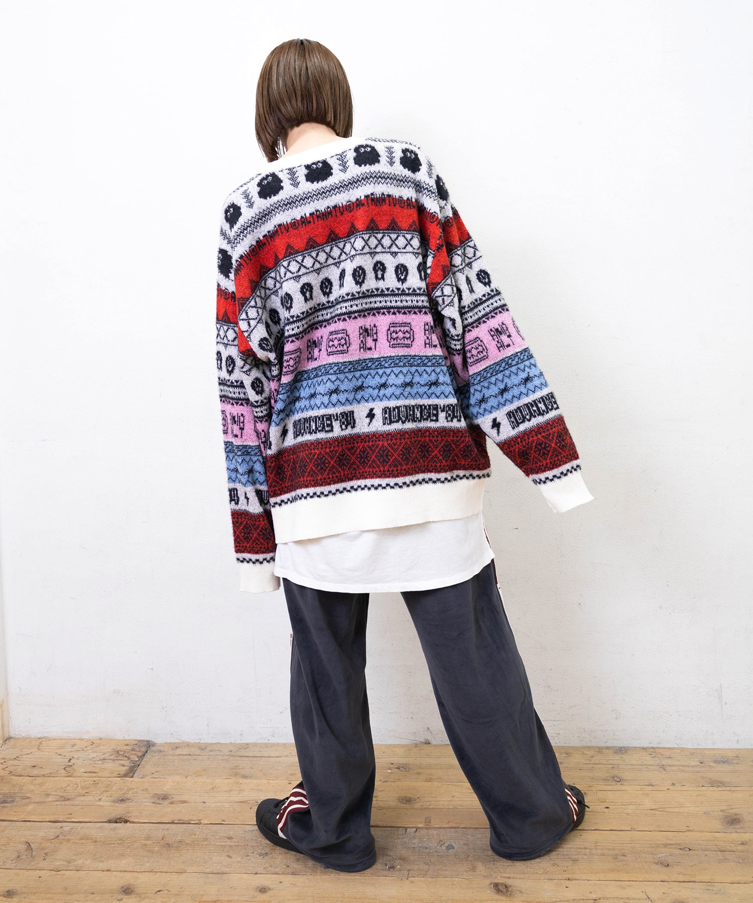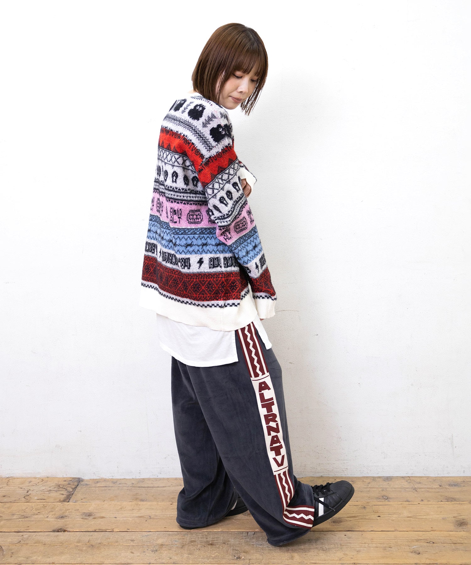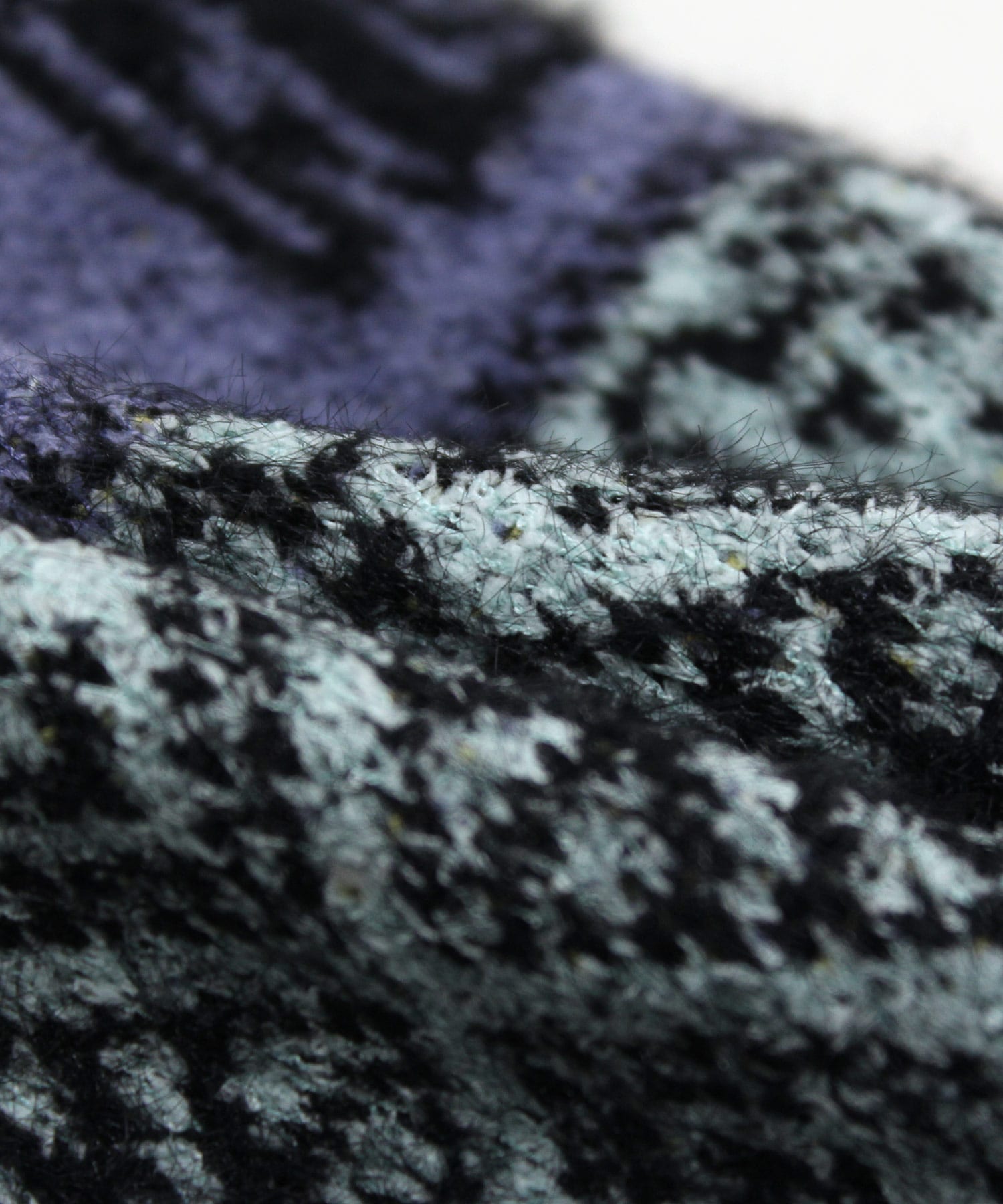 糸はモールヤーンを主に使用し、柄のブラックの部分の糸だけシャギーを使用しました。