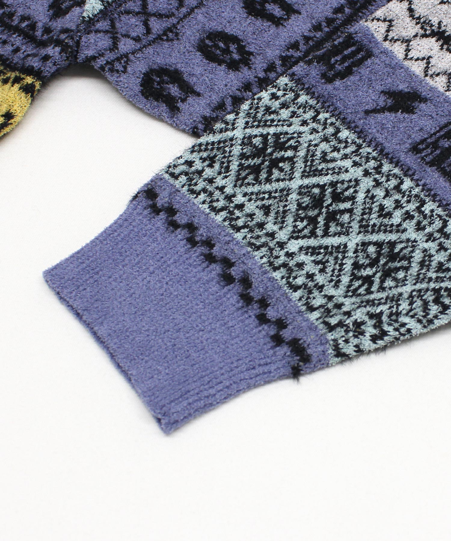 シャギーが全体的に少しずつ出ていて、モールヤーンだけでは出せないシャギーのモシャモシャした感じがミックスされており、可愛い編み地に仕上がっています。
