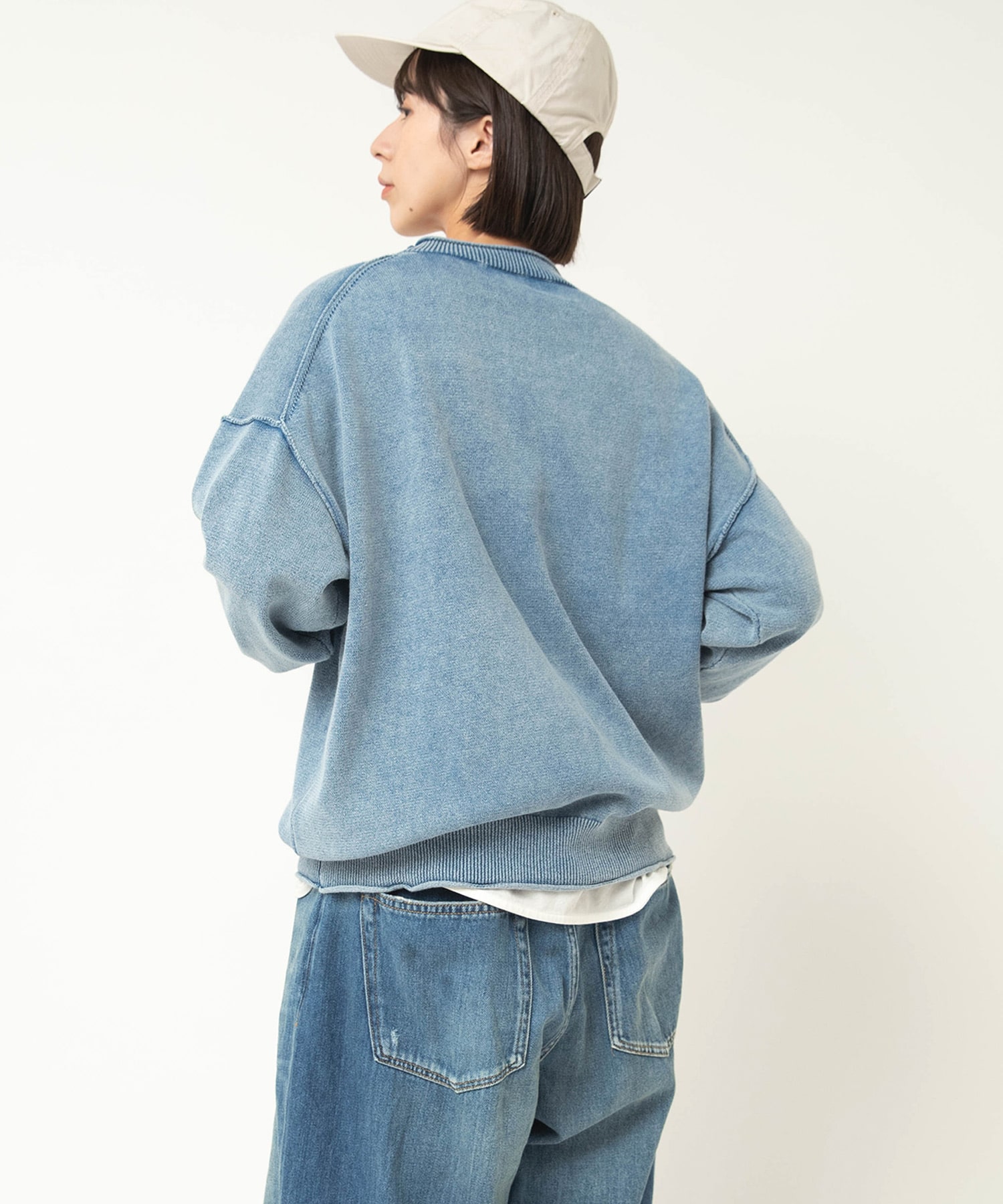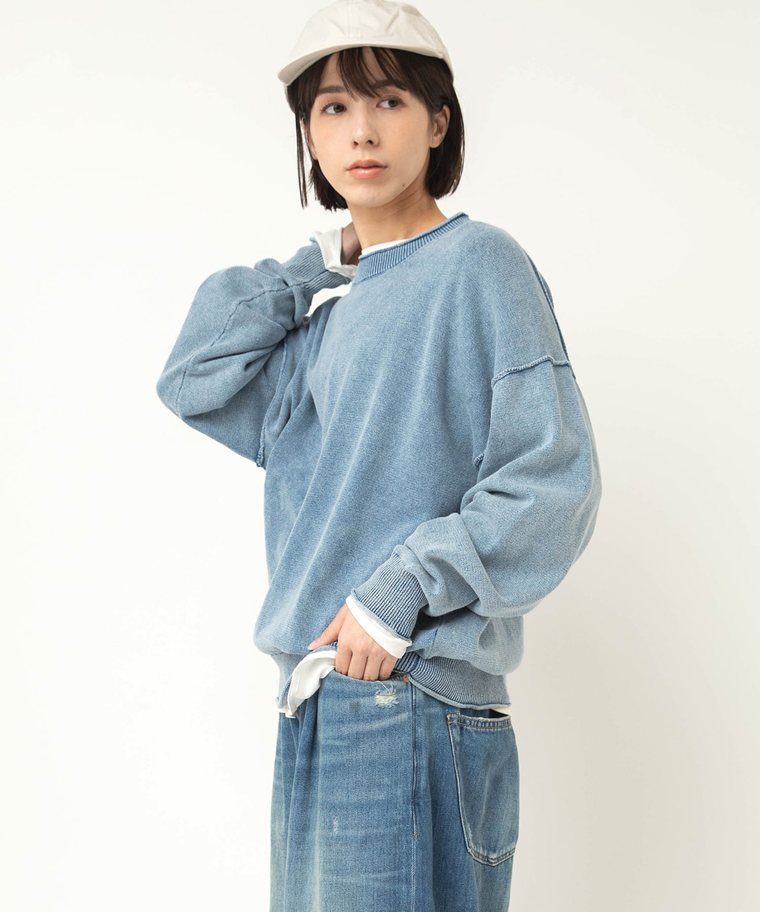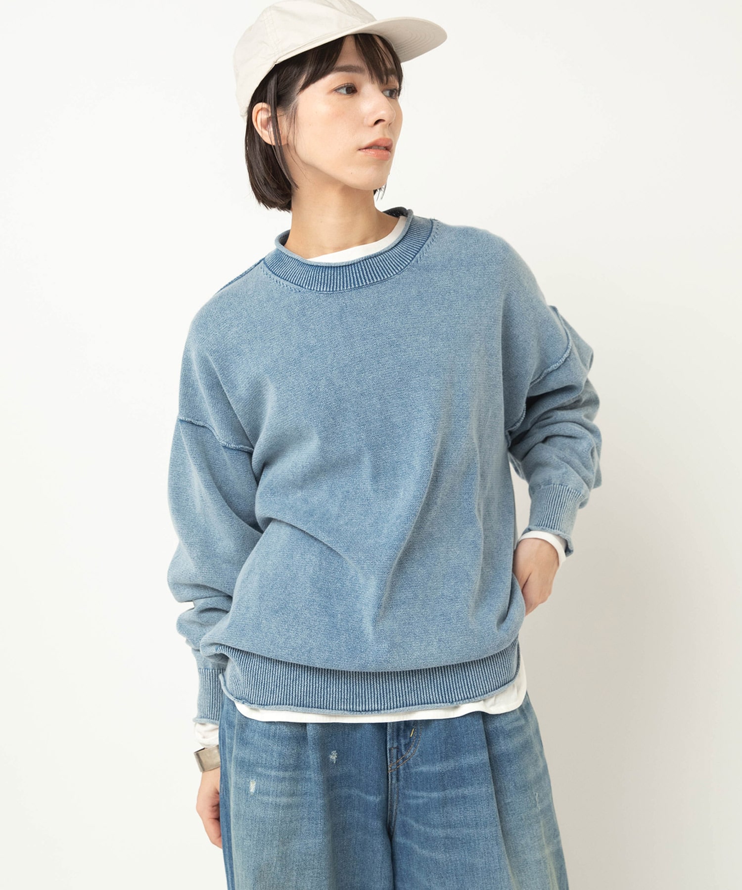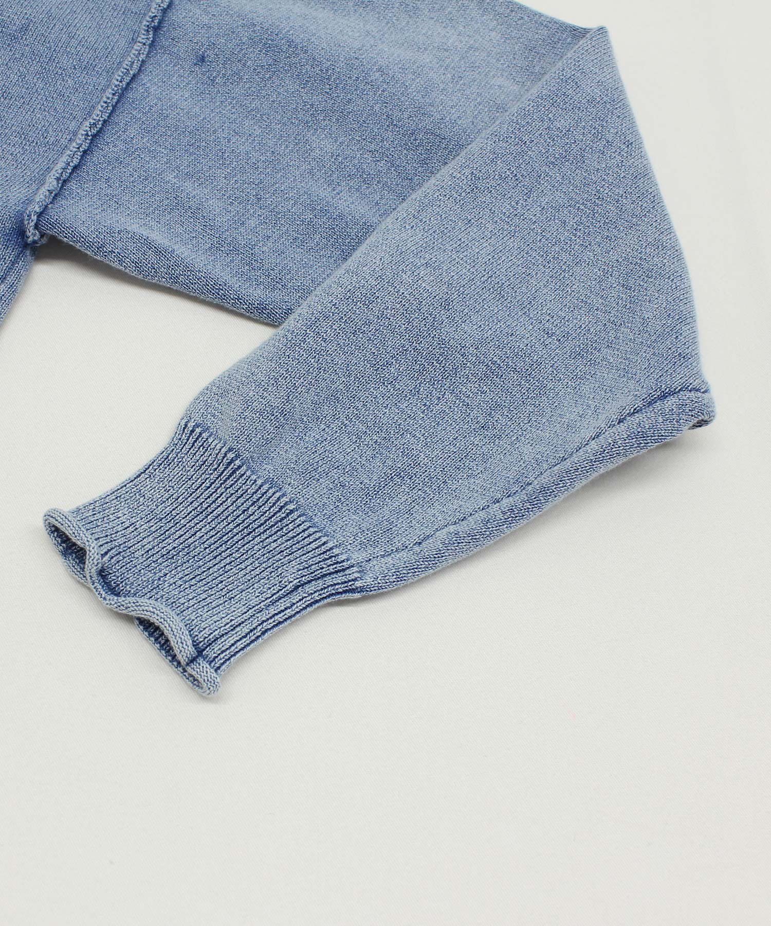 加工感のあるニットは珍しく、さらにインディゴなのでデニムのような深みのある色落ち感が楽しめるのが特徴です。