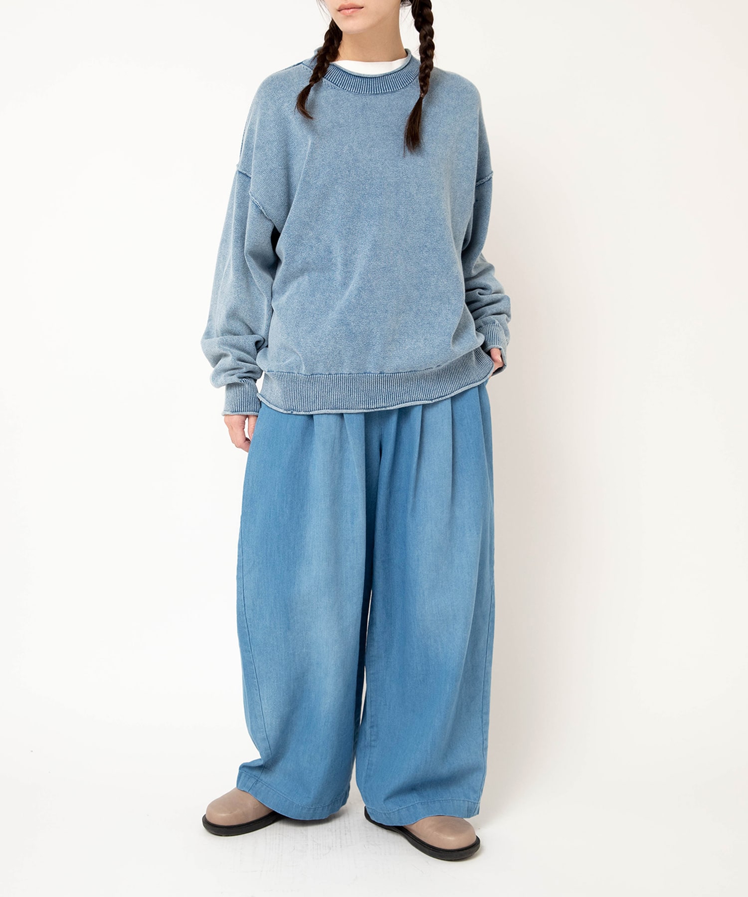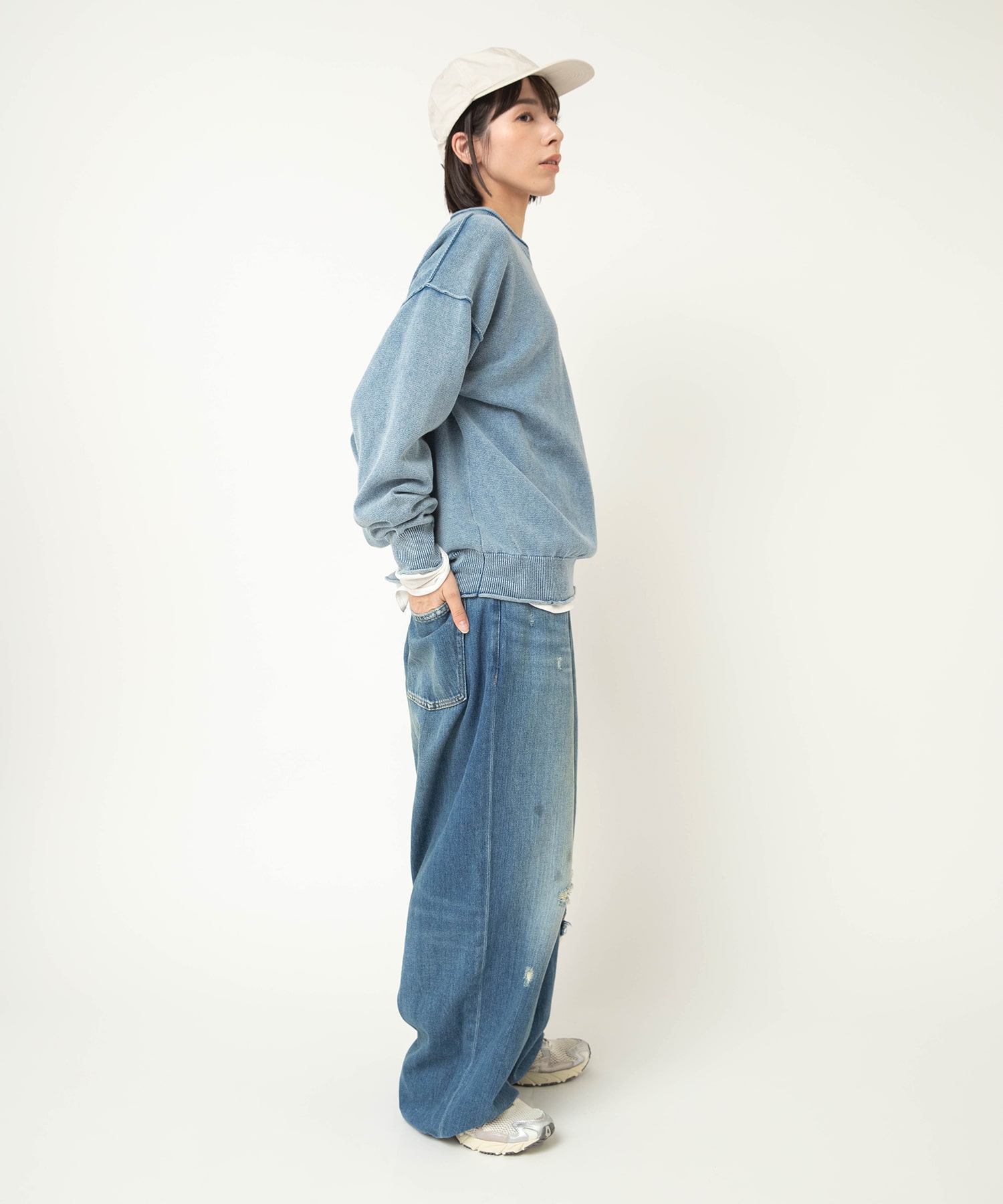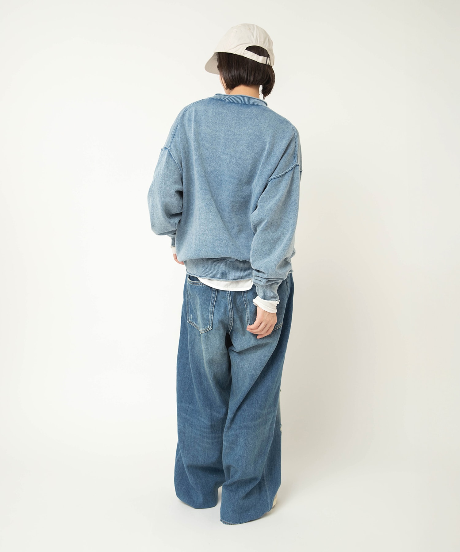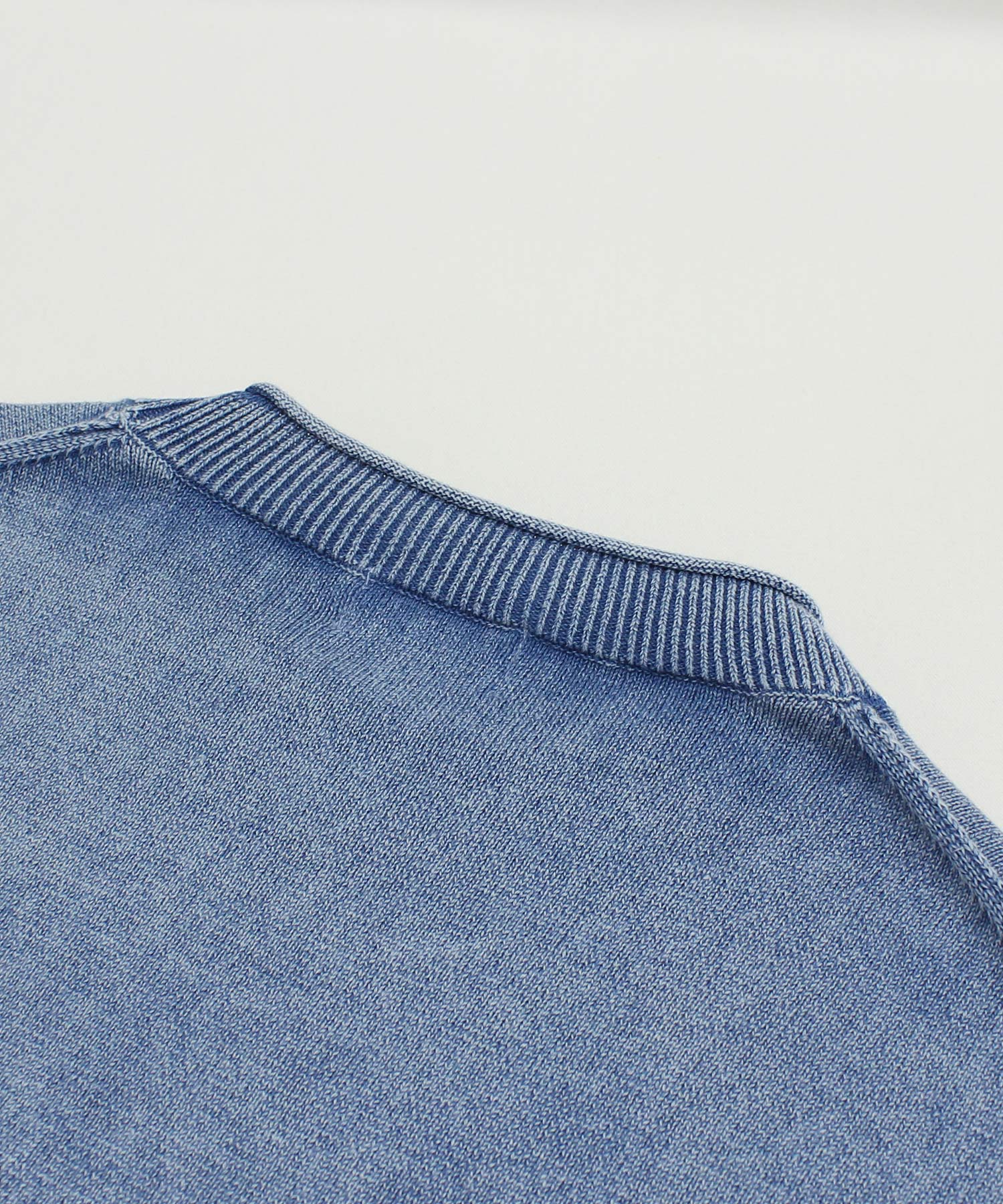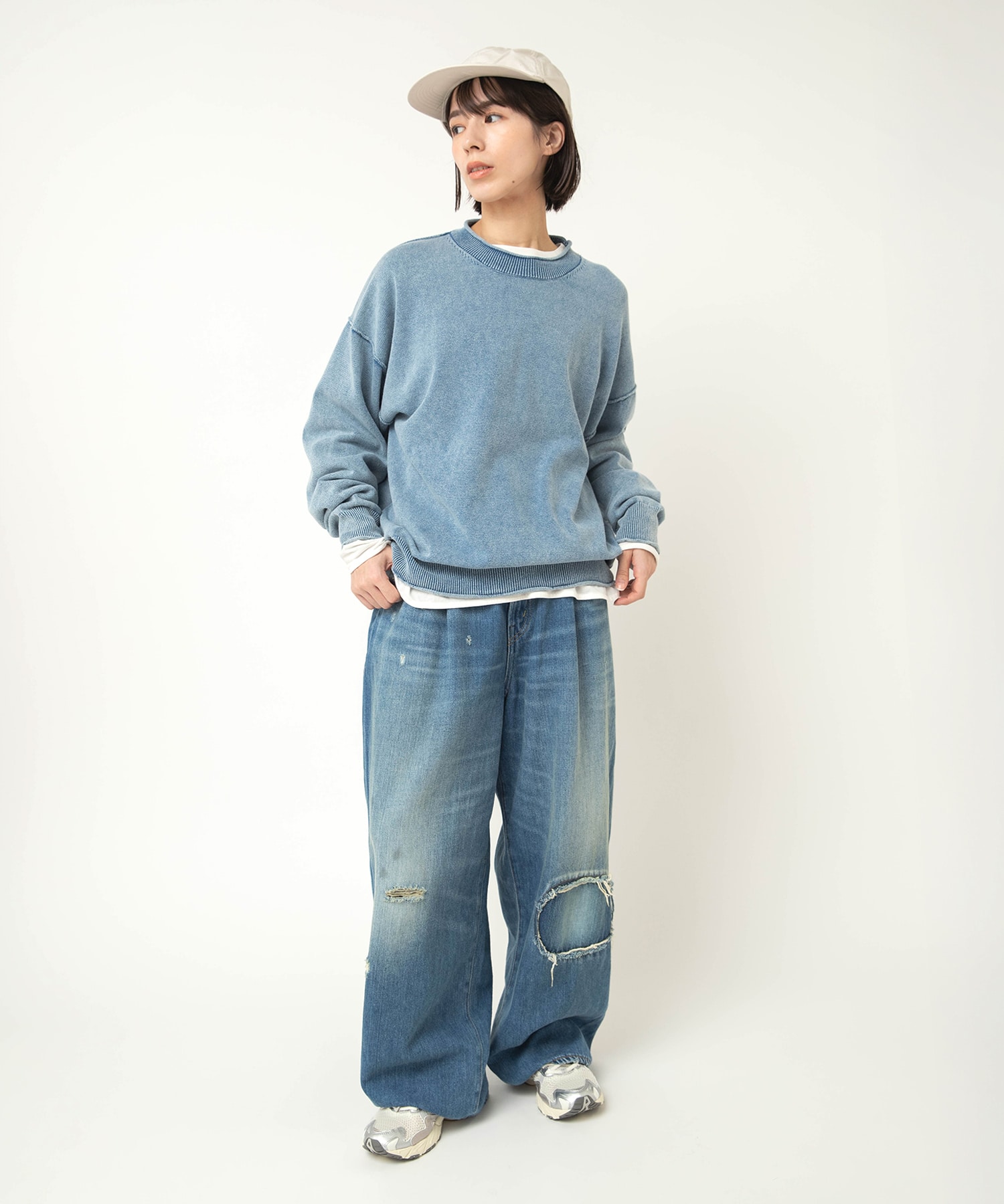 加工感のあるニットは珍しく、さらにインディゴなのでデニムのような深みのある色落ち感が楽しめるのが特徴です。