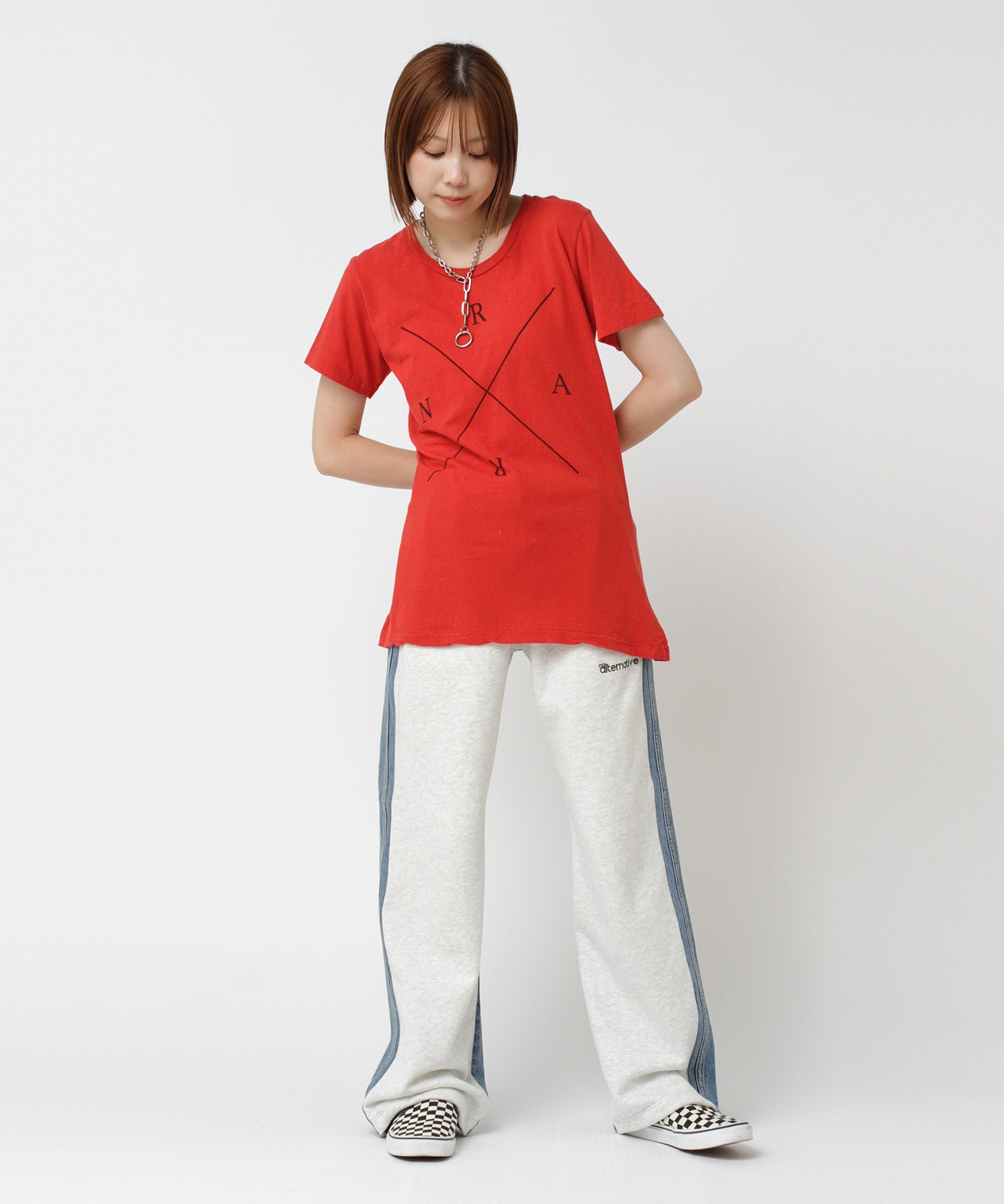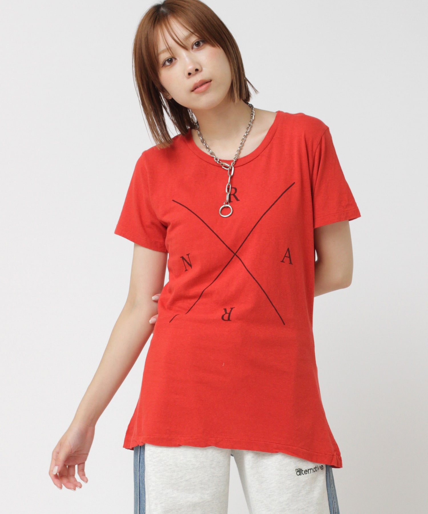アイテム説明シンプルだけど少しハードな印象のTシャツフロントのプリントはシンプルなデザインですが、バックプリントはインパクトのある存在感抜群の1着に仕上げました。やや細長の計算された、よれシルエットがポイントで、肌触りの良いラフな素材を使用。 生地感:柔らかなやや薄手の生地透け感ややあり(ホワイトあり)/伸縮性ありシルエット:スタンダード※こちらは参考情報となります。多少の誤差はご了承ください。※画像の商品はサンプルです。実際の商品と仕様、加工、サイズが若干異なる場合がございます。ホワイト・レッドModel:身長 166 cm 着用サイズ:MサイズブラックModel:身長 172 cm 着用サイズ:Mサイズ