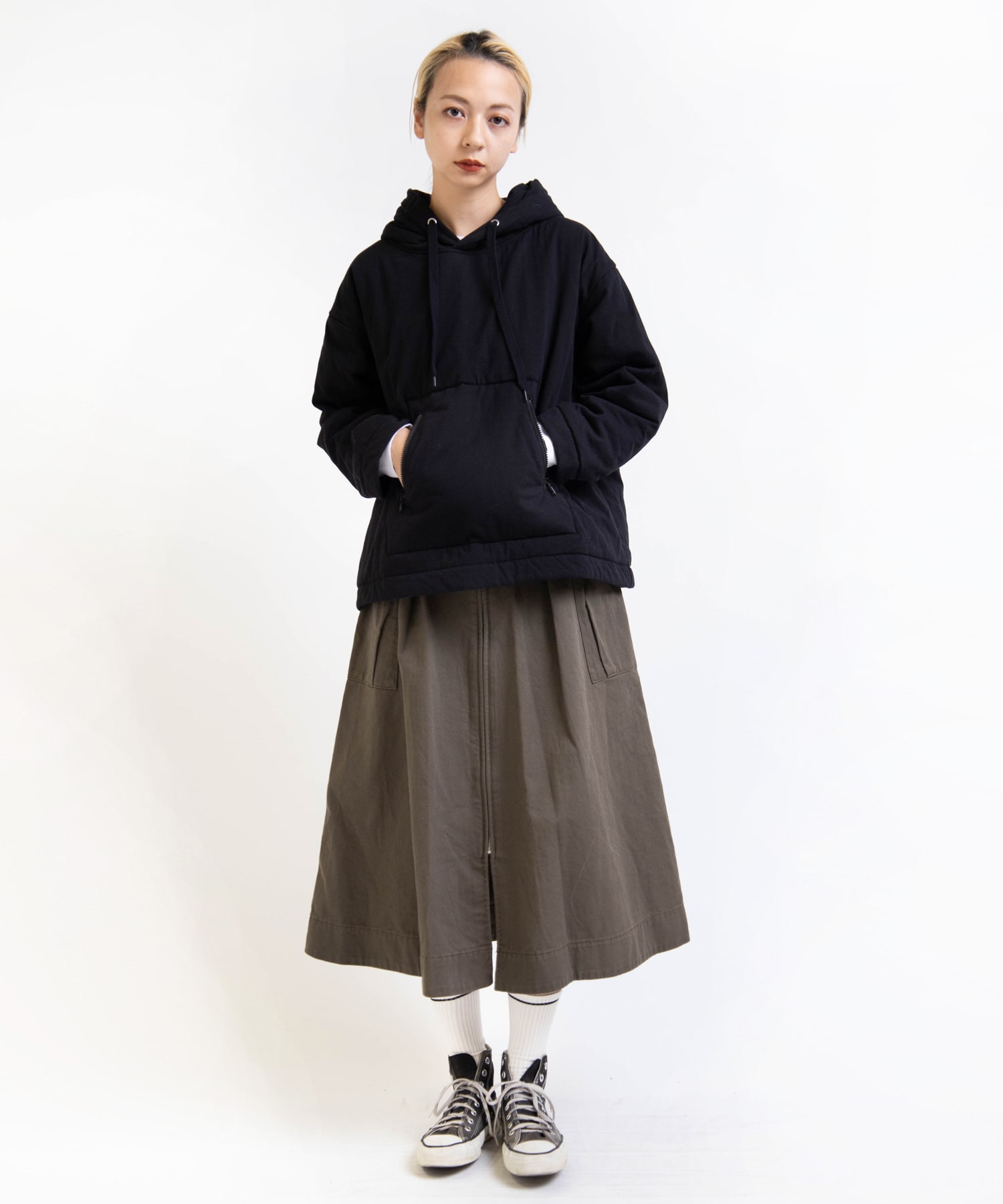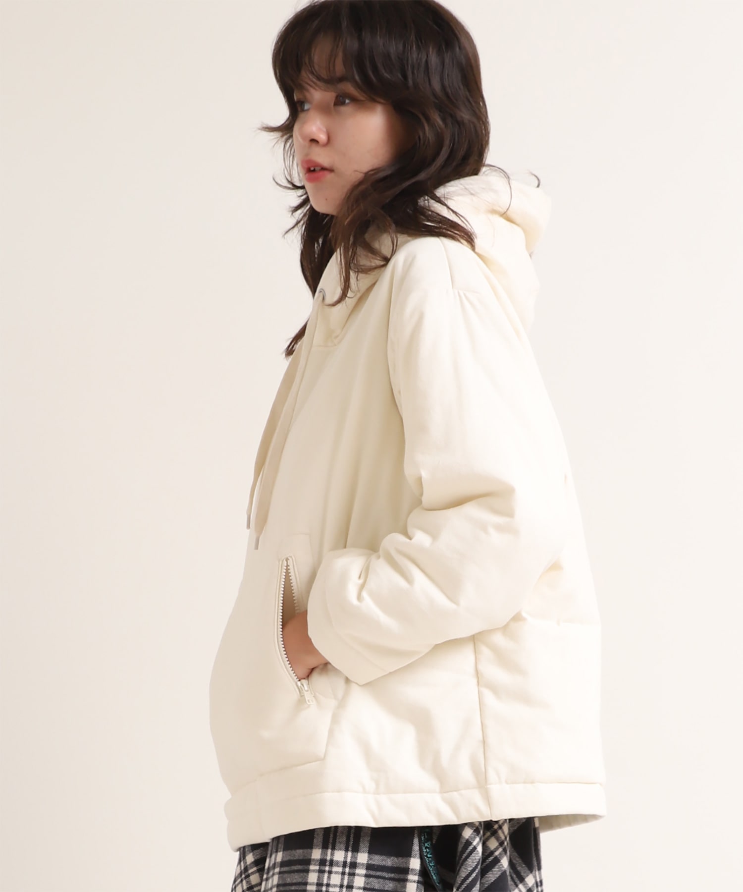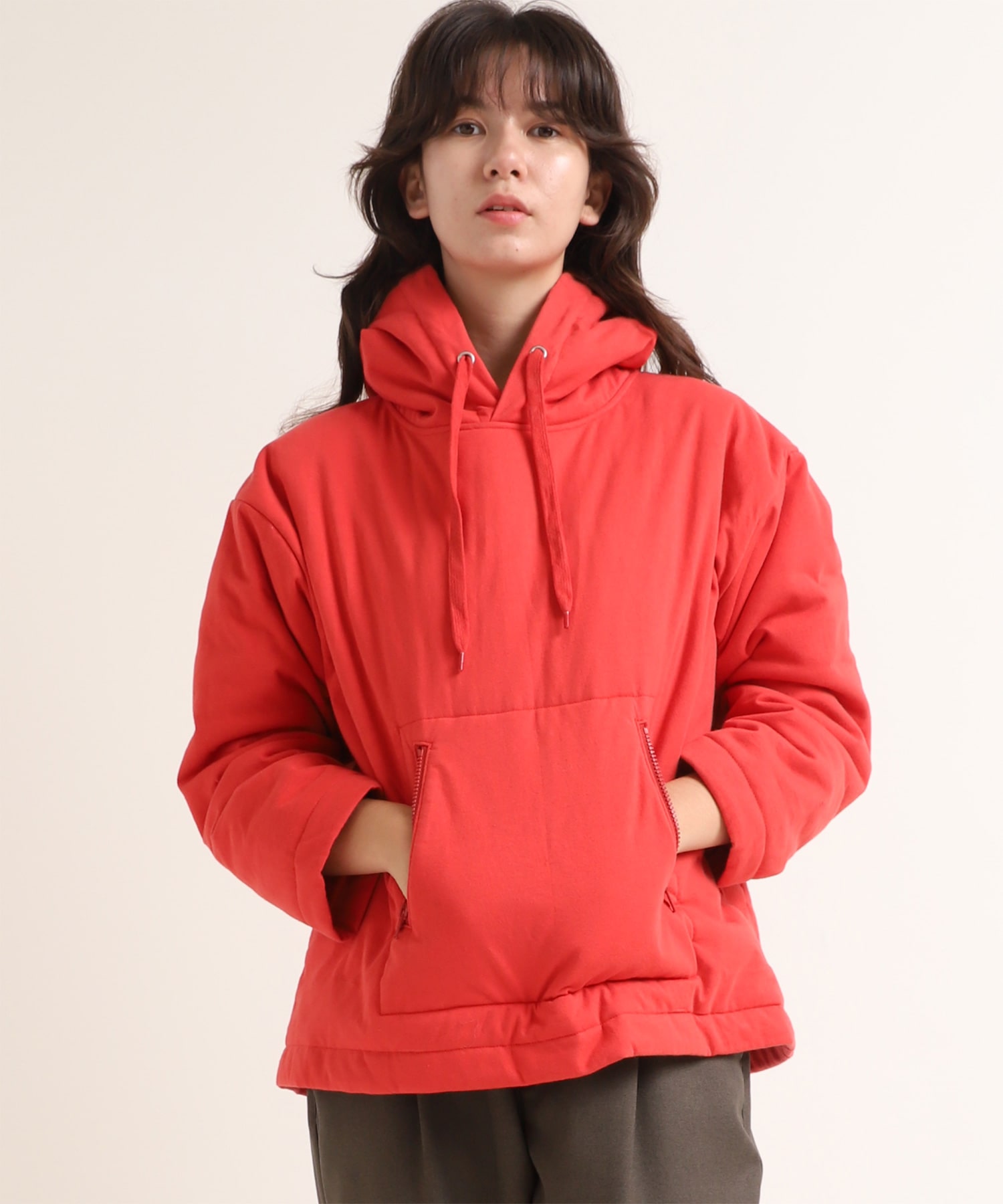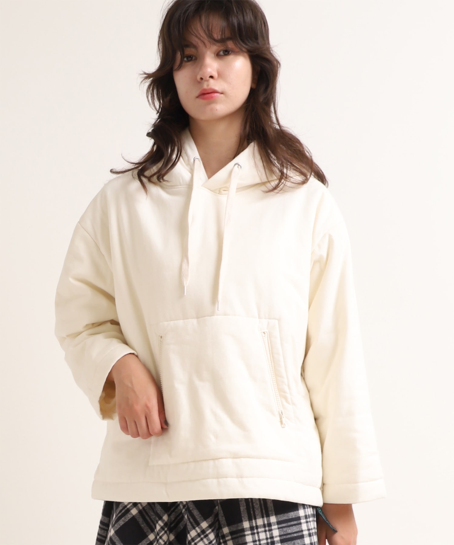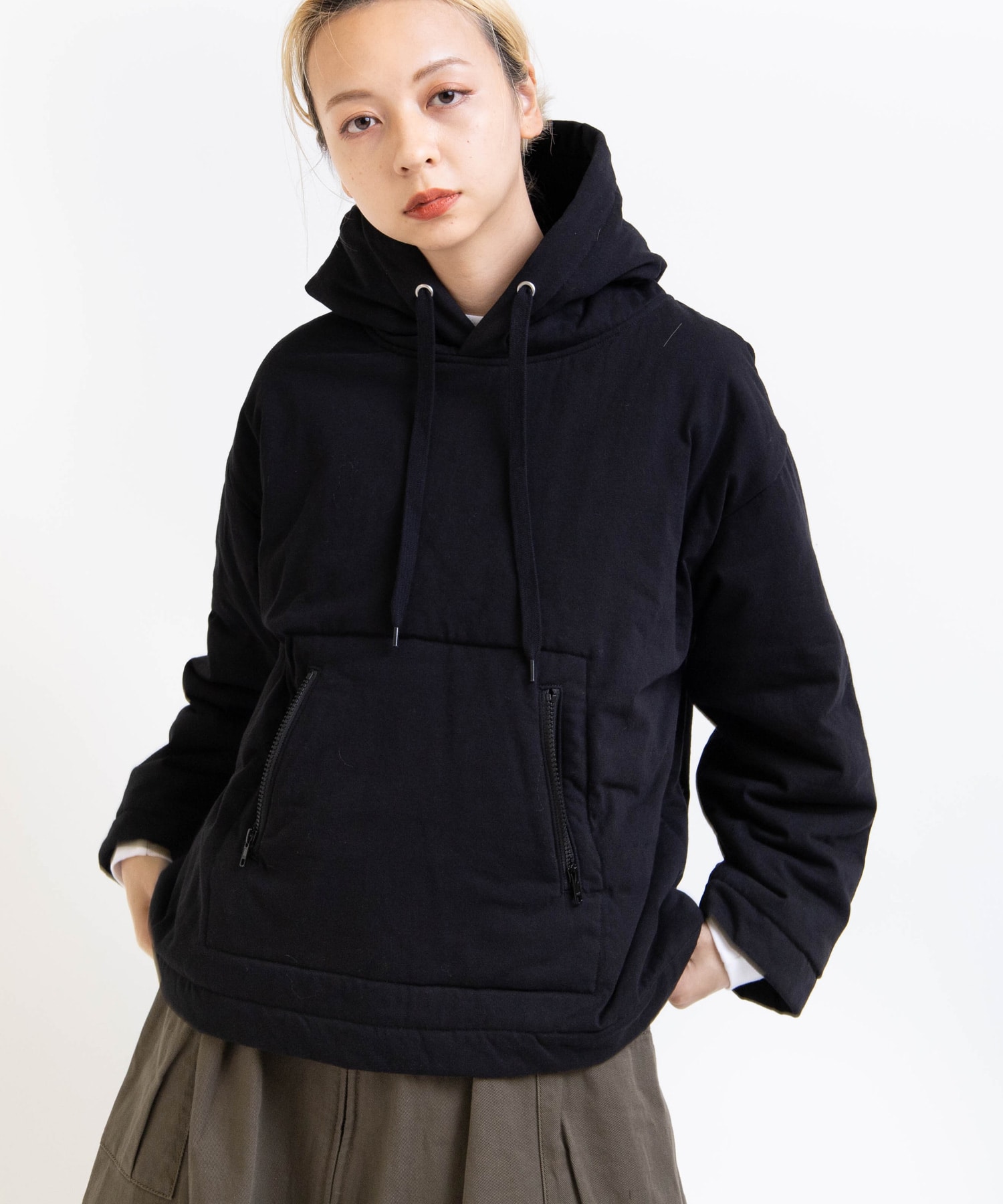 天竺で中綿を挟んだ、フワフワ感のあるフーディー