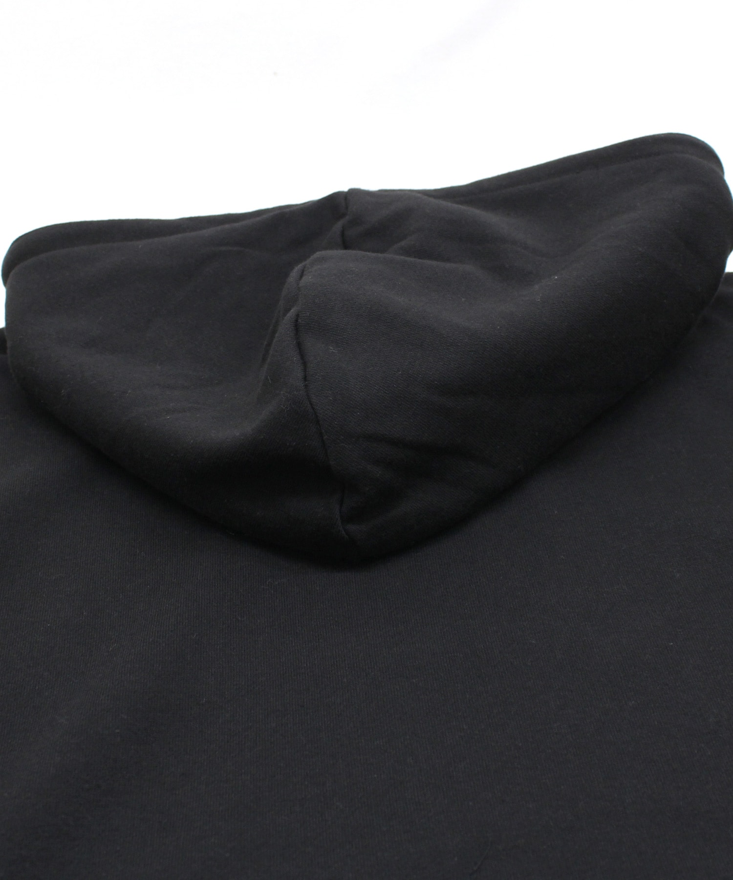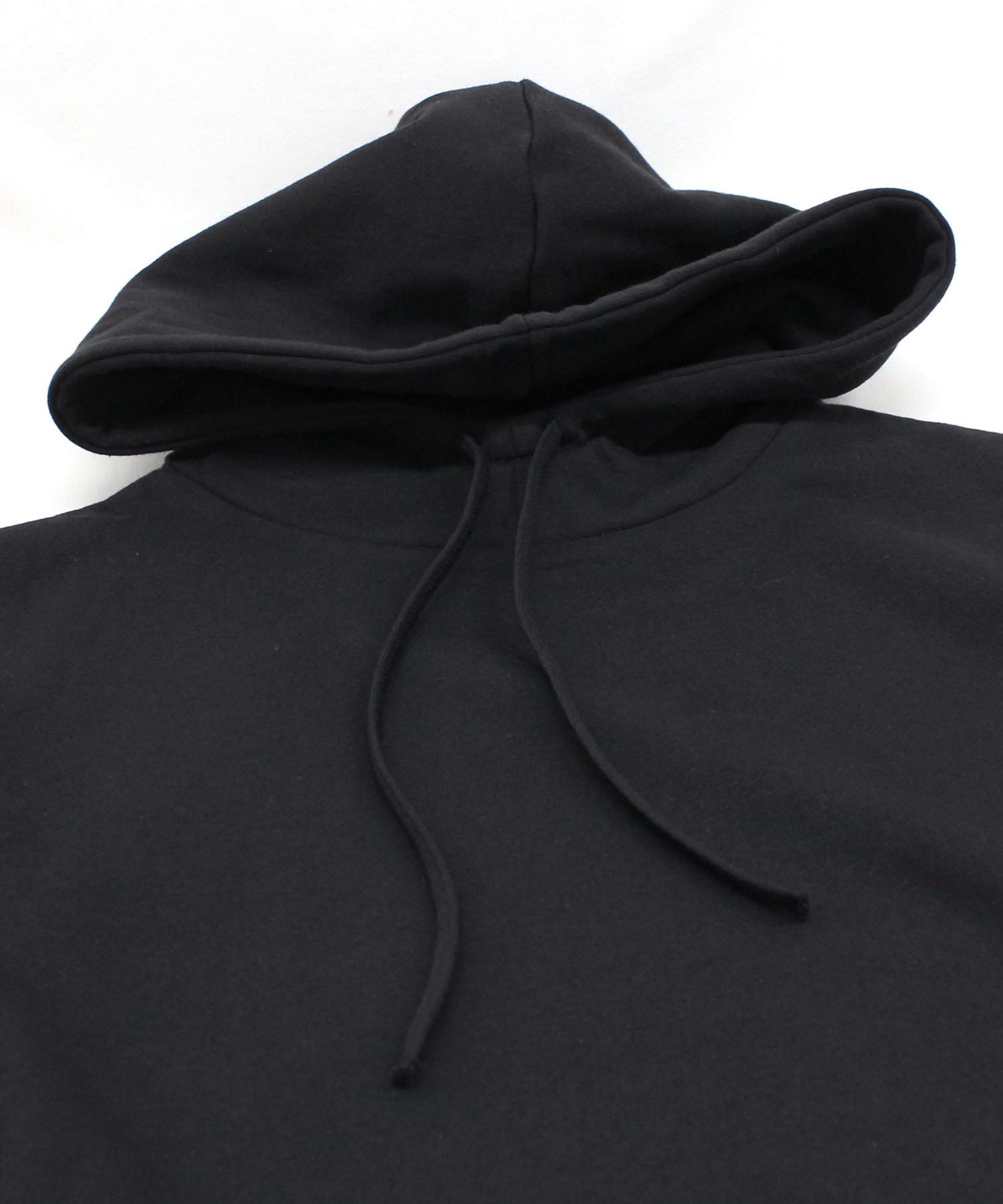 袖や脇、裾を切り取り、裏と表を反転させたようなデザインのパーカー。