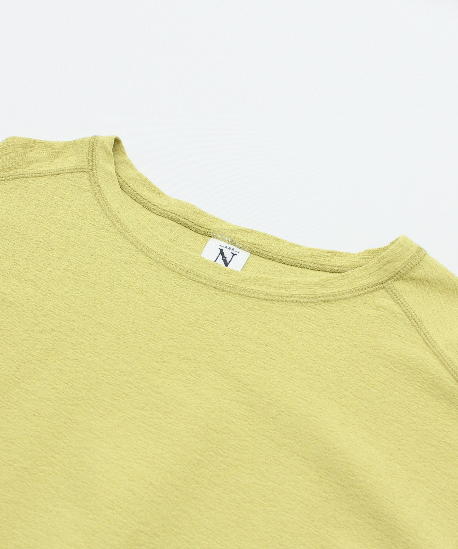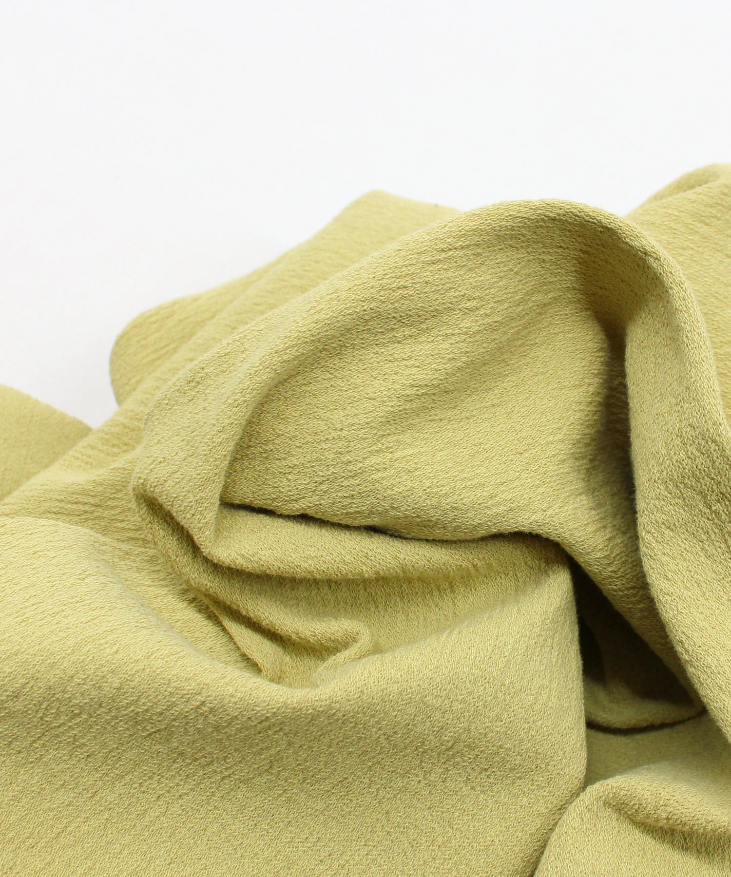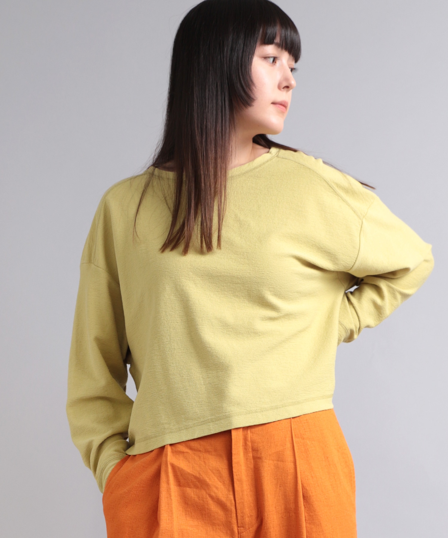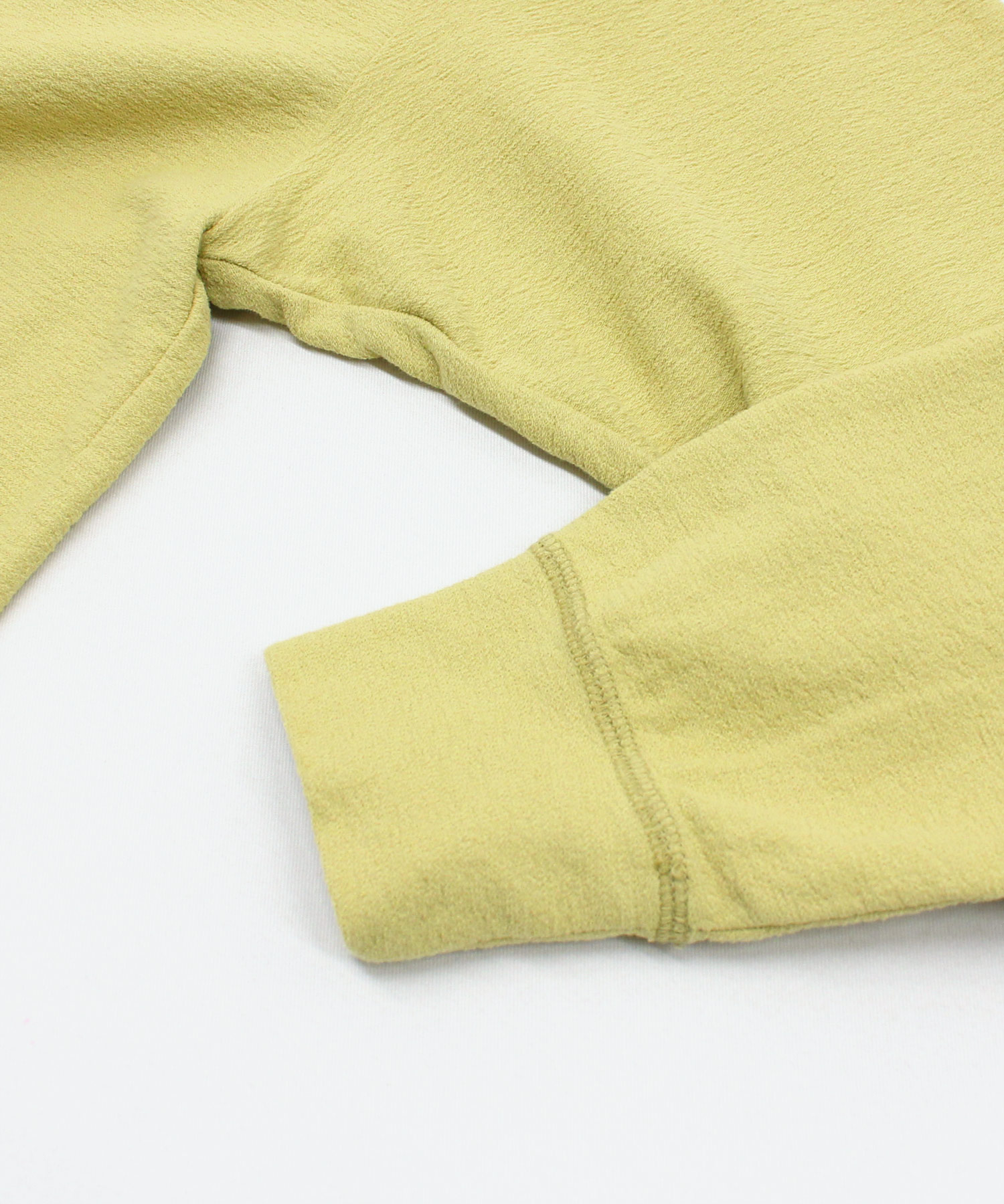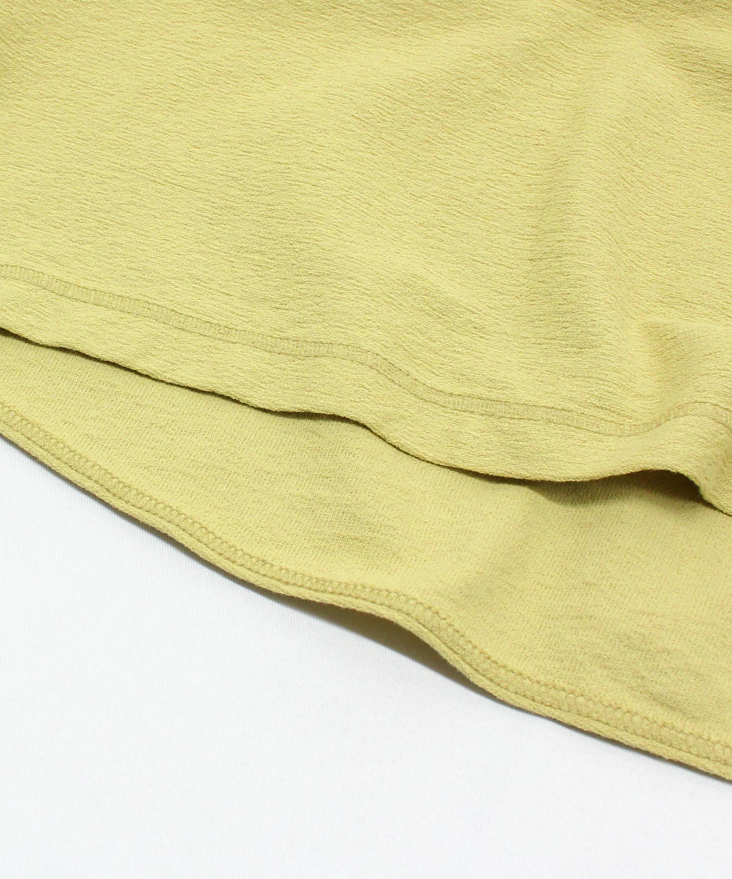 着心地の良いドライタッチな風合いが特徴の特殊な糸を、凹凸感のある組織で編み立てた生地を使用しています。