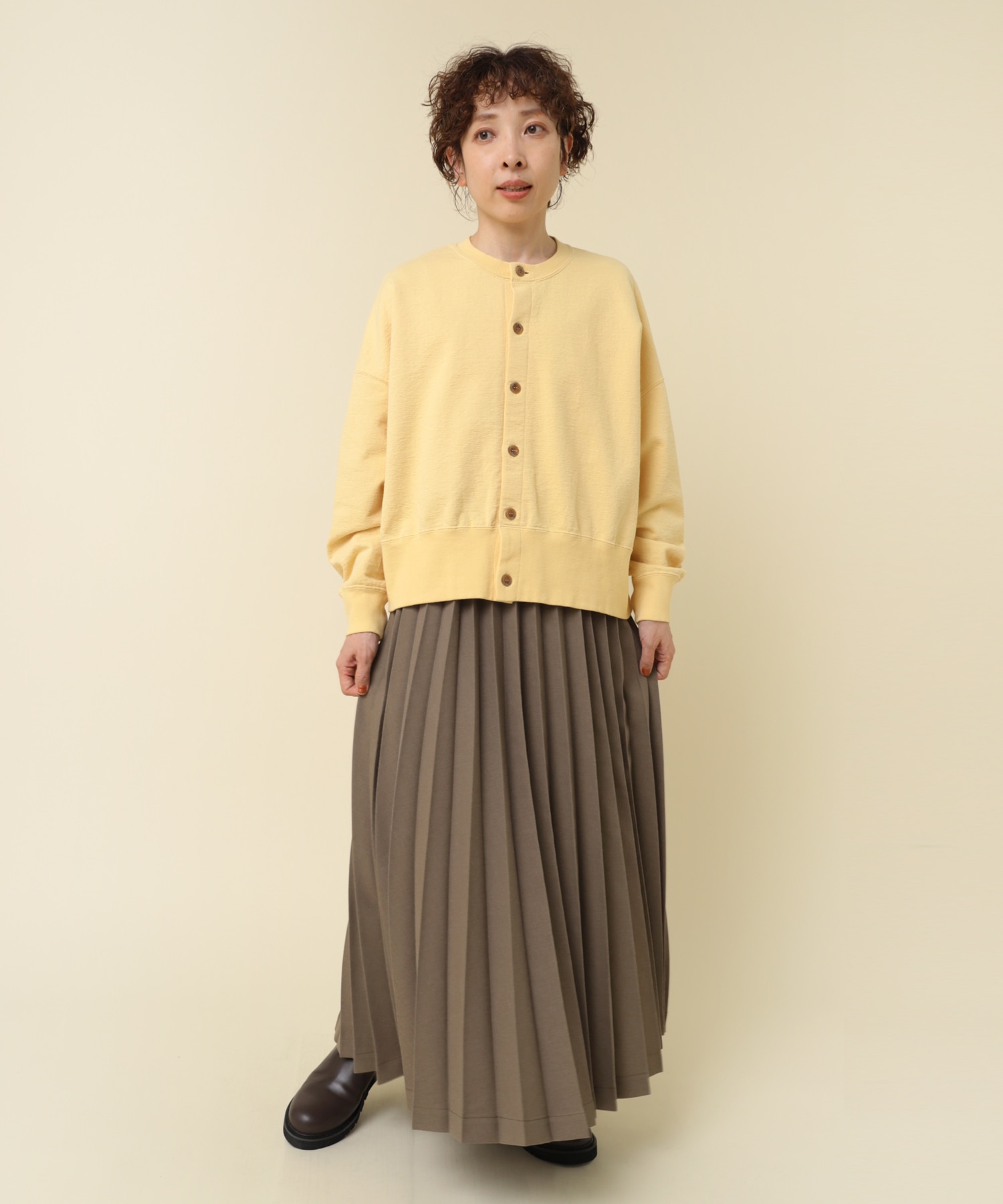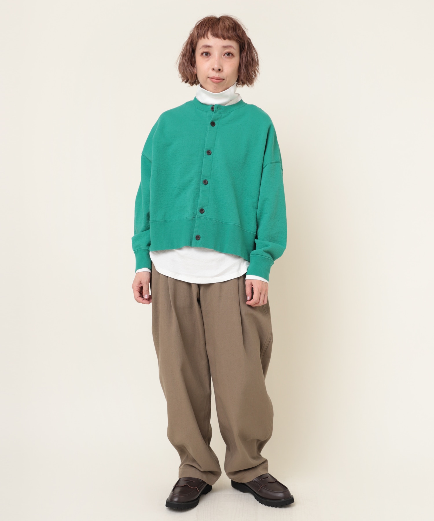 スウェットなどの裏地のようなしっかり感がある生地を使用したカーディガンです。
