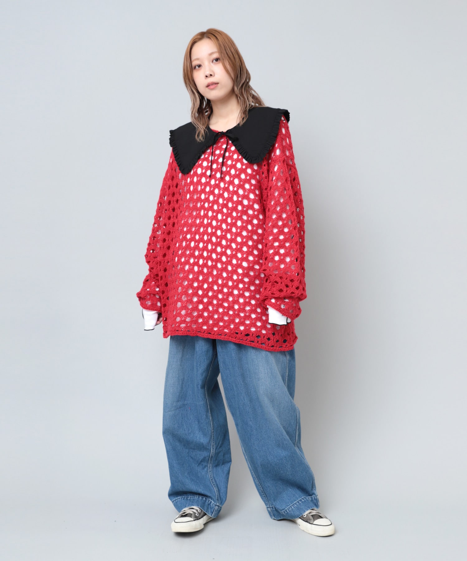衿ぐりは広めにしていて、インに着ても見えないようにしました。