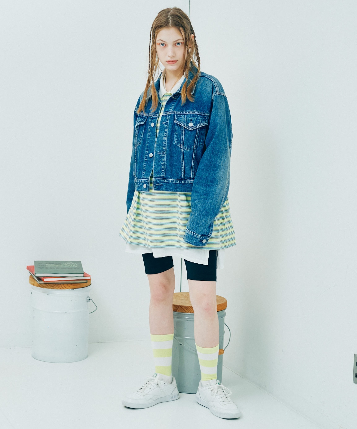 身頃のボーダーは4色使いの細ピッチなボーダー、