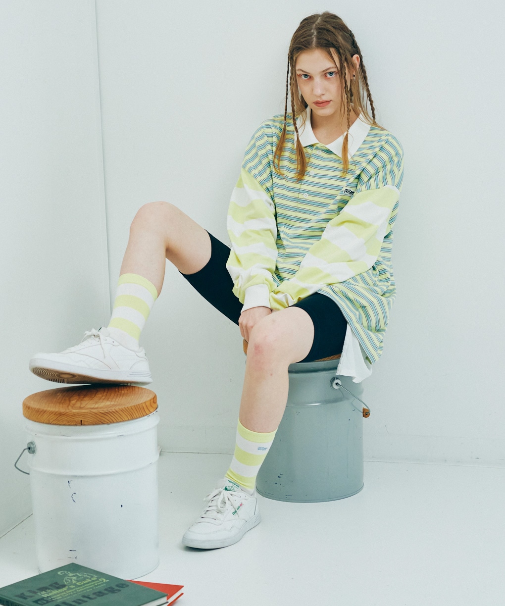 袖は身頃のボーダーの中の色から2色使った太ピッチなボーダーを組み合わせたシリーズです。