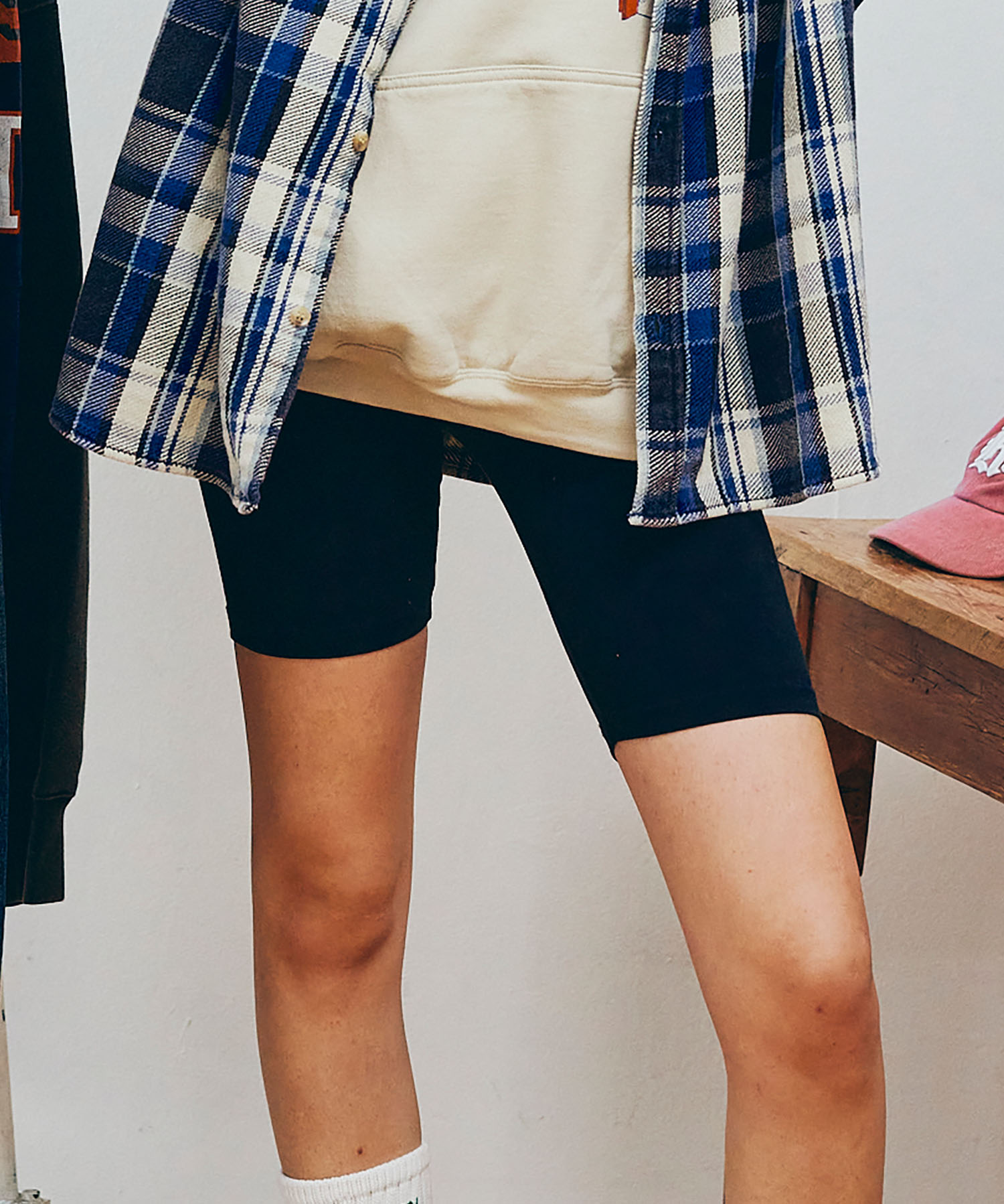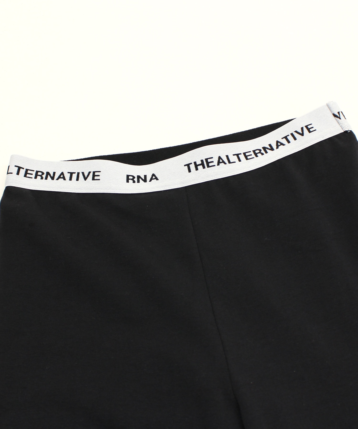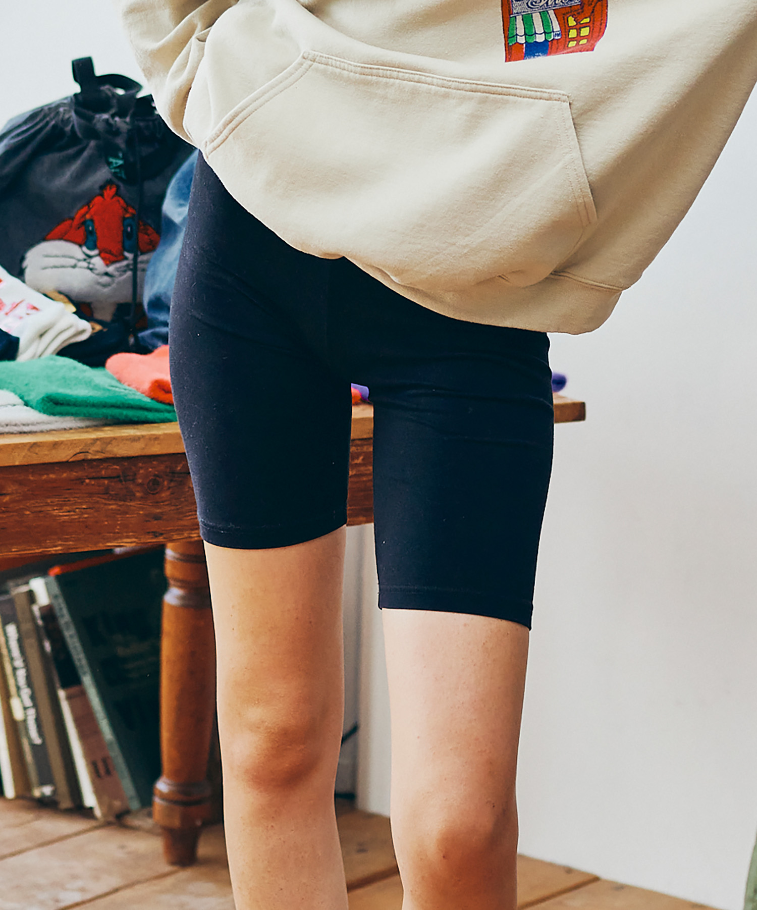 トップスの裾とバイカーパンツのウエストのゴムは、