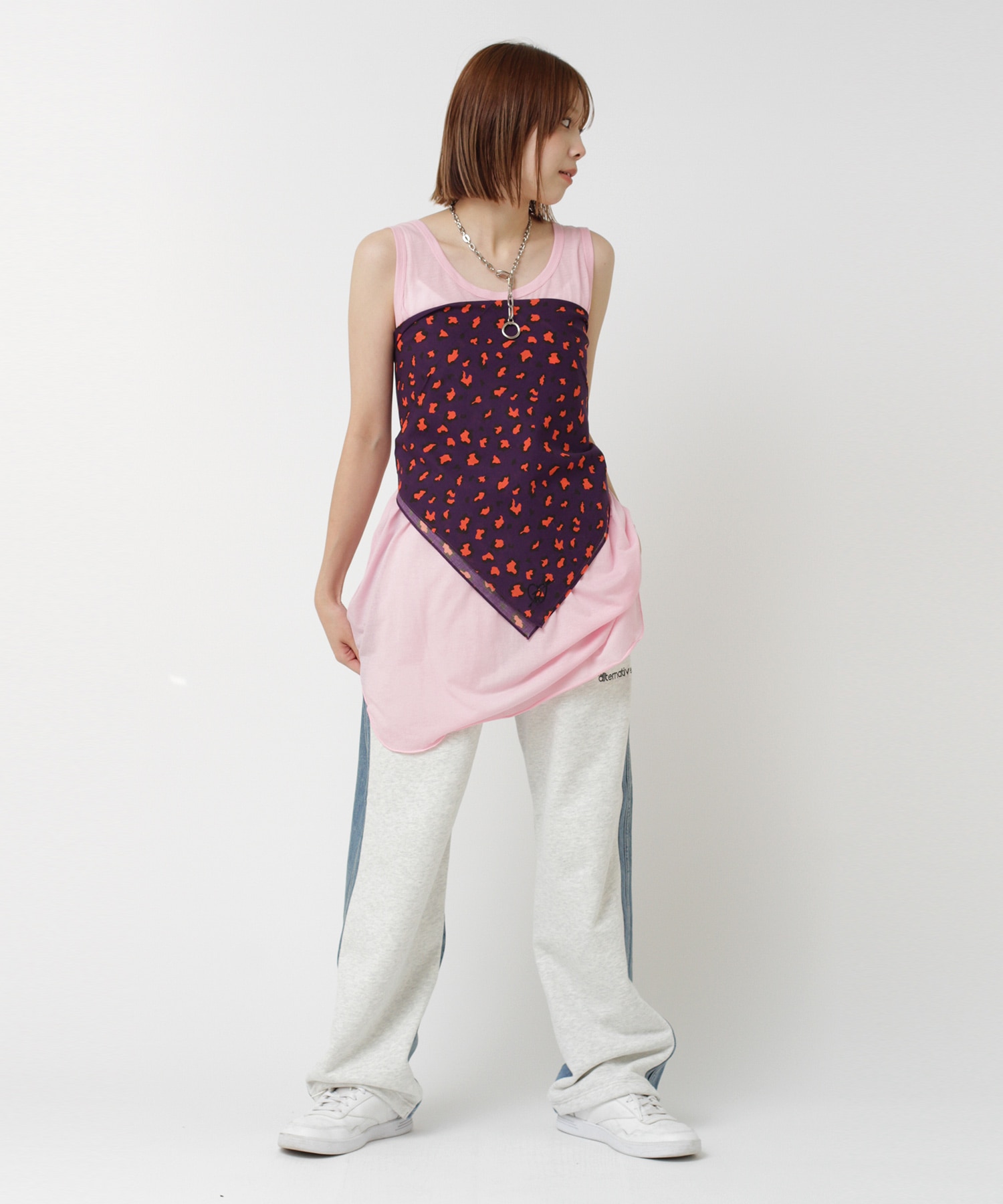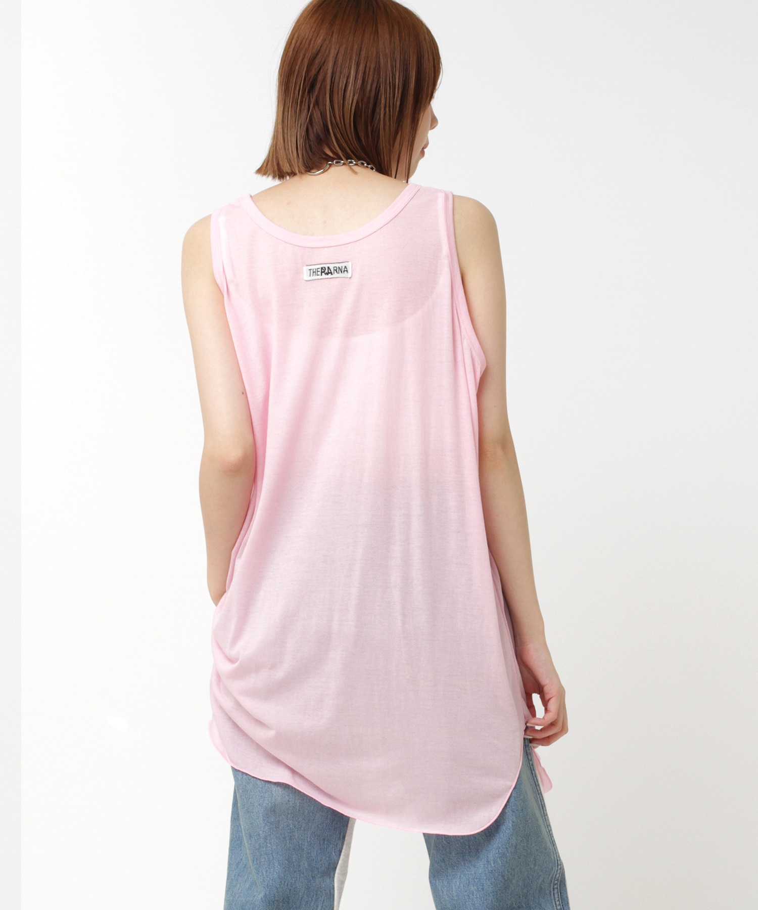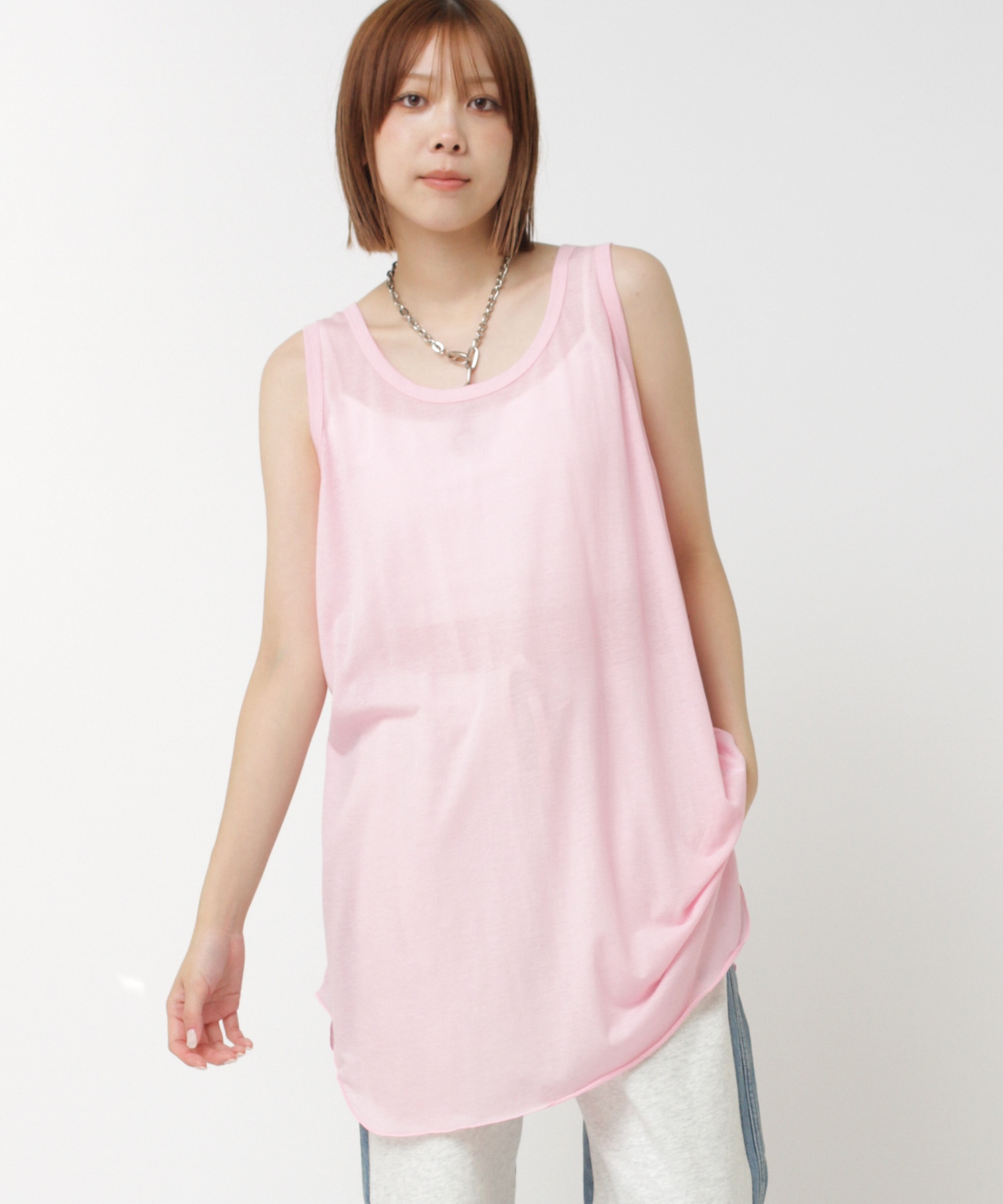 綿とナイロンを使用した、透け感のあるタンクトップです。