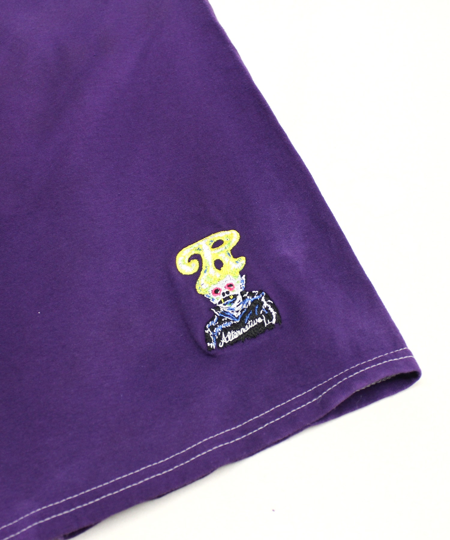 前身頃裾にはJUNK STYLE KILLERSのテーマからインスパイアされた、ストレンジかつジャンクでキッチュなキャラを刺繍しました。