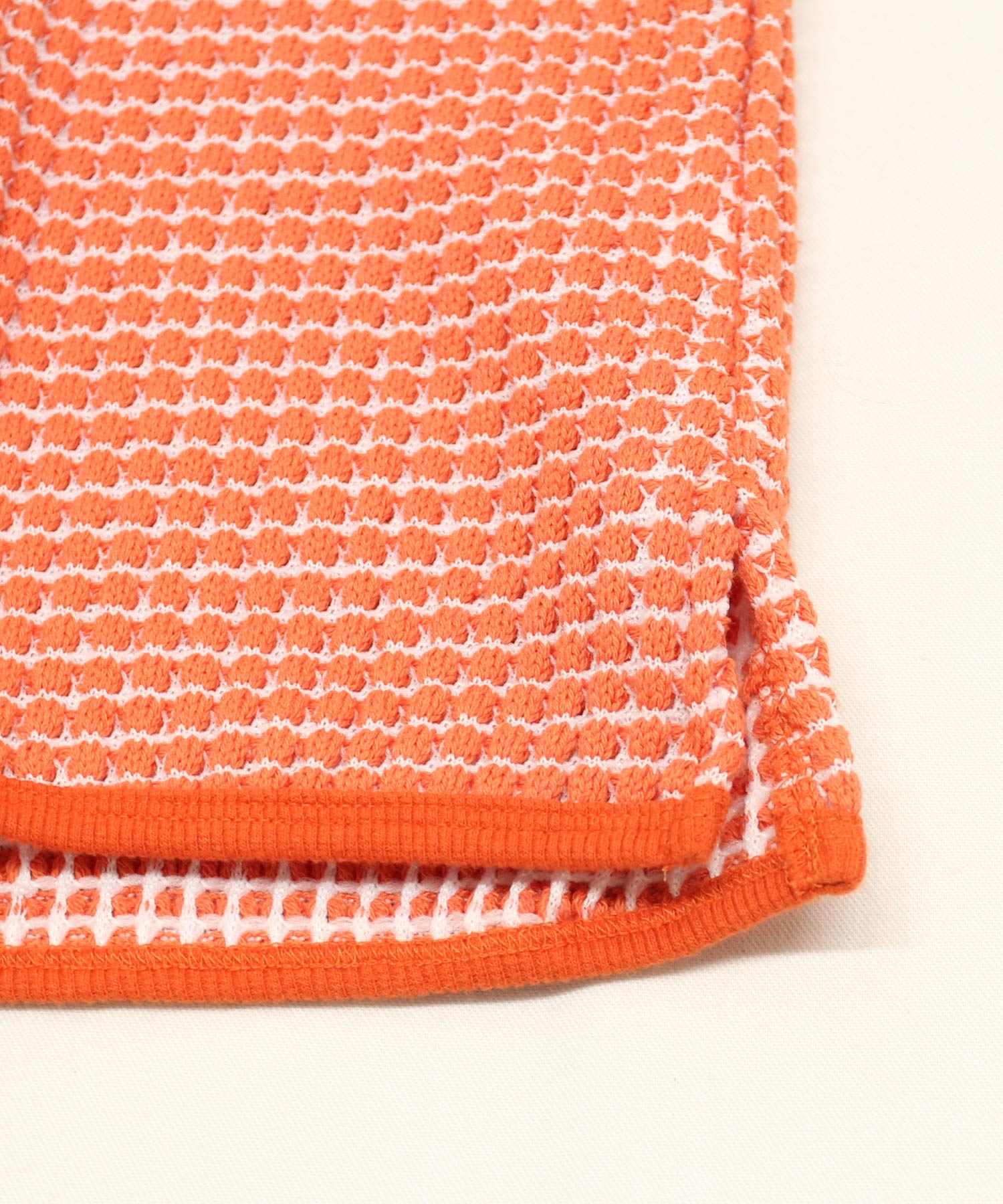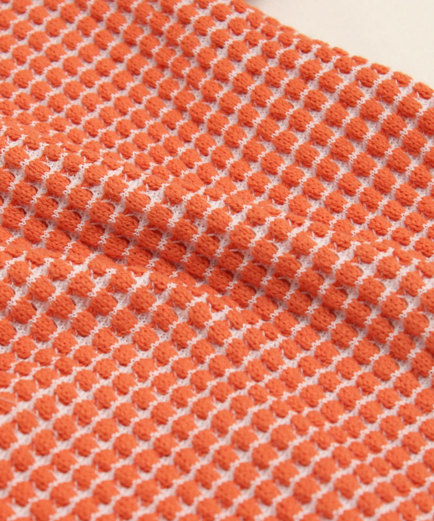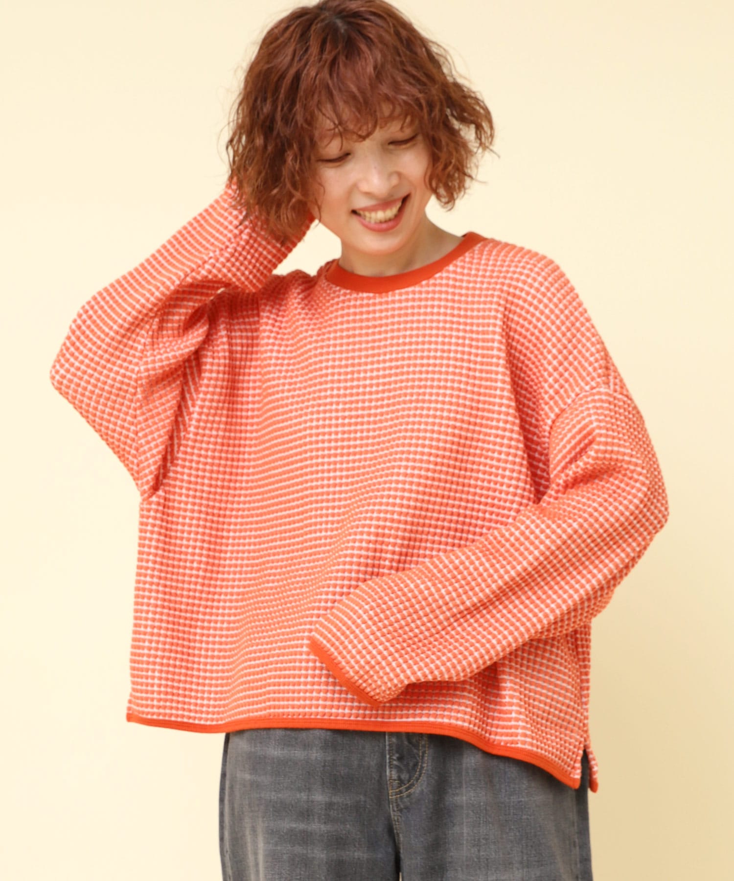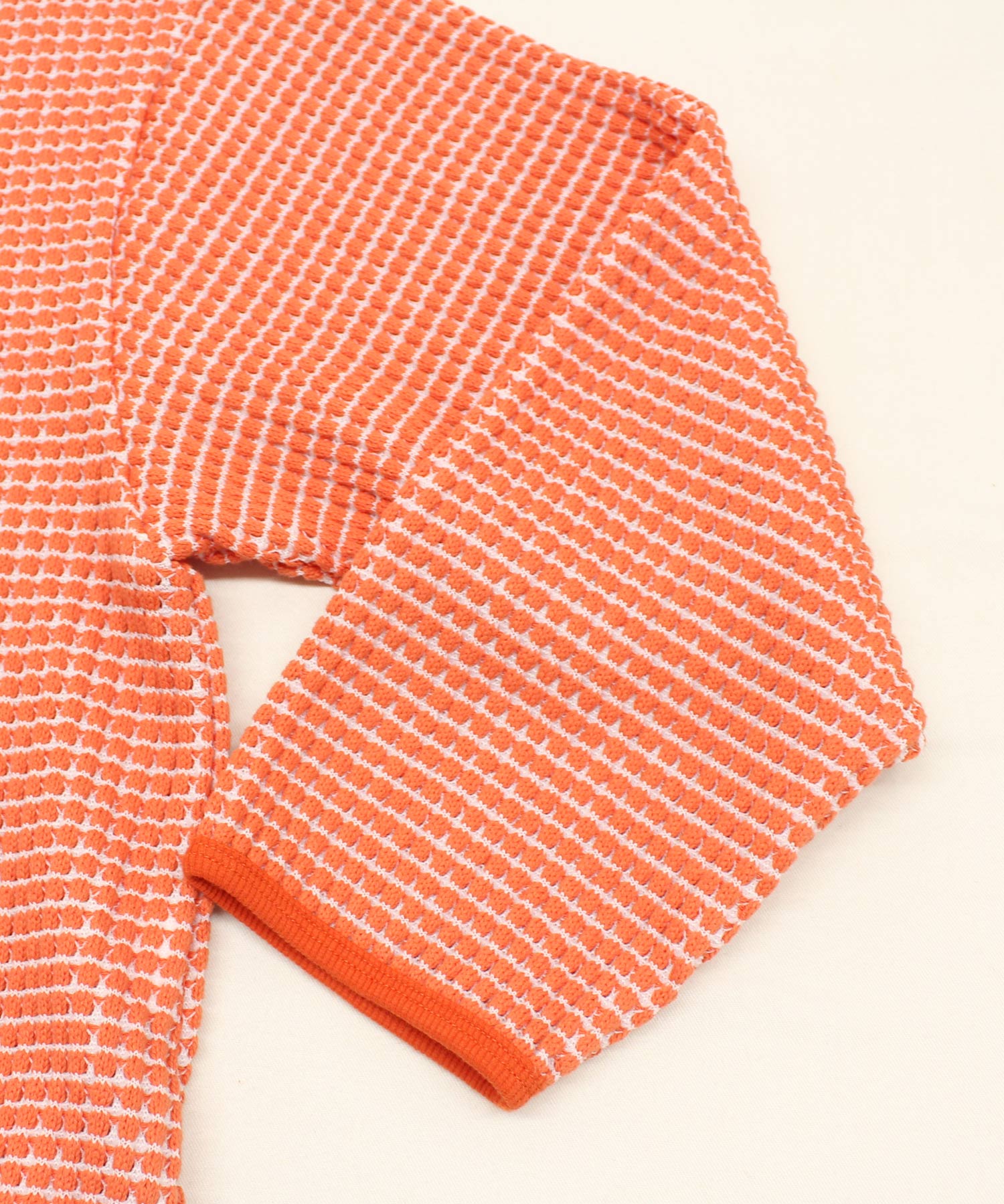 凹凸の大きい網目が特徴的なワッフル素材のカットソー。