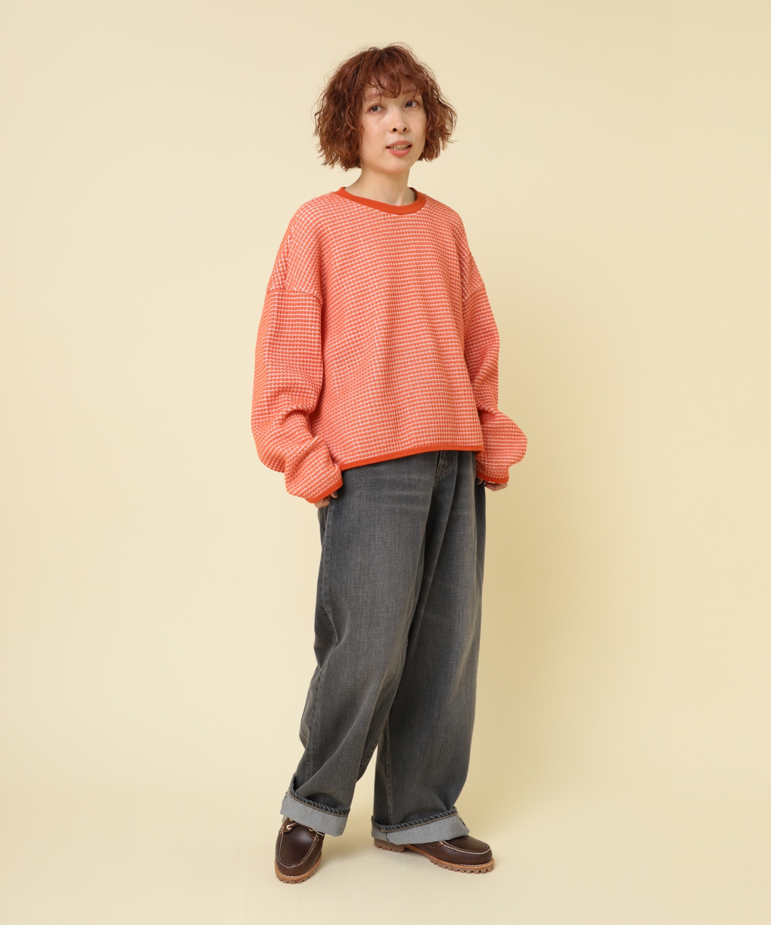 生地が特徴的なので、シンプルなデザインで、サイズ感にこだわったプルオーバーにしました。