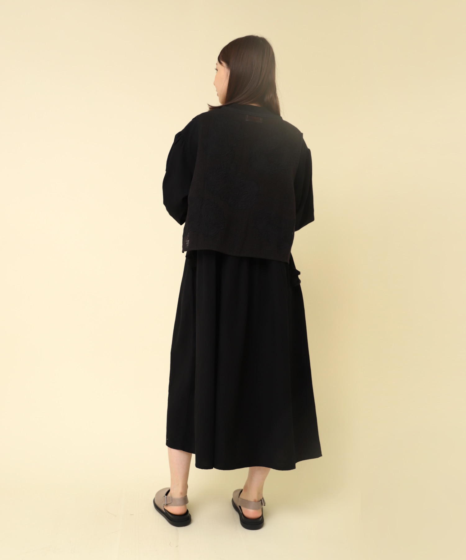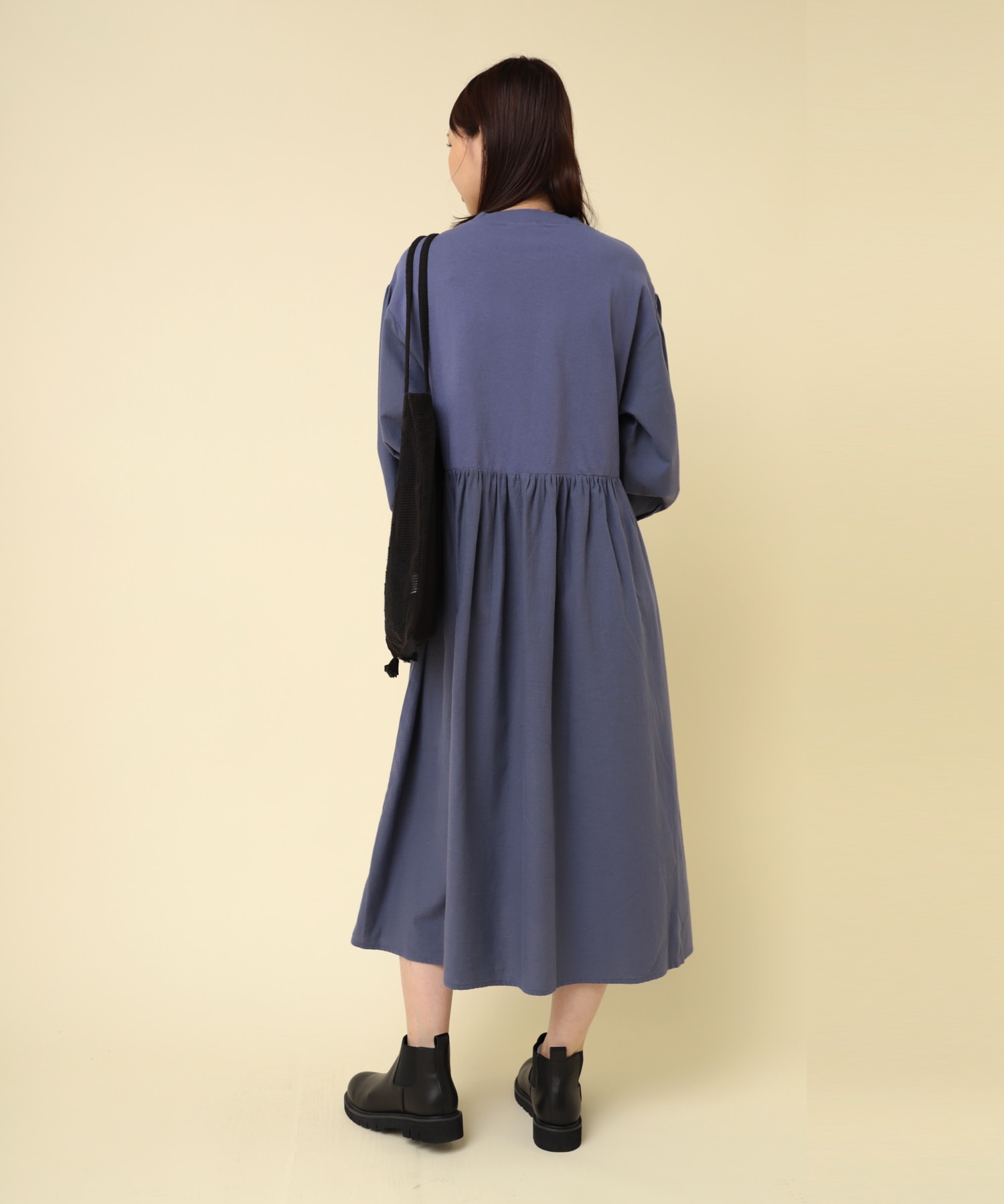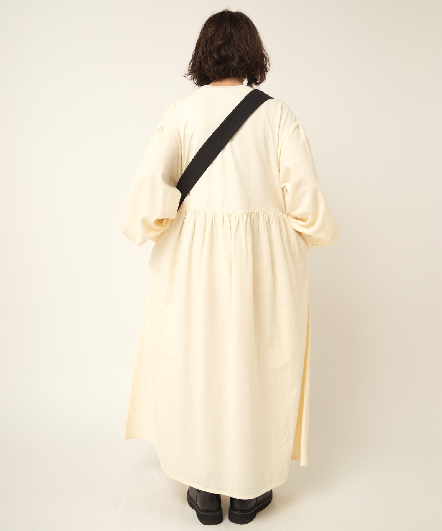 着丈はミドル丈なので、裾からボトムをのぞかせても、一枚で着用するのも、どちらにも対応できます。