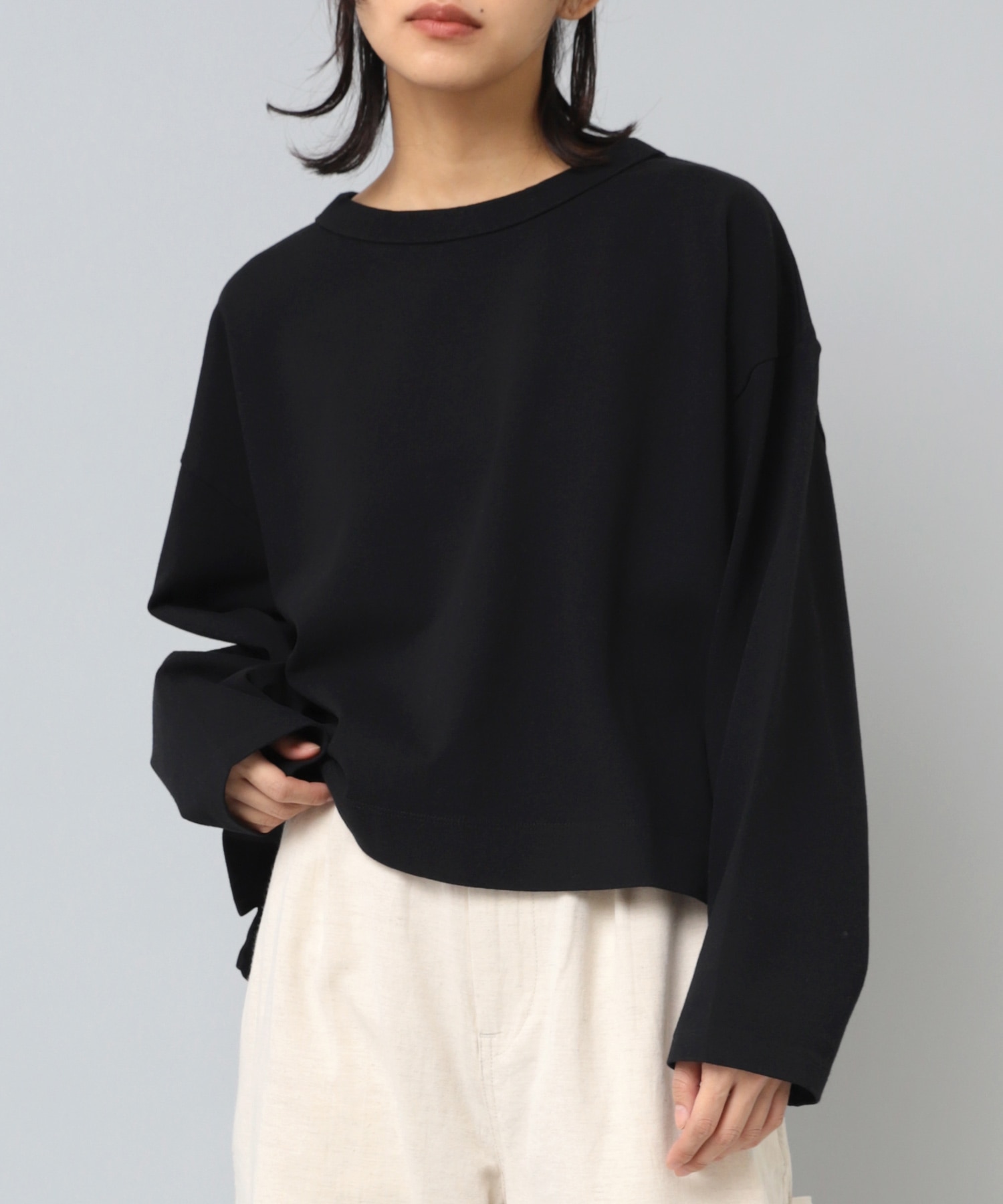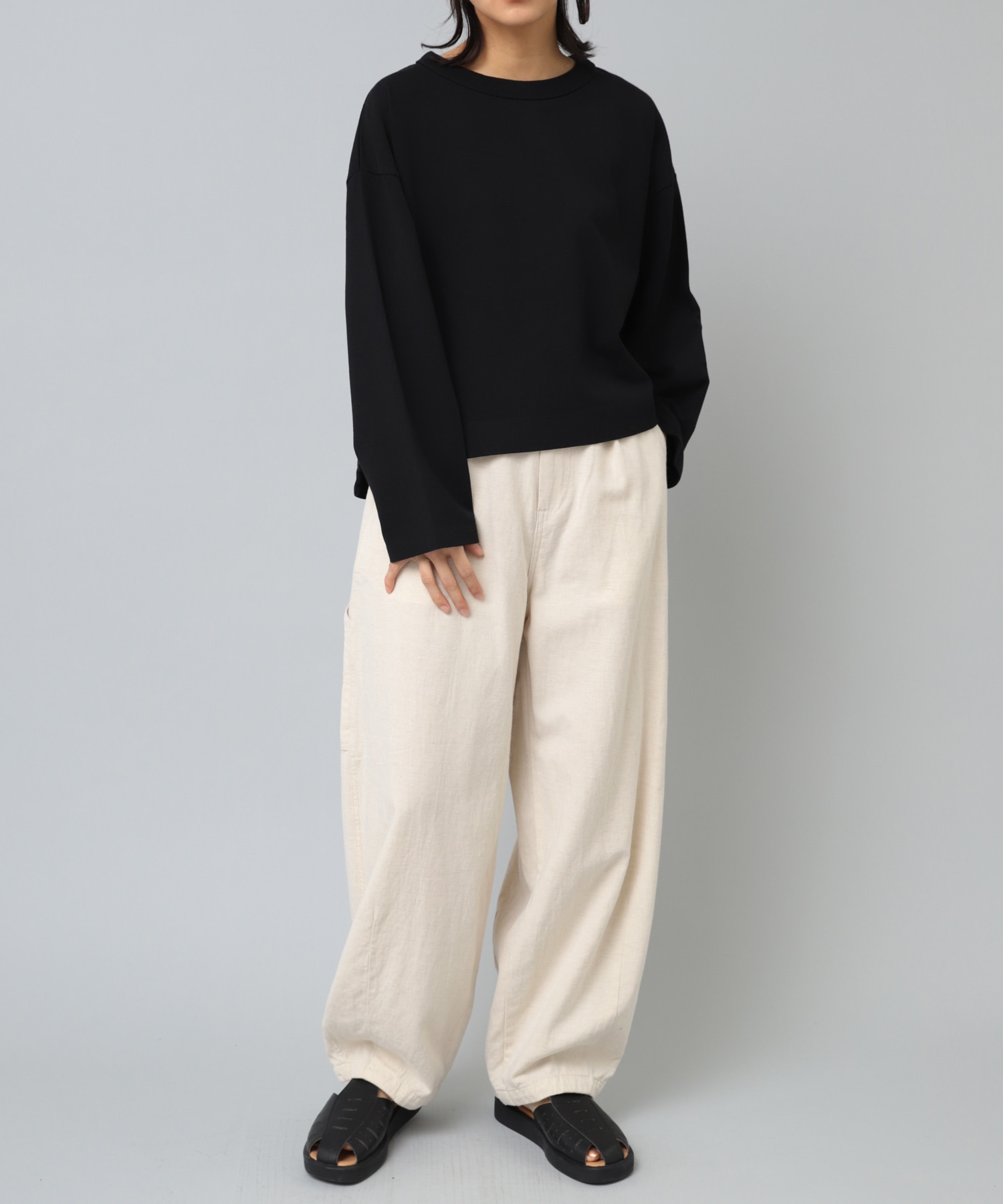 ショート丈のトレーナーライクなプルオーバーで太めの袖で身頃とのバランスも可愛いアイテム。