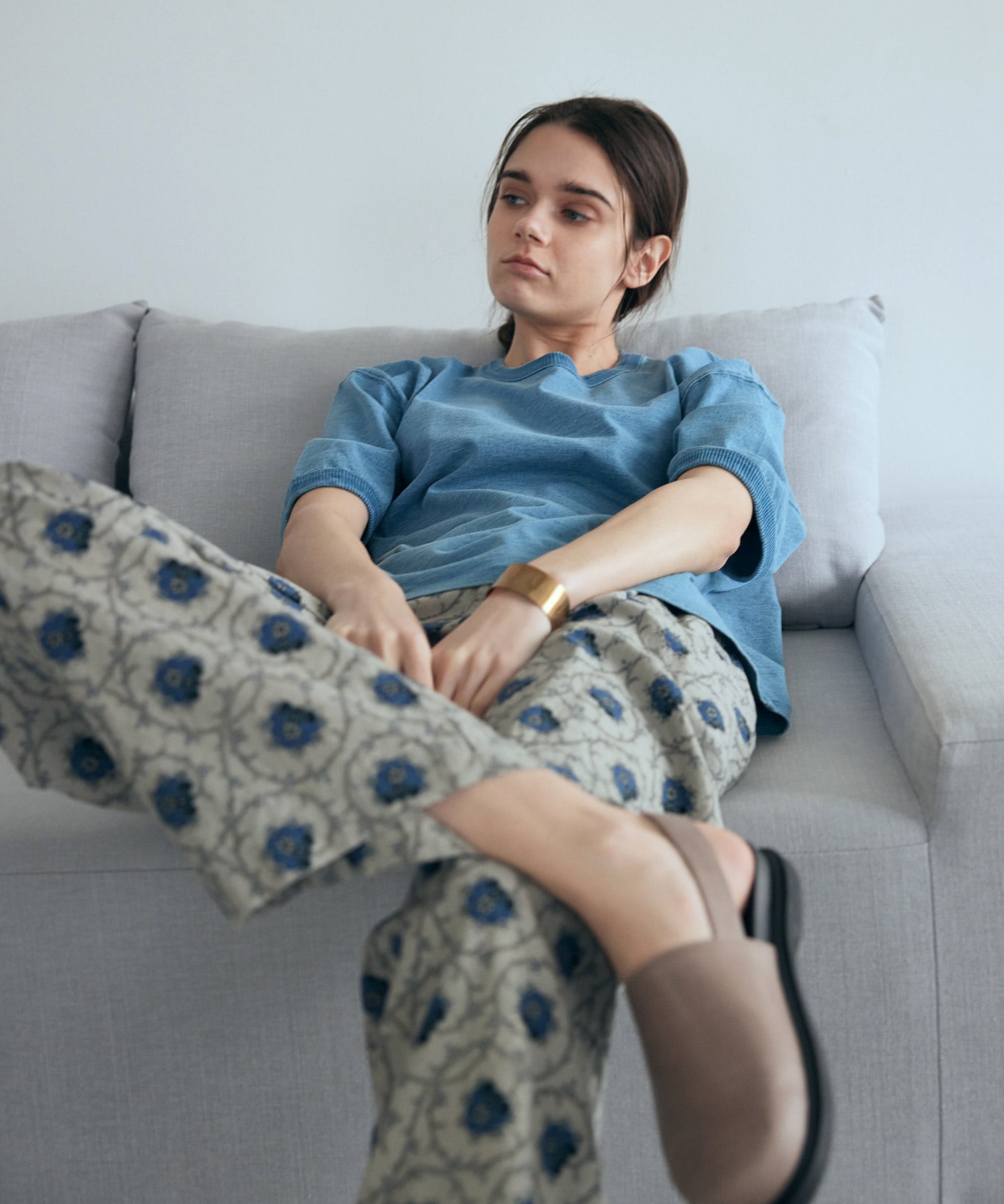 袖口にリブがついているのでスエットのようなカジュアルなデザインです。