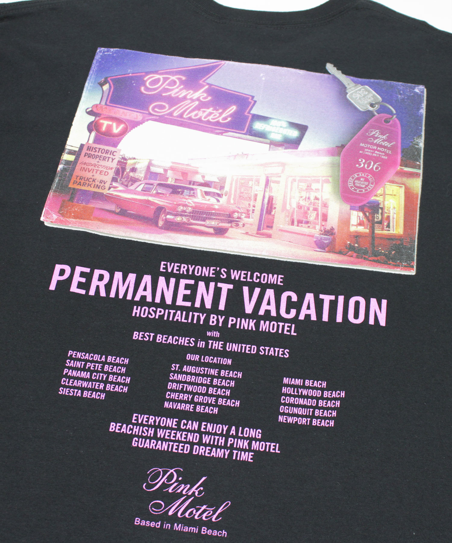 パーマネントバケーション(永久的な休暇)をスローガンにマイアミを拠点としアメリカ全土のナイスビーチエリアに展開するモーターホテルのオリジナルウェアーをリリースします。