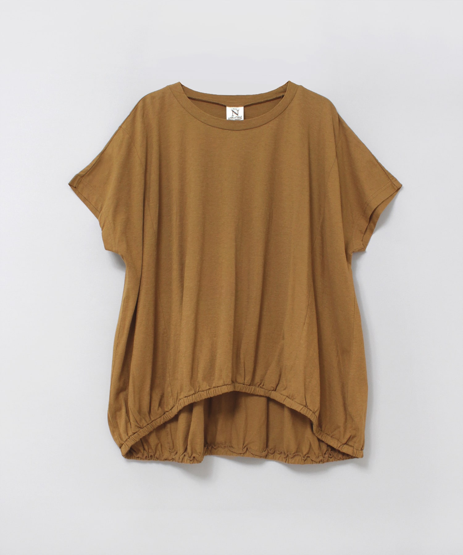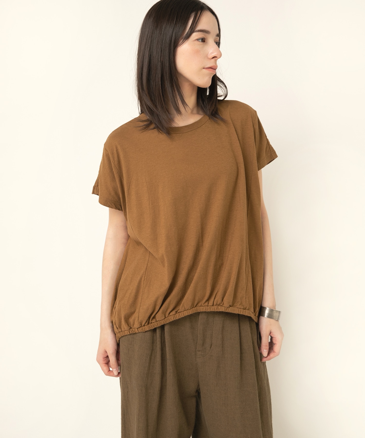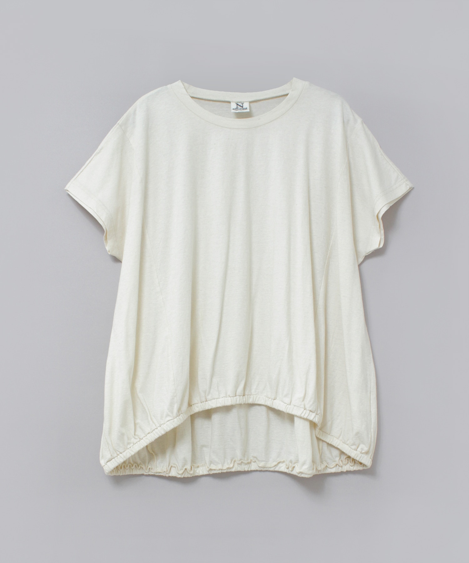 裾にソフトタイプの細いゴムを入れて、ギャザーを寄せたデザインカットソー。