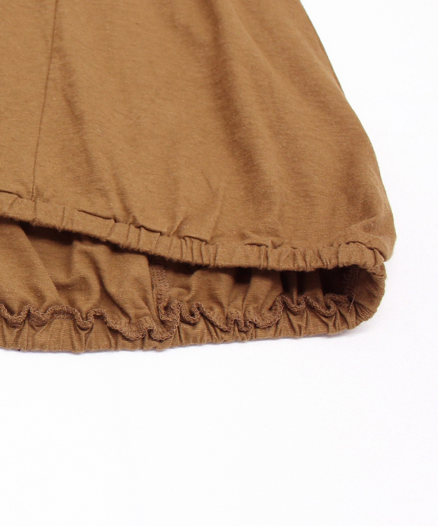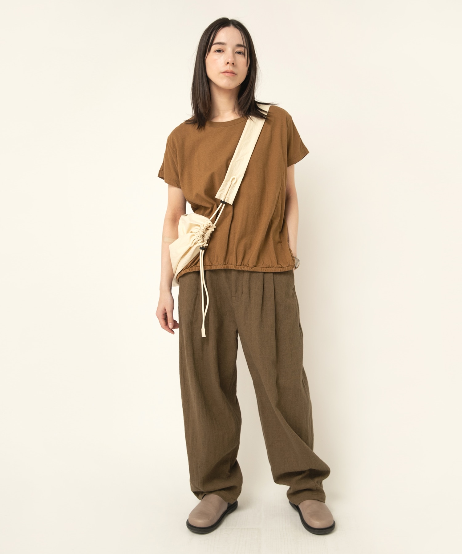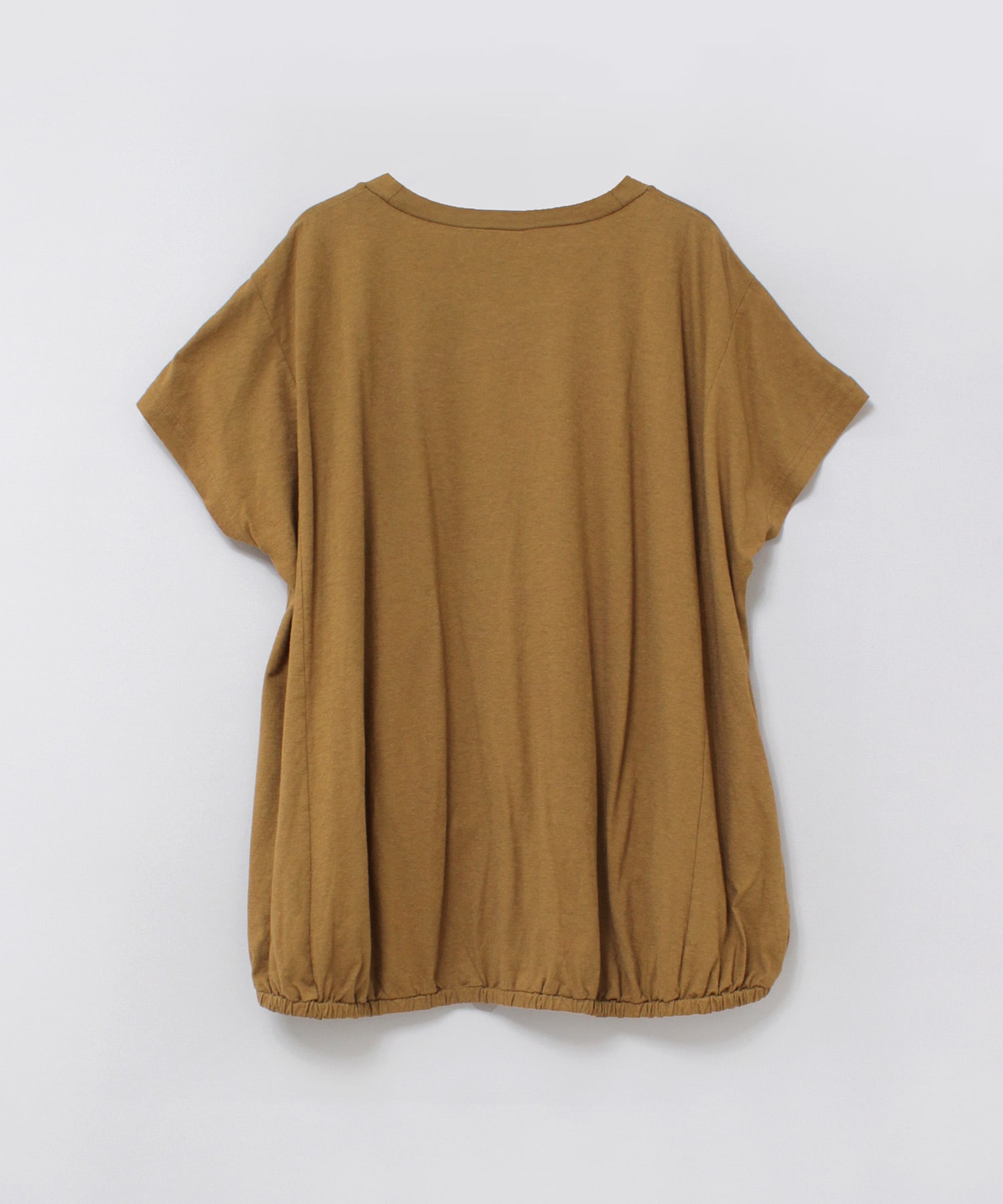 裾にソフトタイプの細いゴムを入れて、ギャザーを寄せたデザインカットソー。