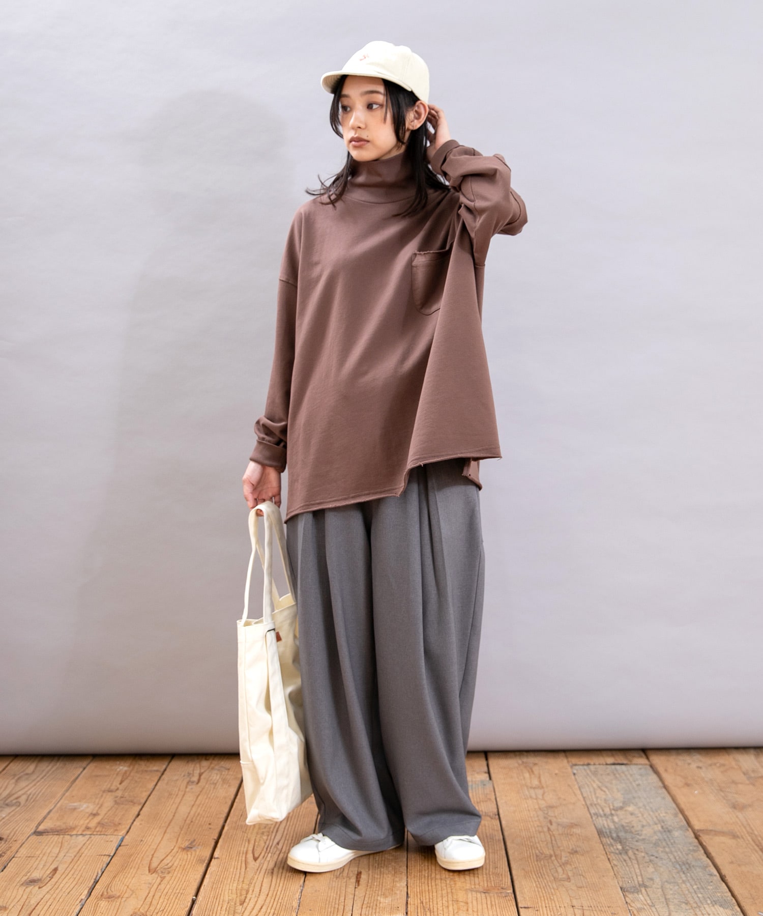 ゆったりとしたシルエットと丸いポケットが魅力の人気アイテムに、タートルネック仕様が登場。