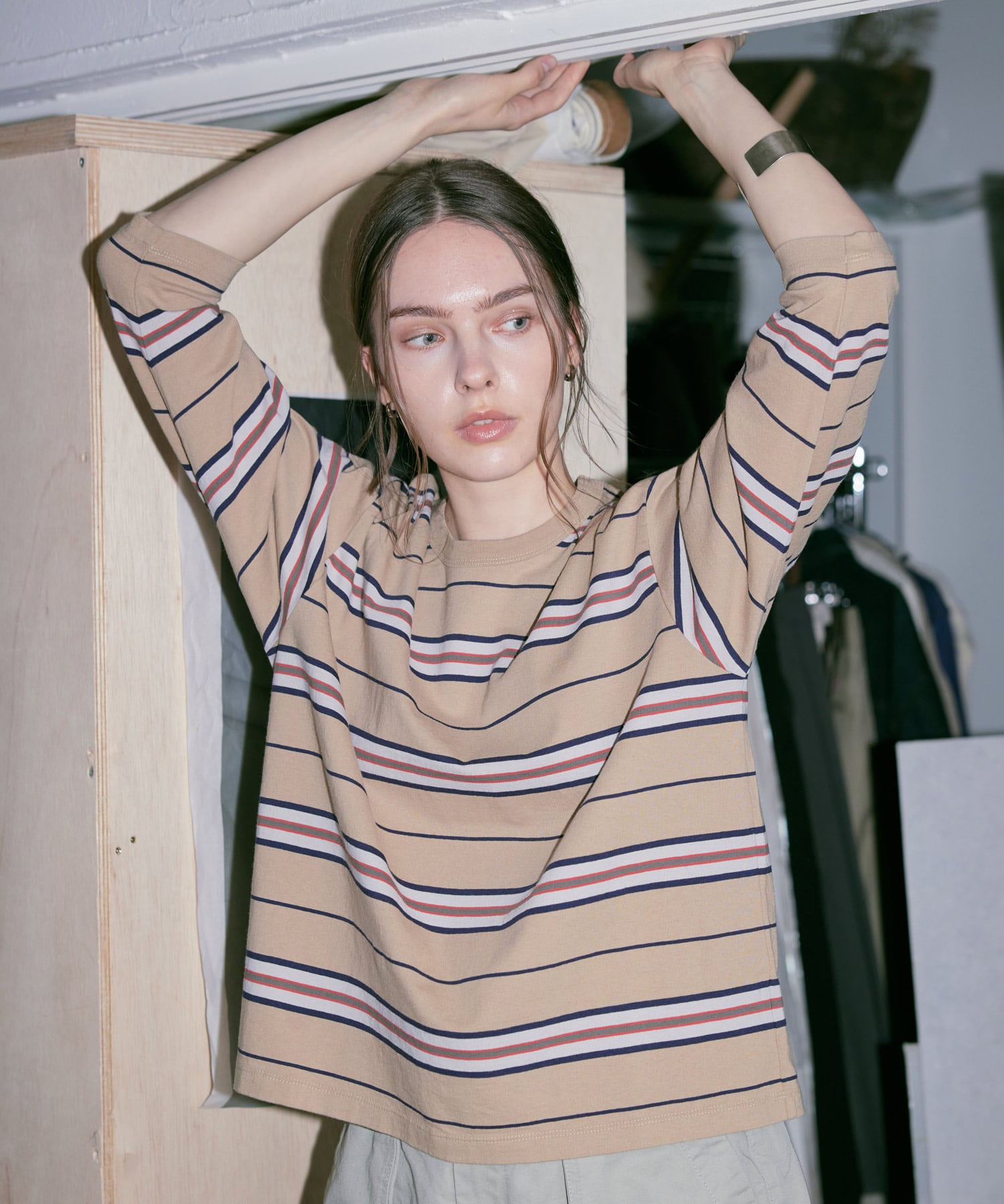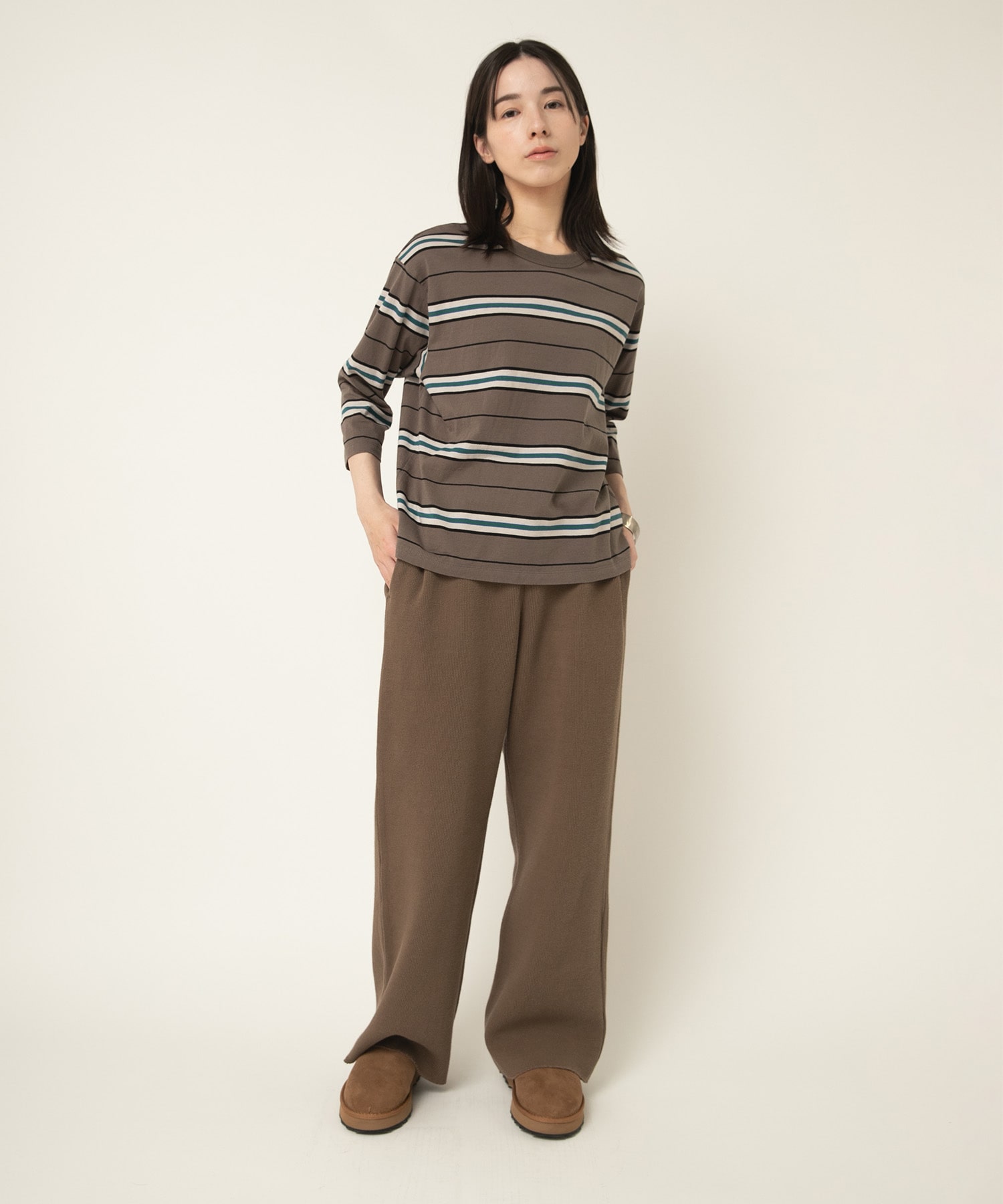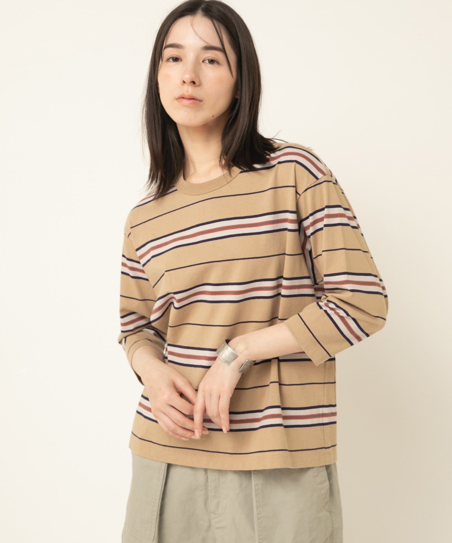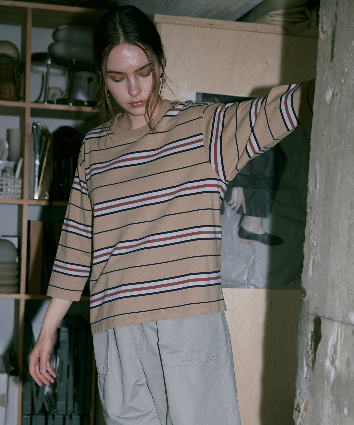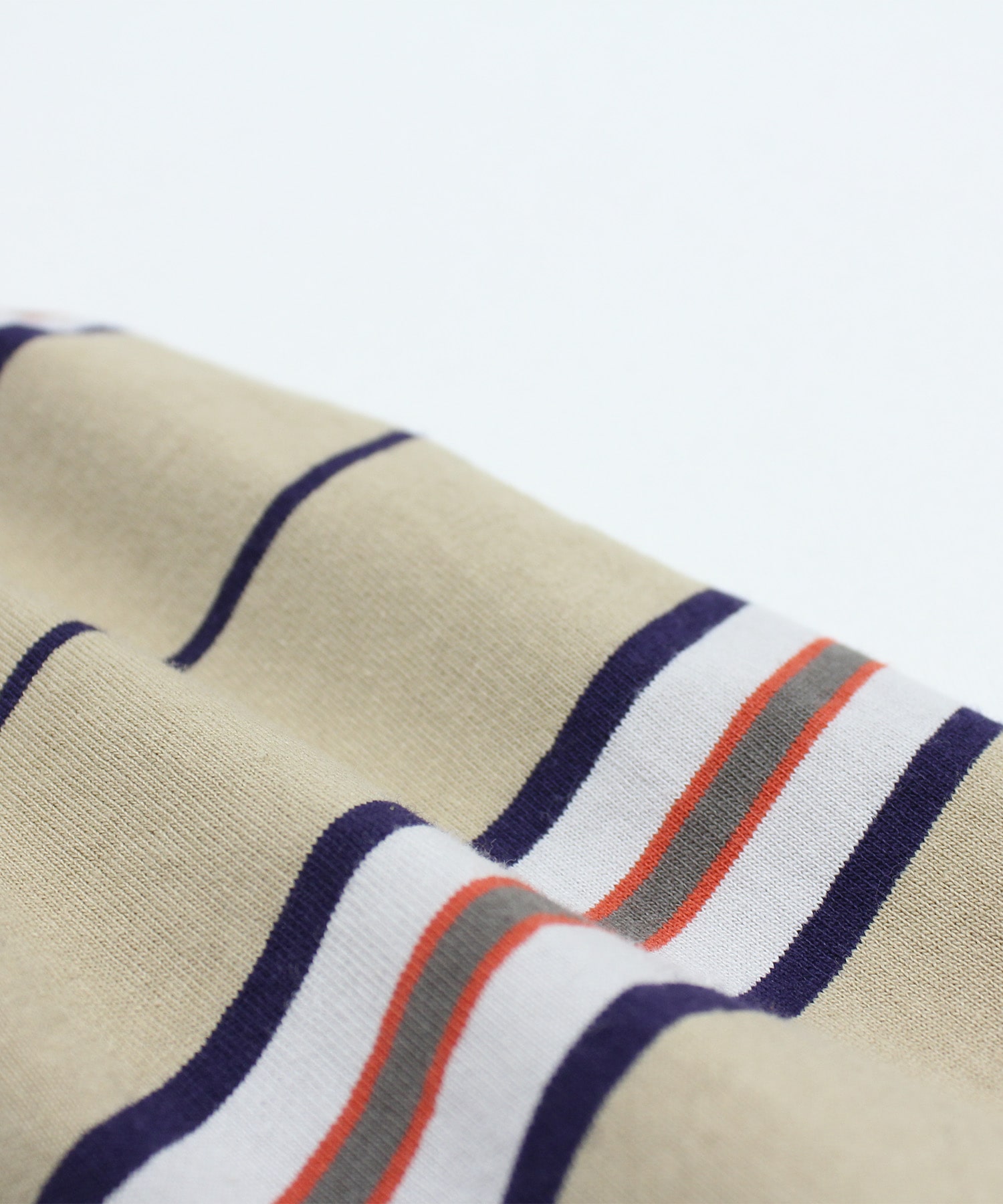 カジュアル感のあるマルチボーダー柄が、ほどよくコーディネートのポイントとなるアイテムです。