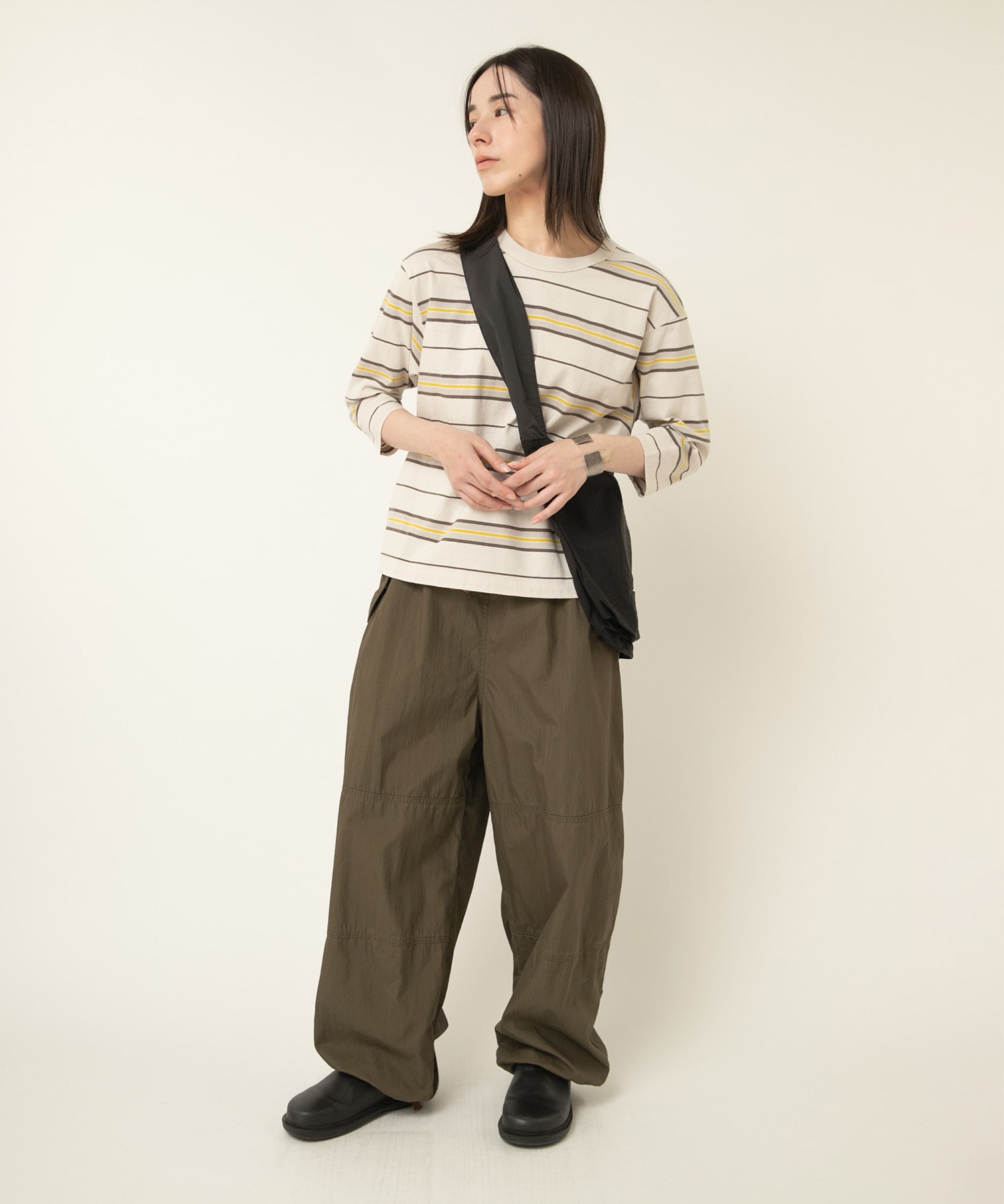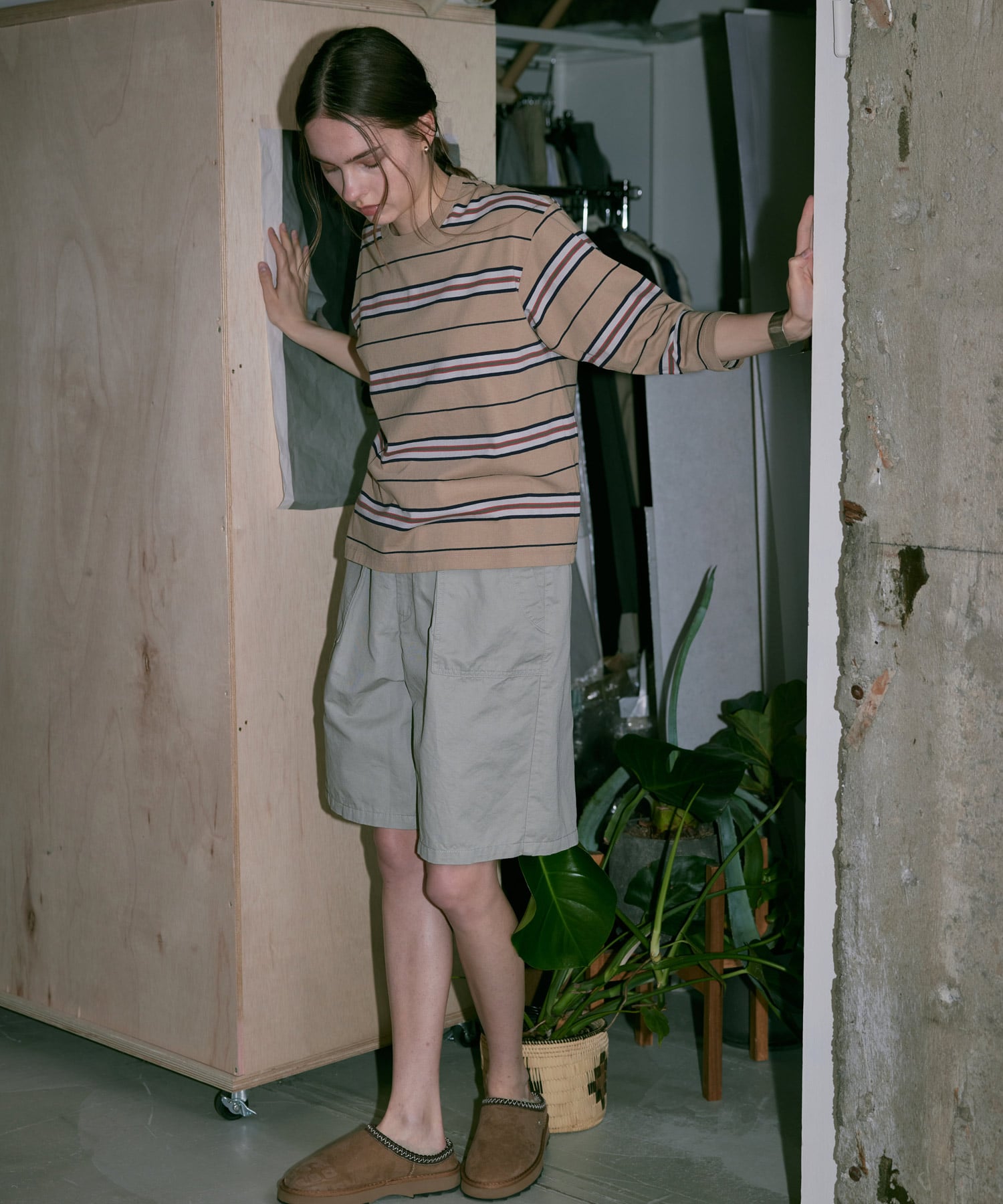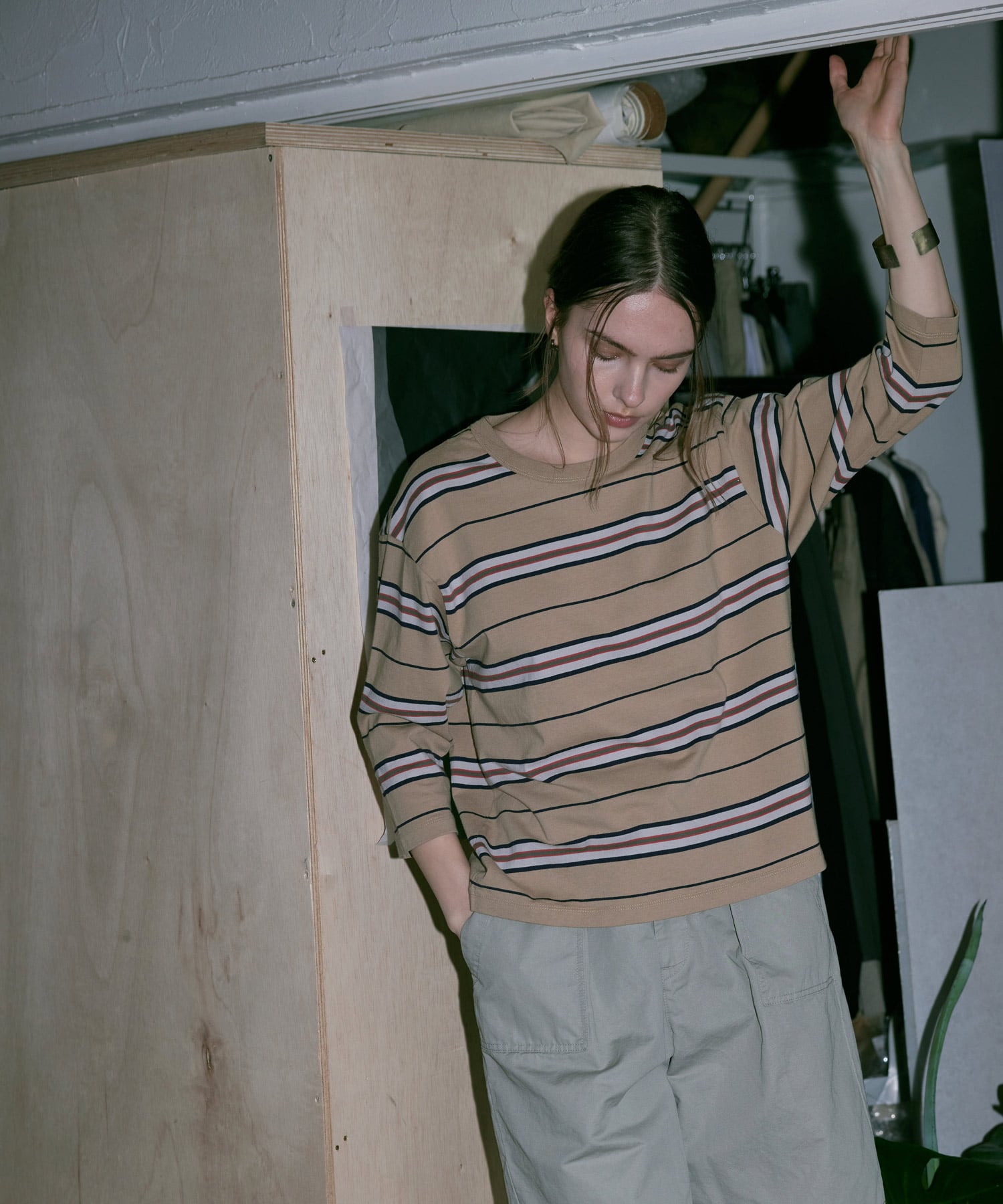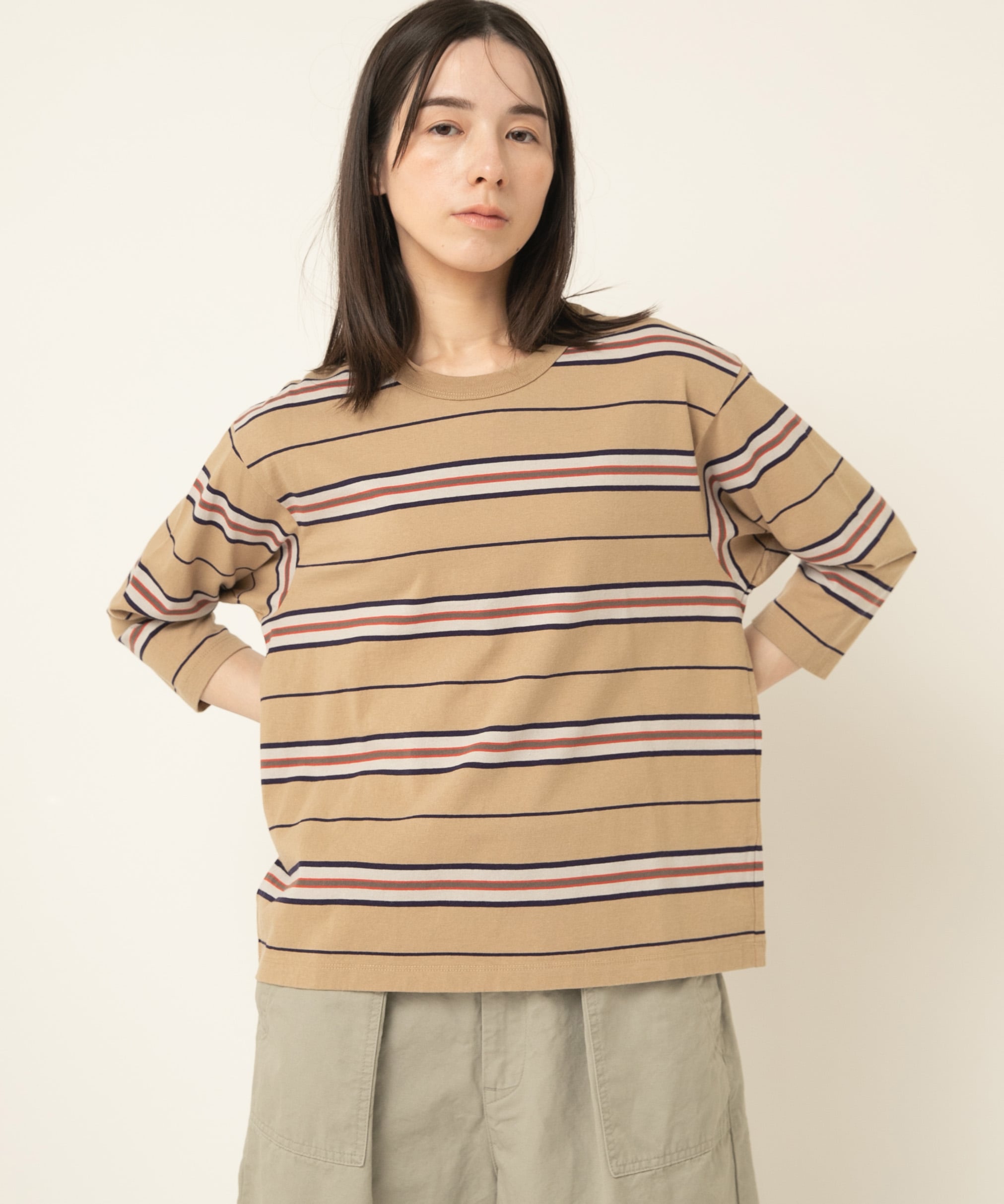 カジュアル感のあるマルチボーダー柄が、ほどよくコーディネートのポイントとなるアイテムです。