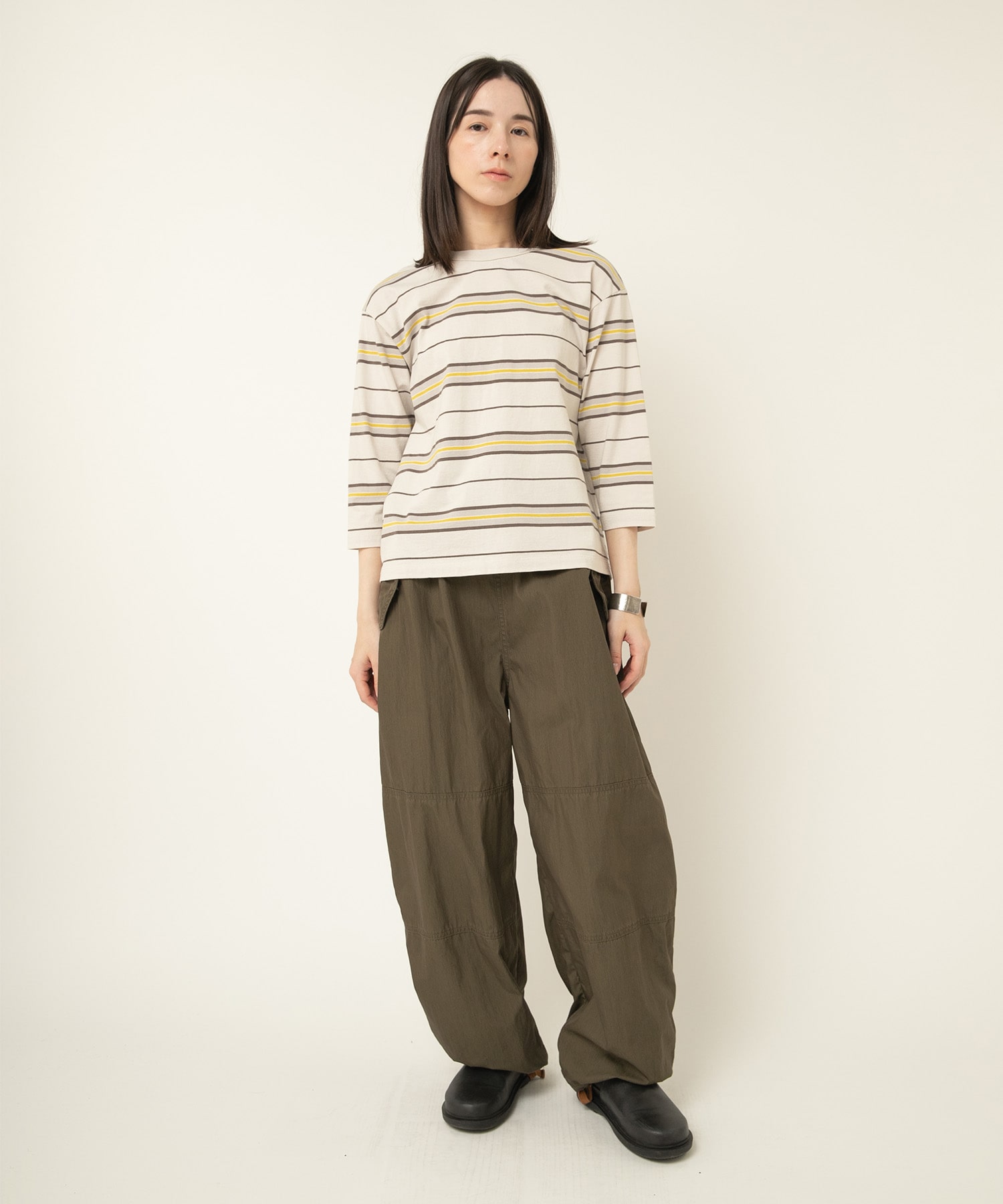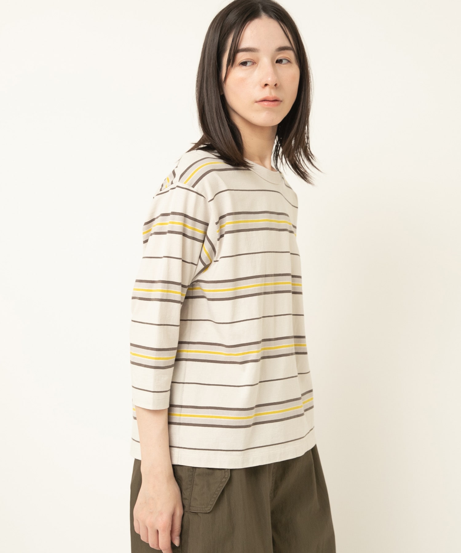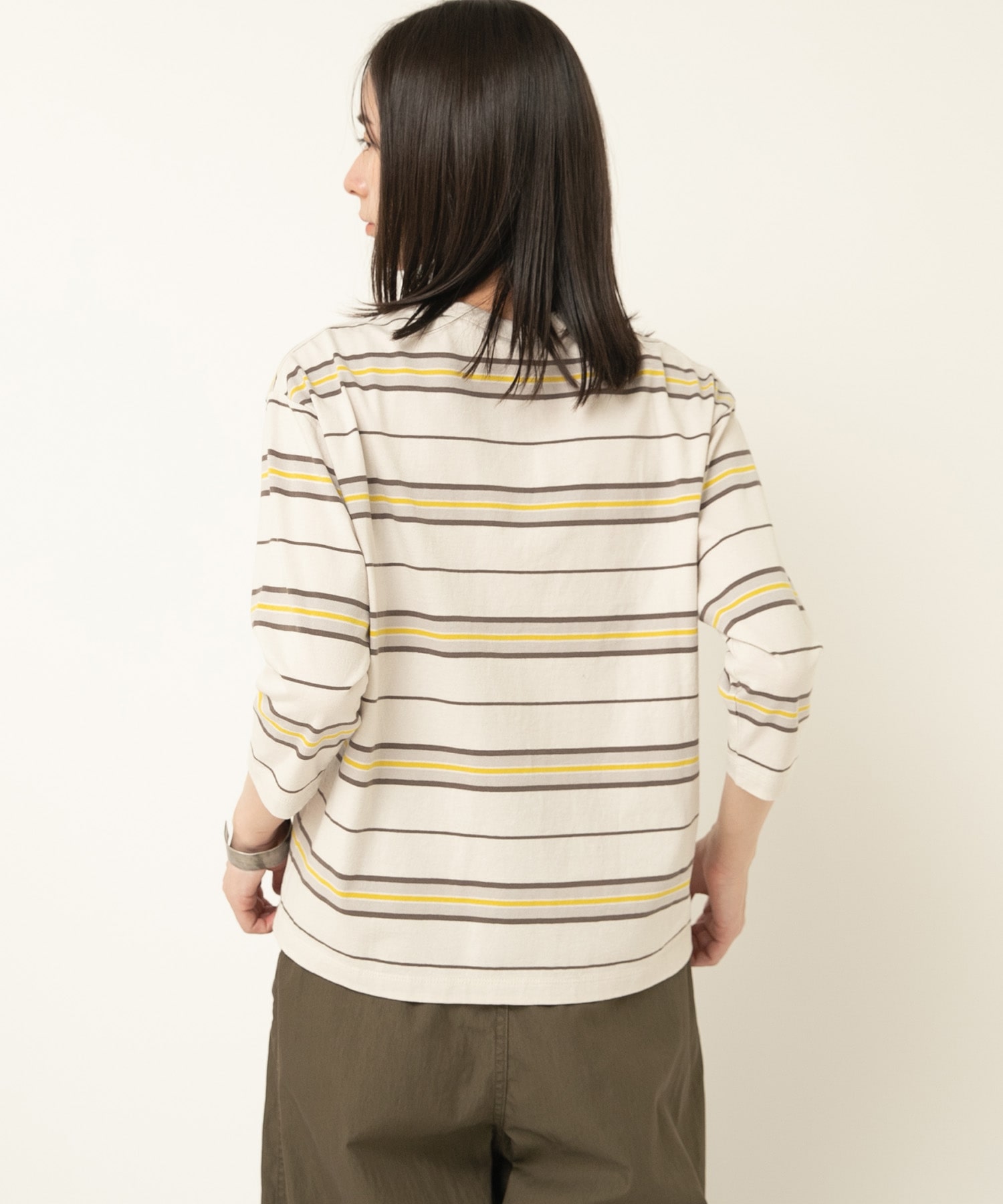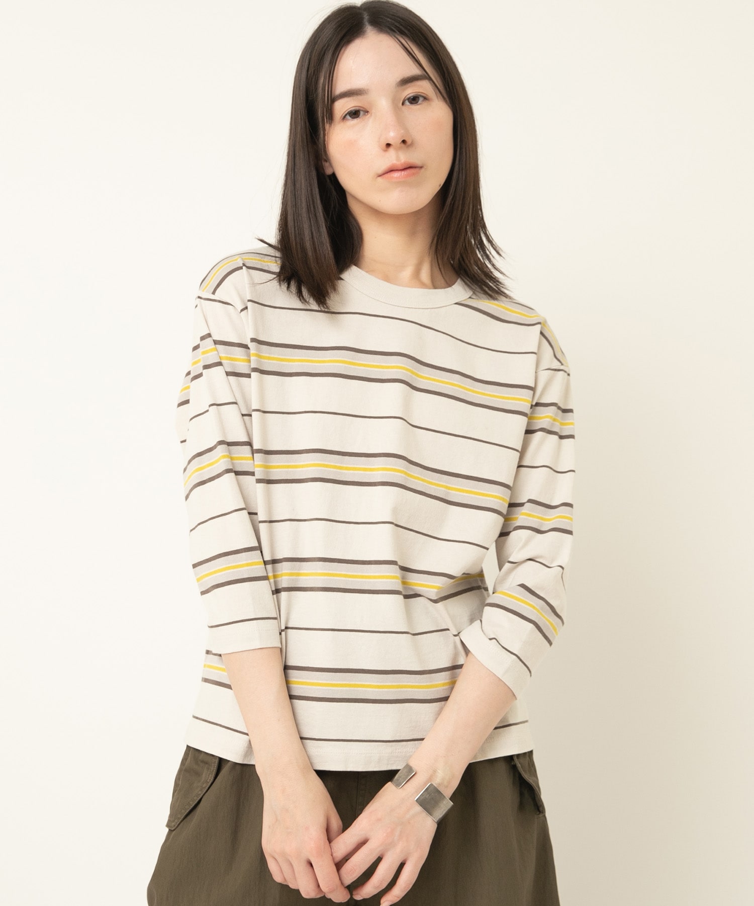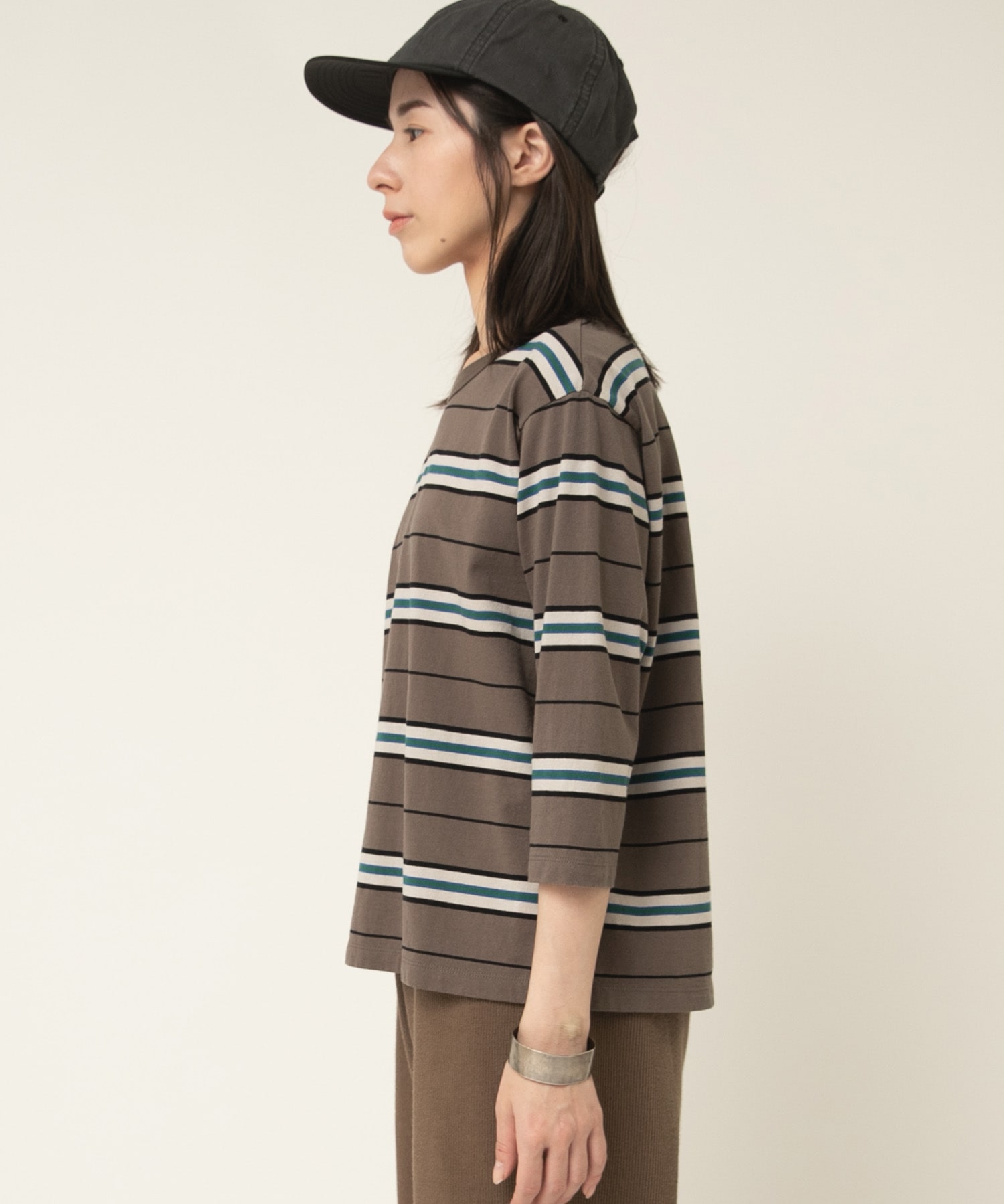 カジュアル感のあるマルチボーダー柄が、ほどよくコーディネートのポイントとなるアイテムです。