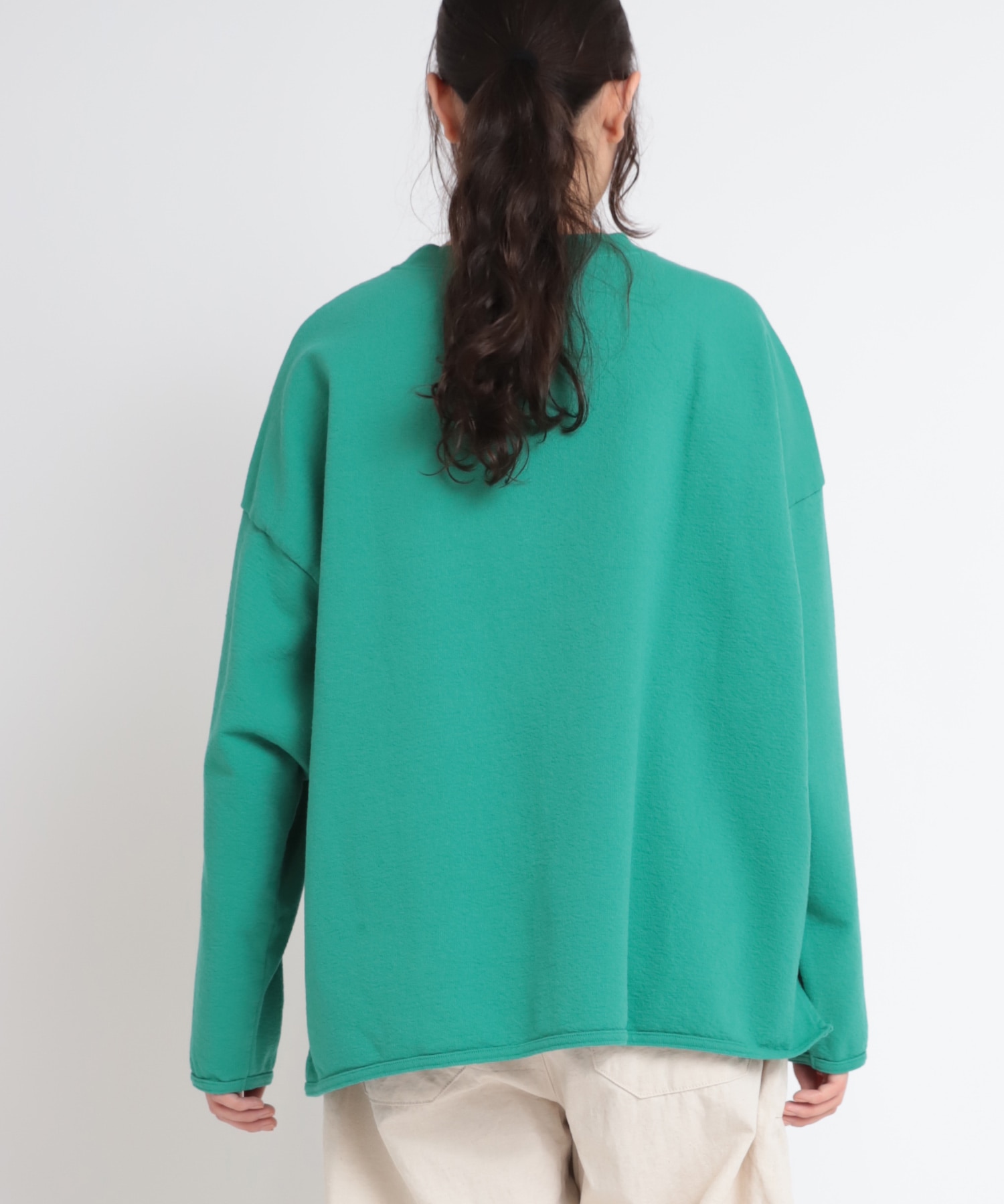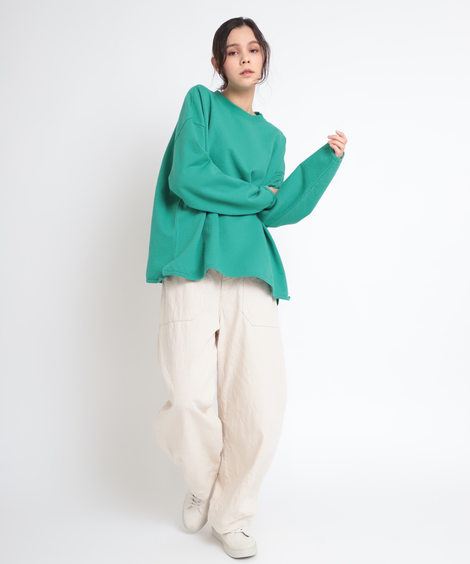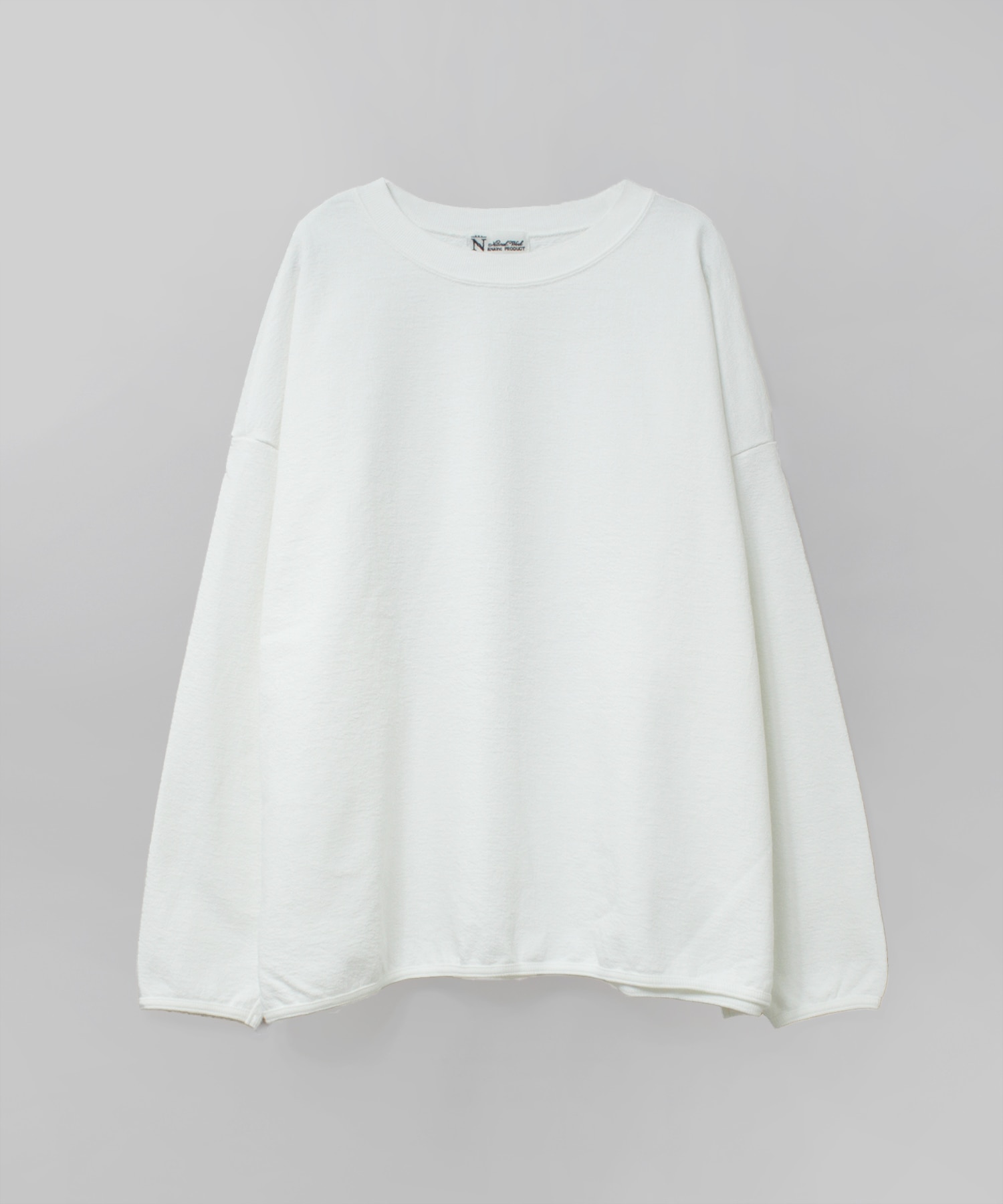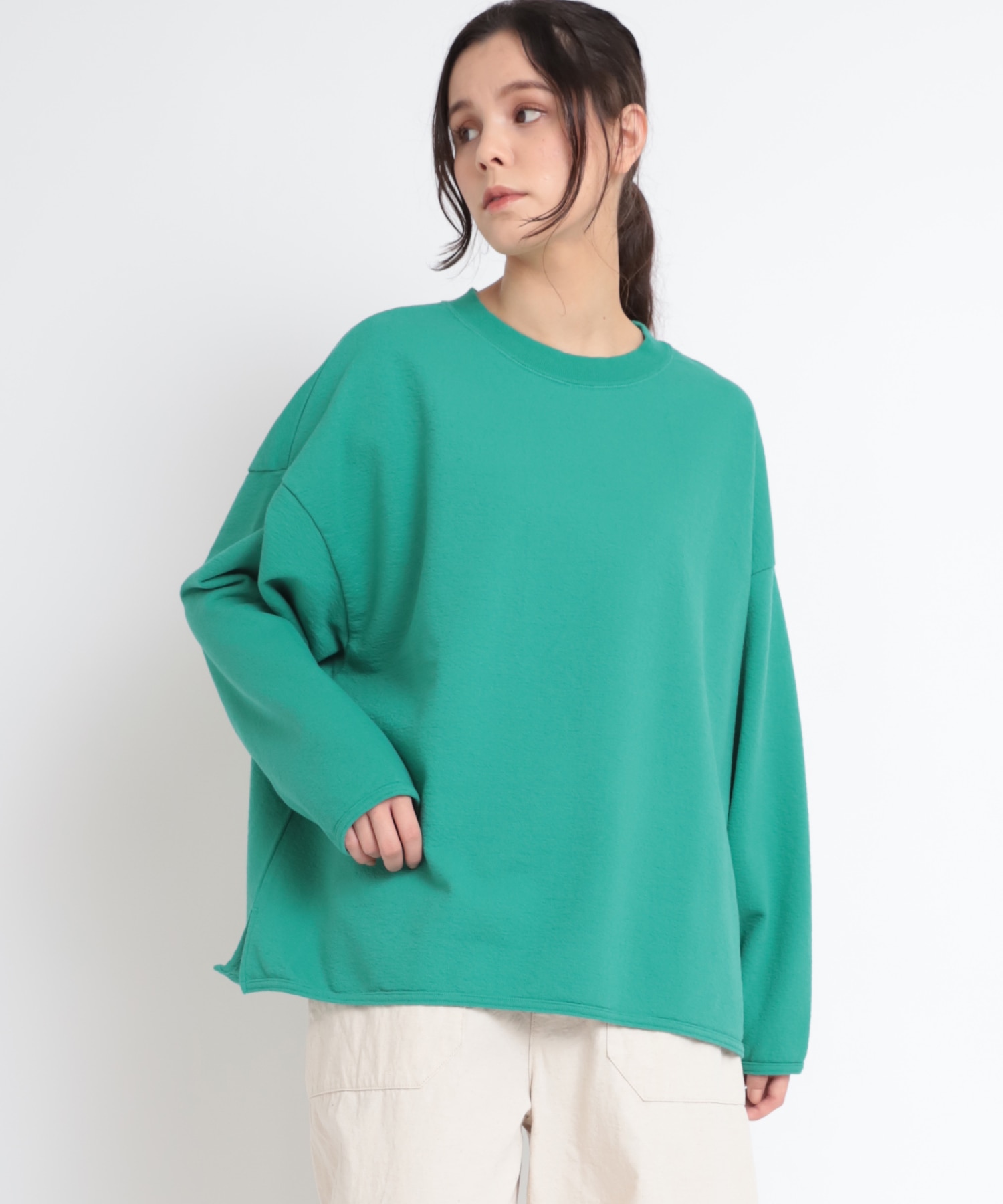 袖口と裾に細いリブをつけていてトレーナーというよりは、ロンT感覚で軽く着れるようなプルオーバー。