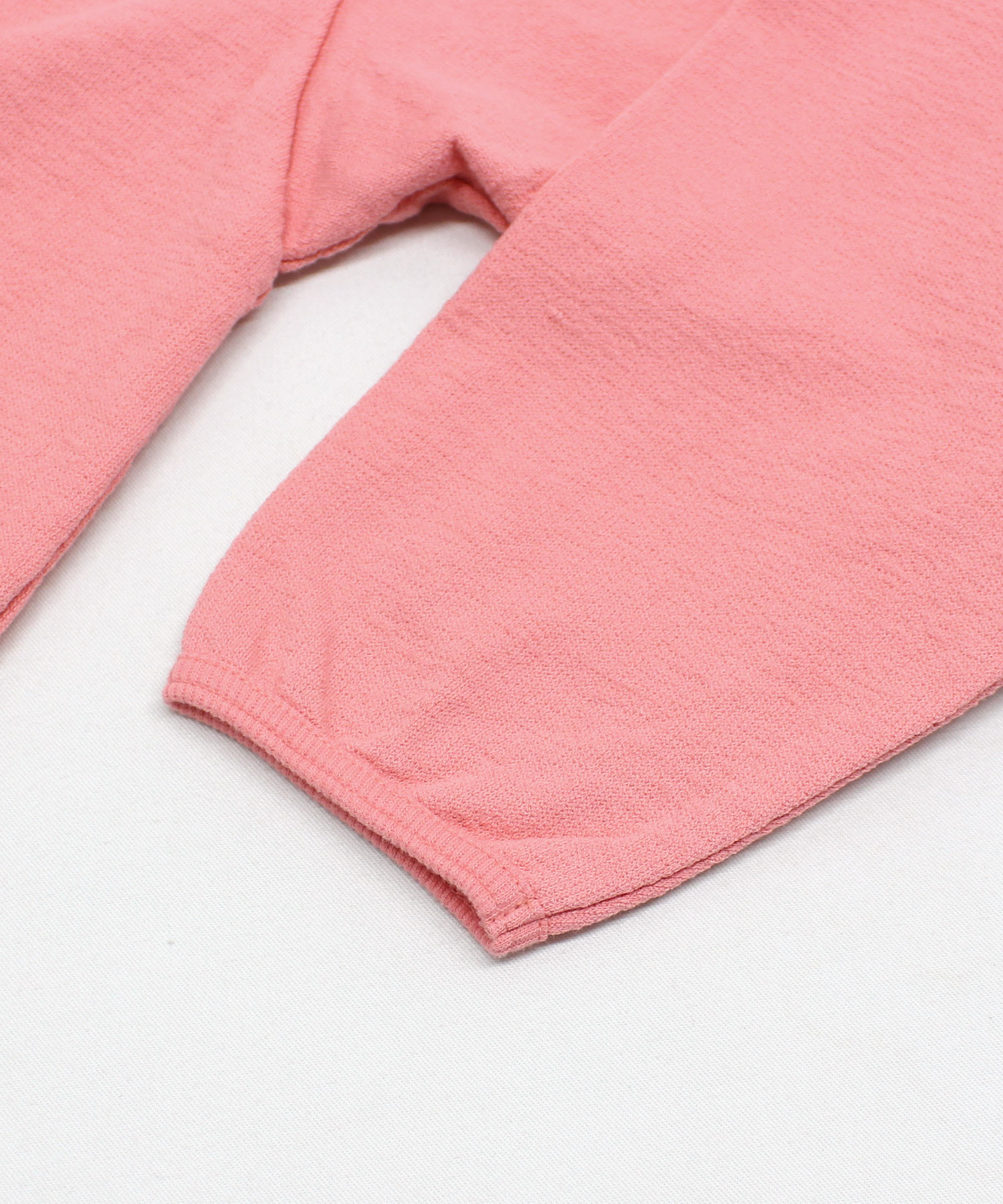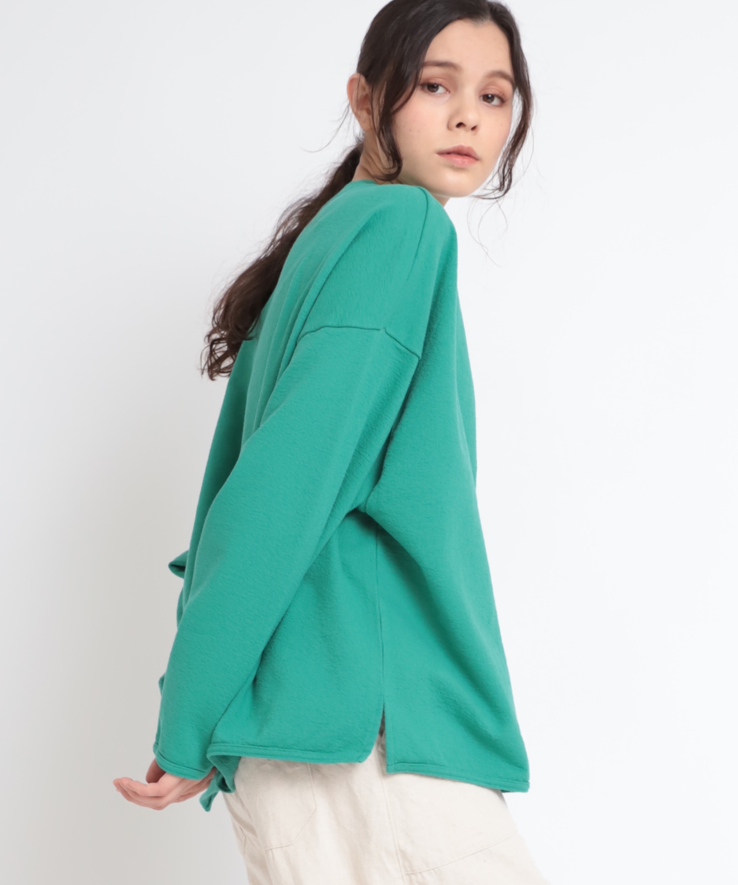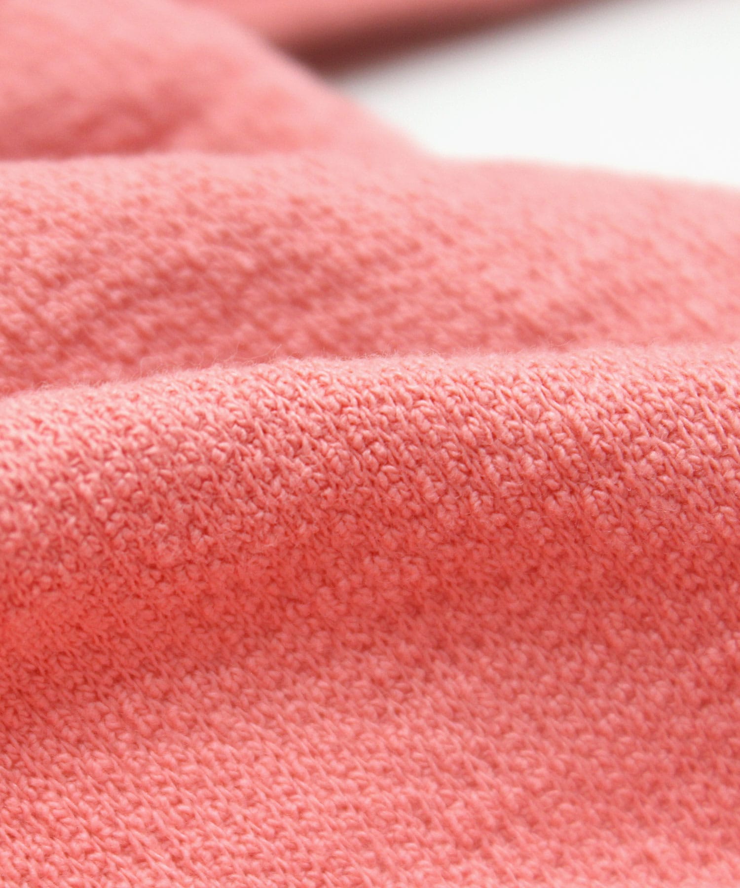 ポコポコとした生地の表面感がかわいく、裏毛よりも厚くないので、春先に着やすいアイテムです。