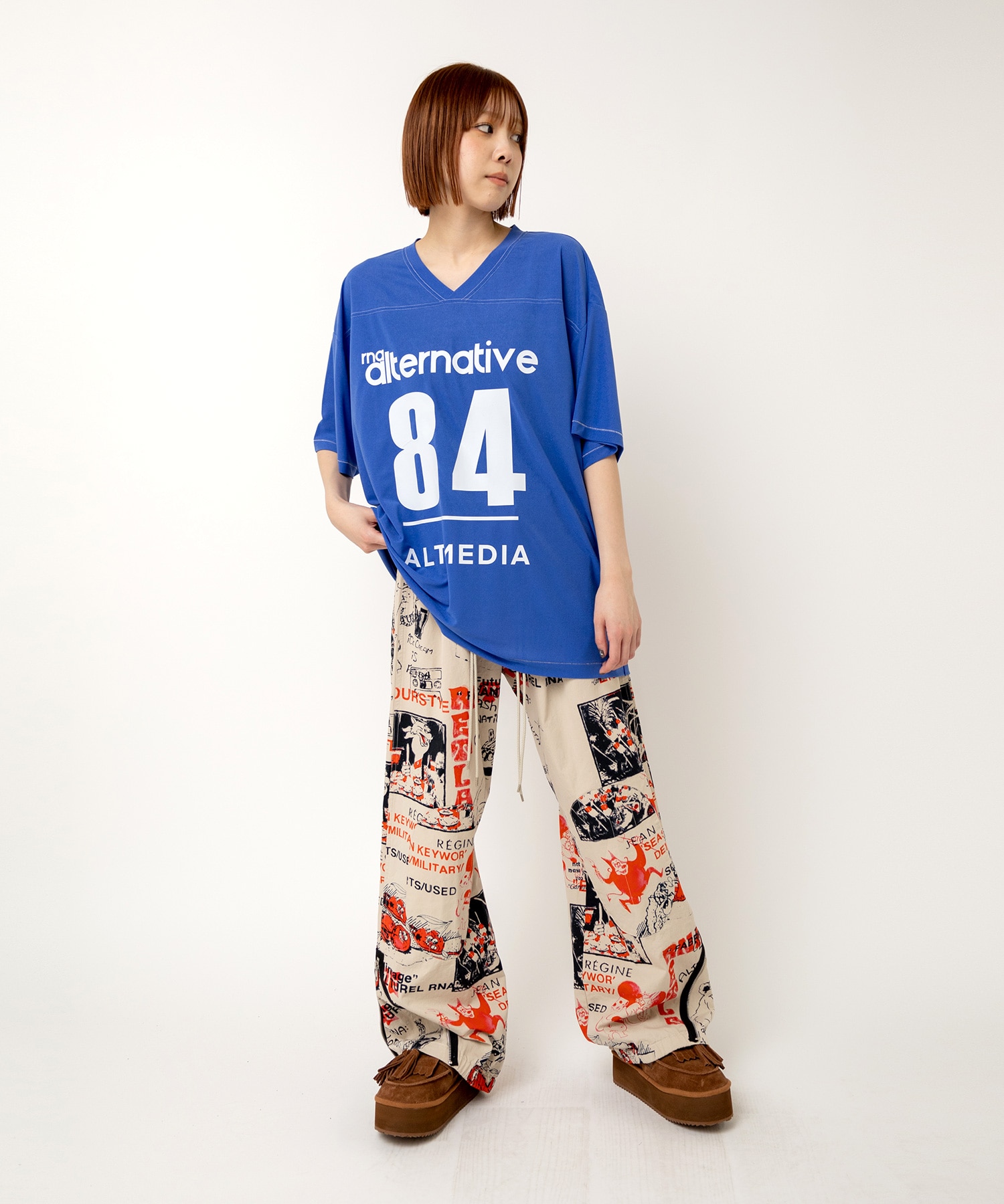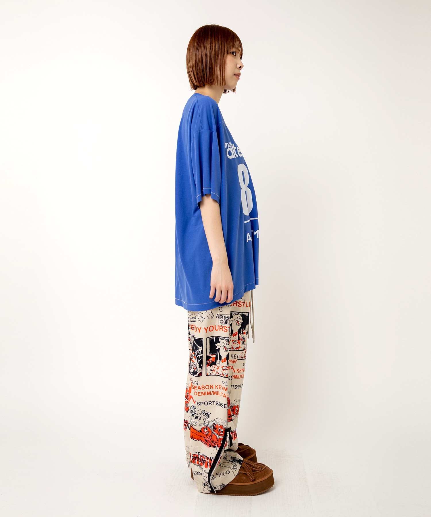 ゆったりとしたシルエットとぱきっとしたプリントが、インパクトのあるスタイルを演出してくれます。