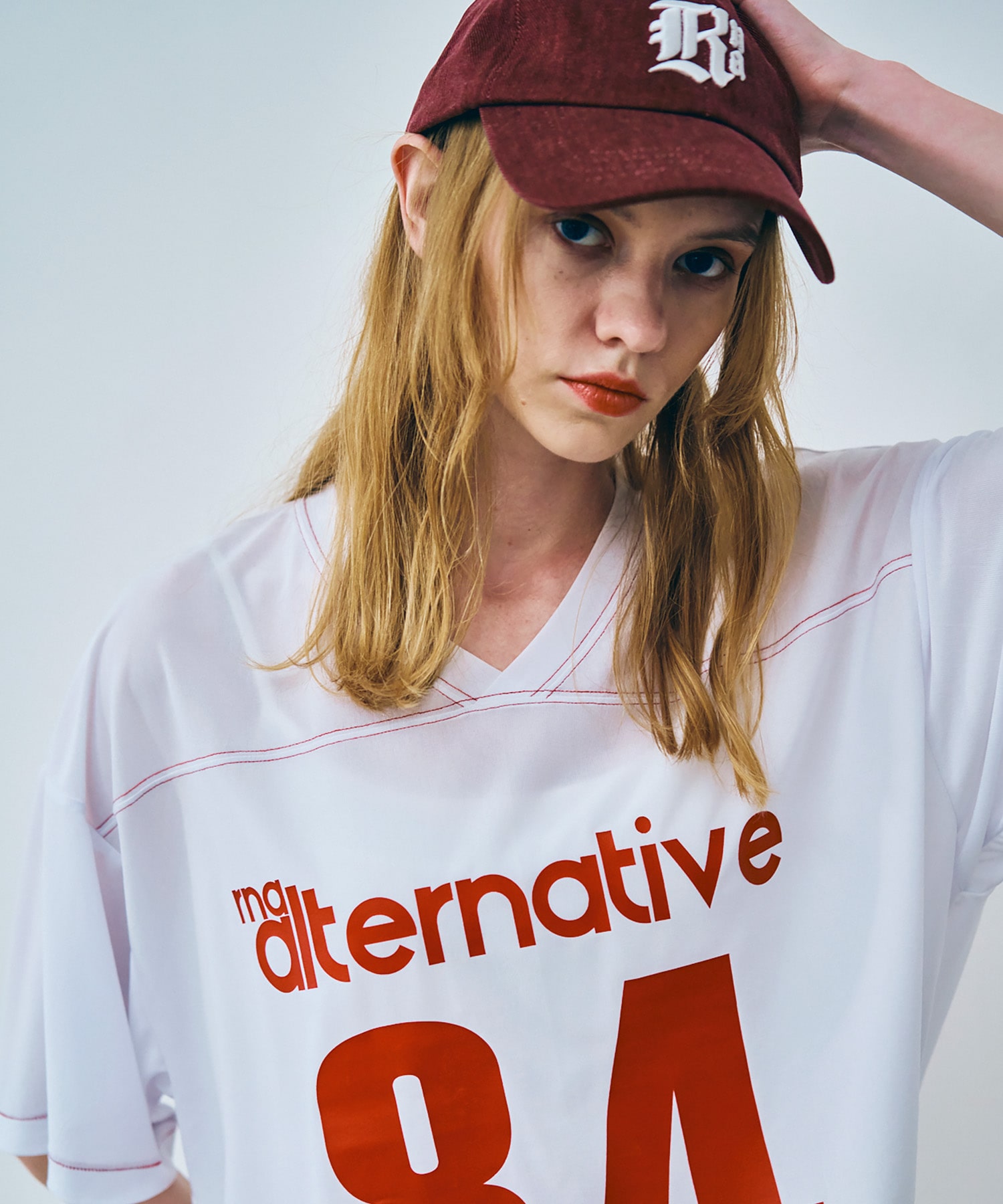 さらさらと落ち感のある素材が他にはないRNAらしさと、今っぽさのあるナンバリングTに仕上がっています。