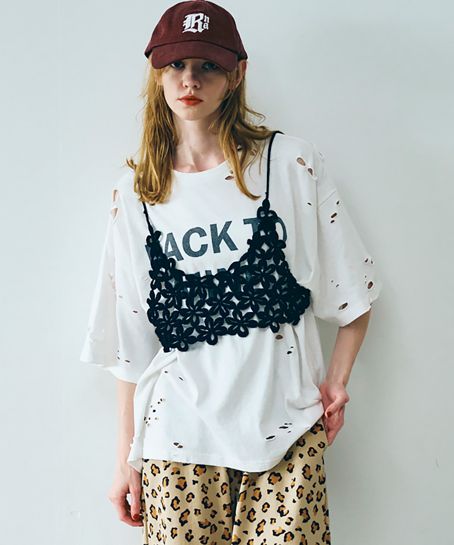 ルーズで合わせやすいサイズ感のダメージTシャツ