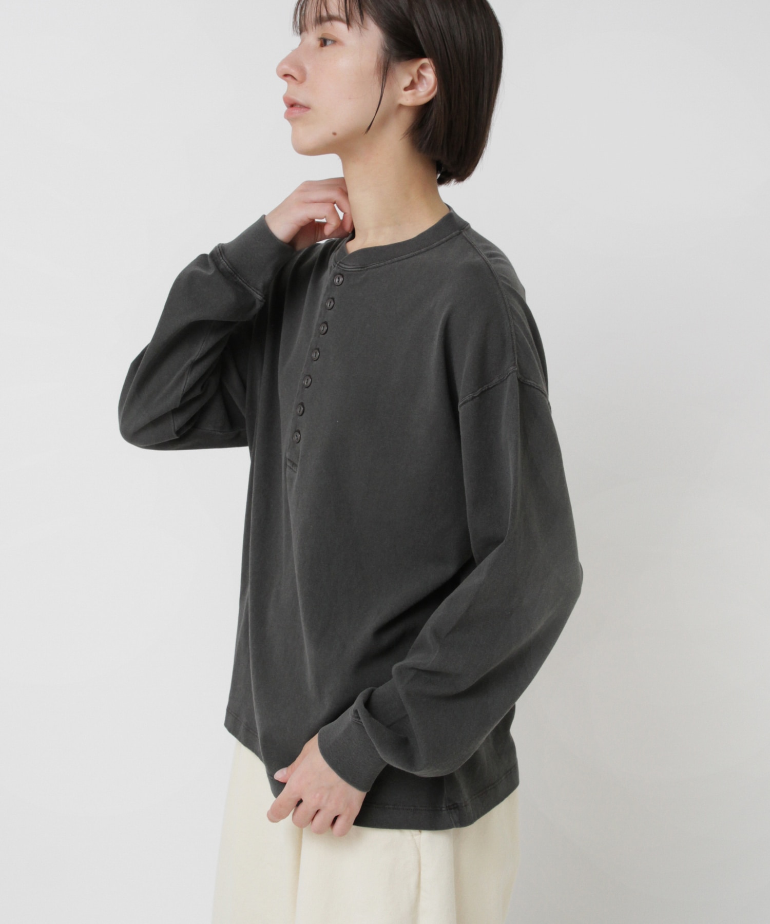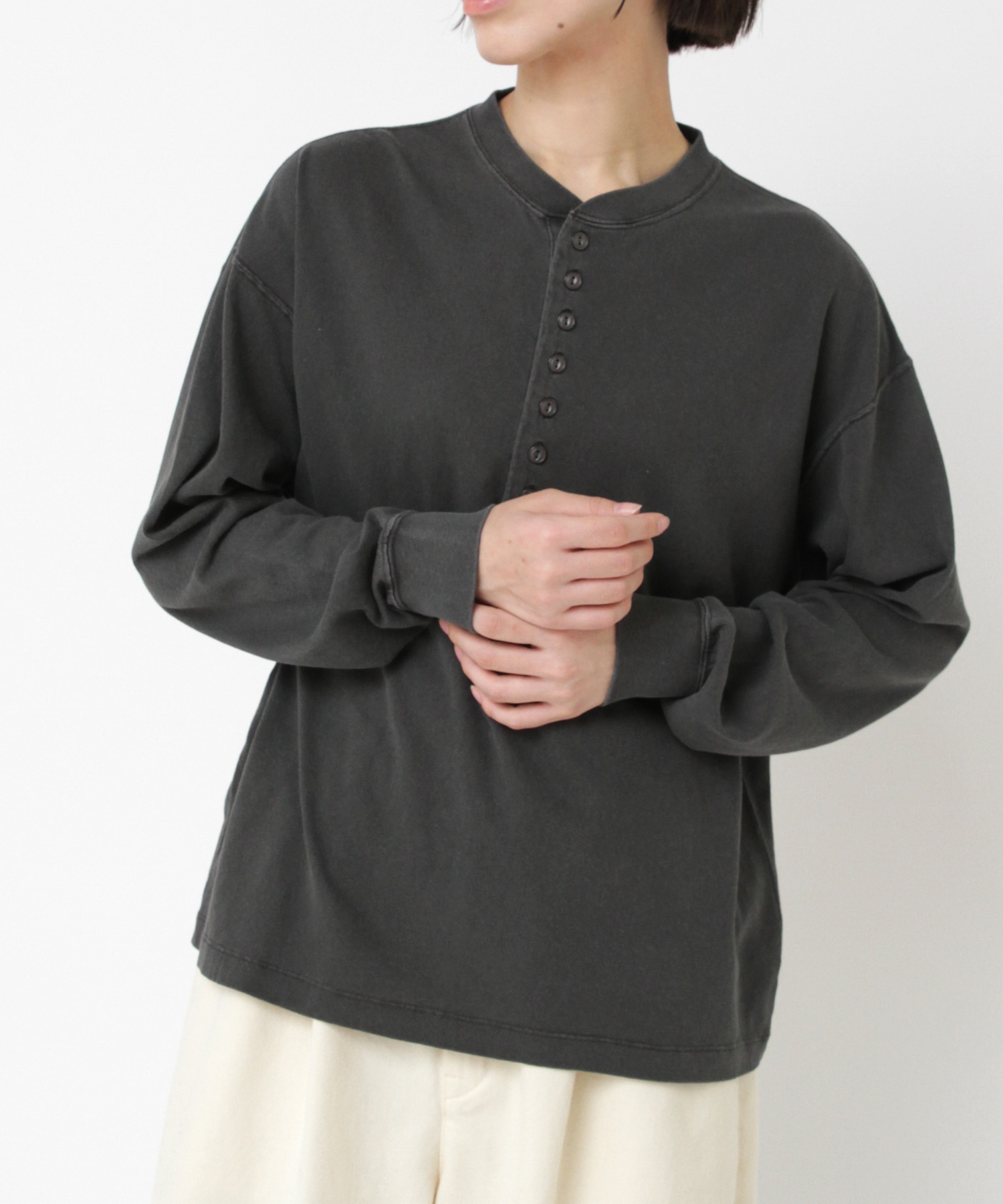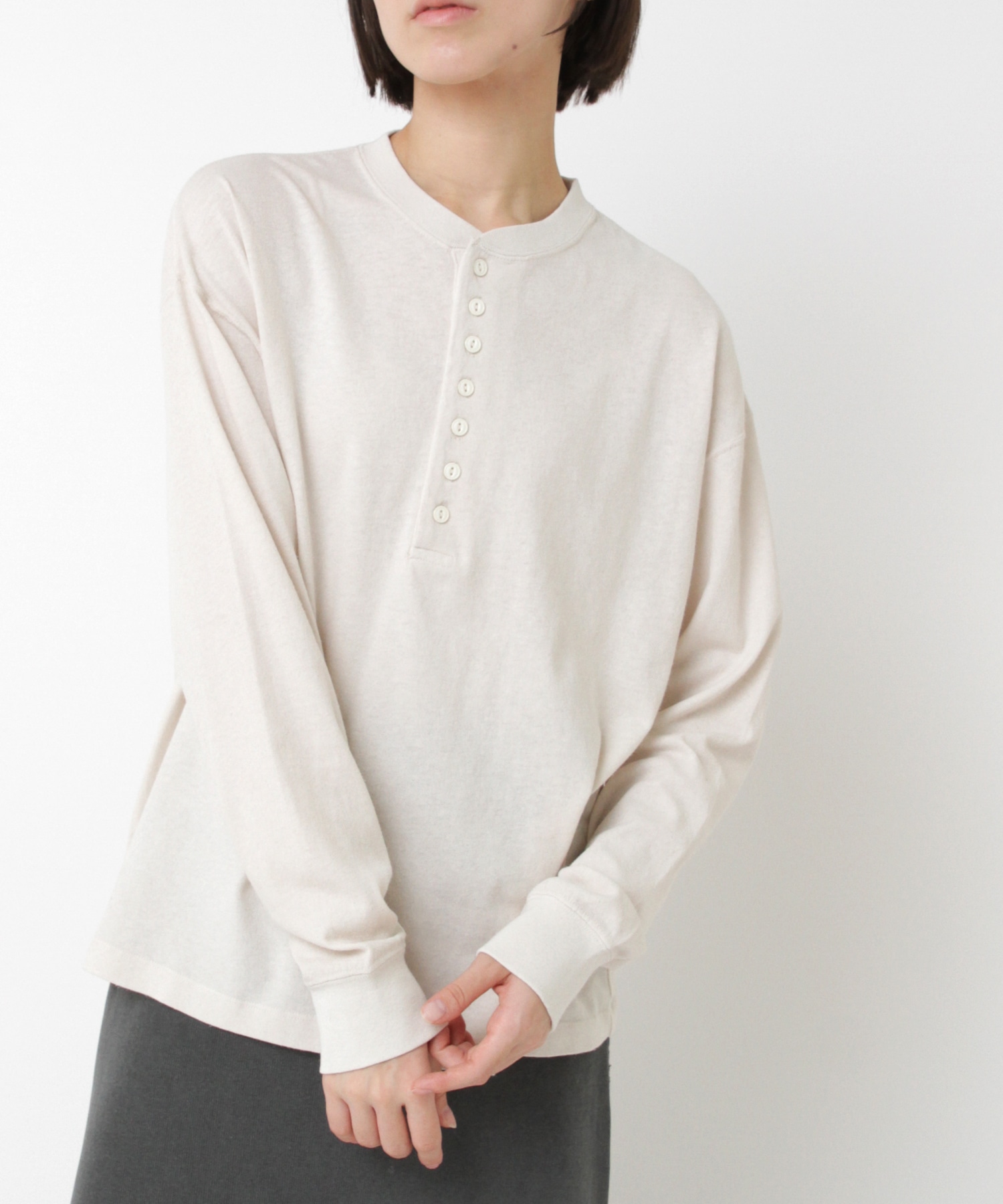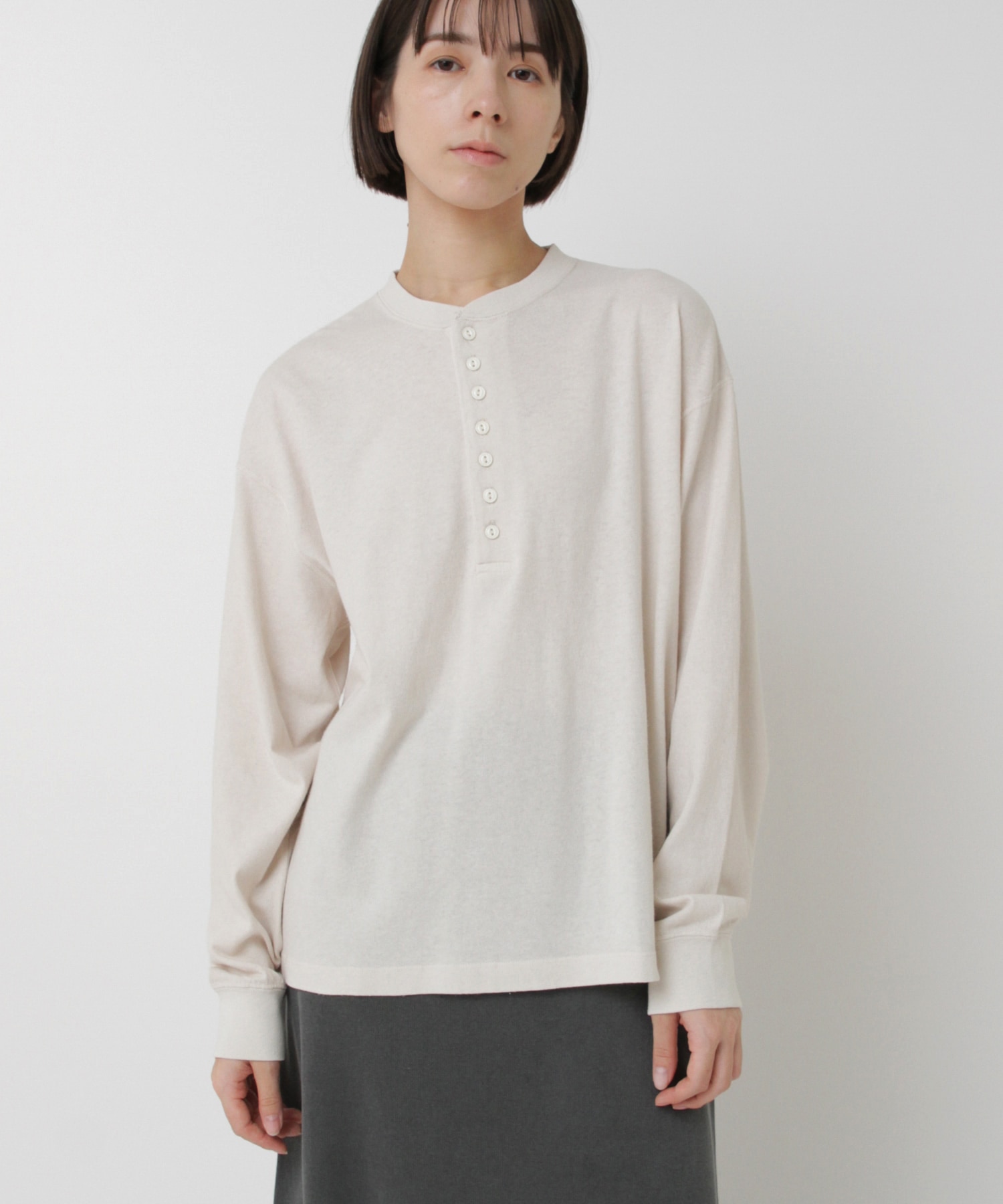 小ぶりのボタンで大人っぽく着られるヘンリー