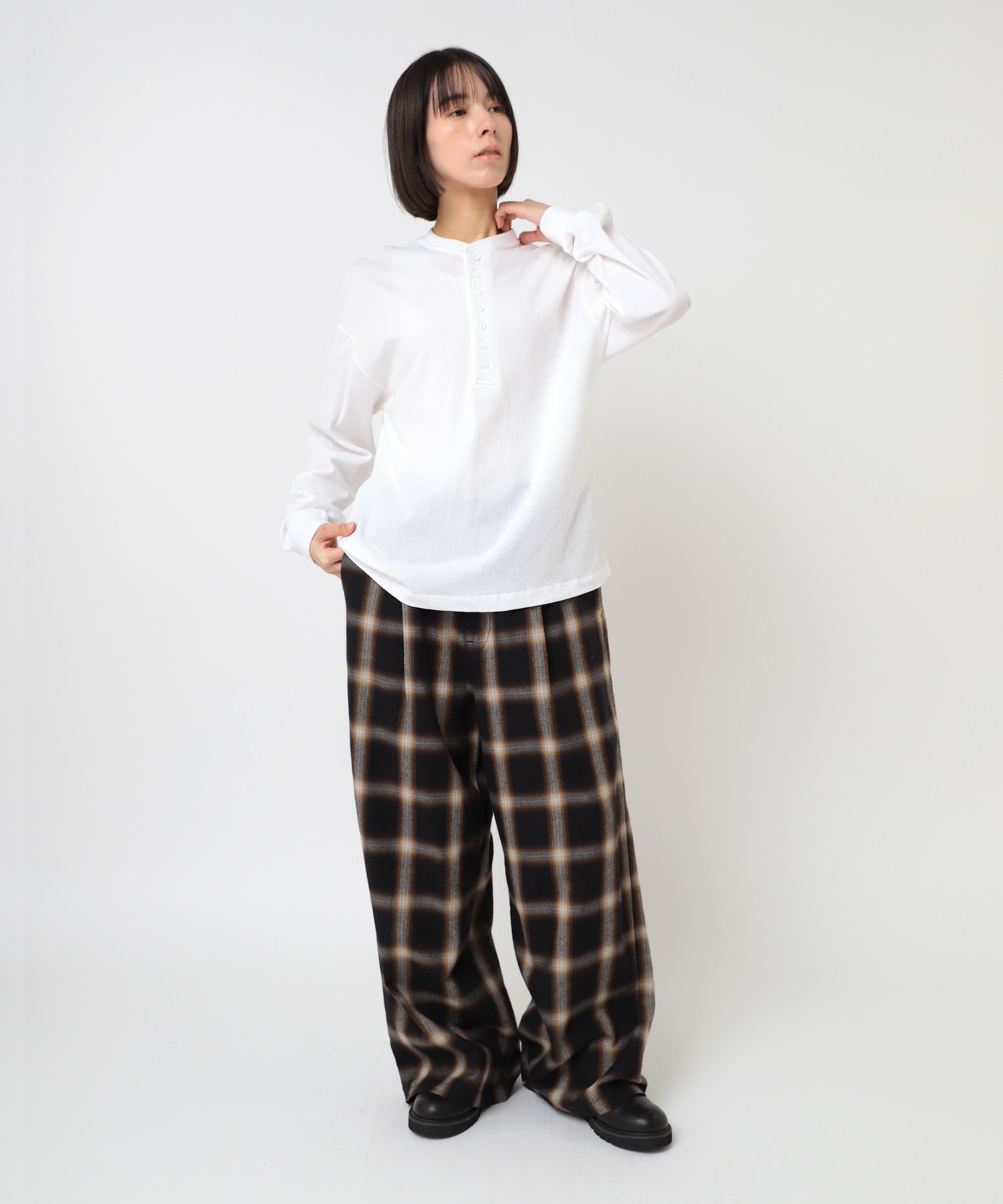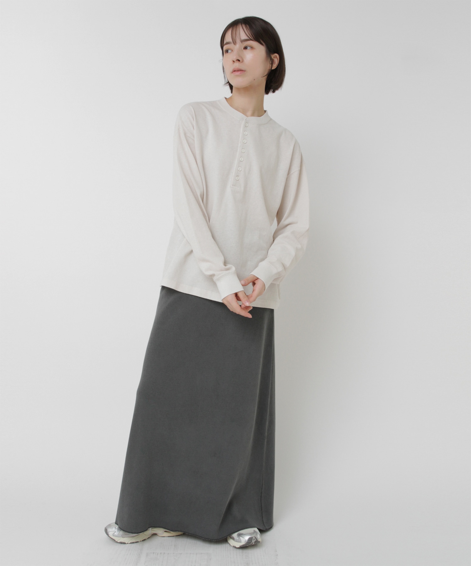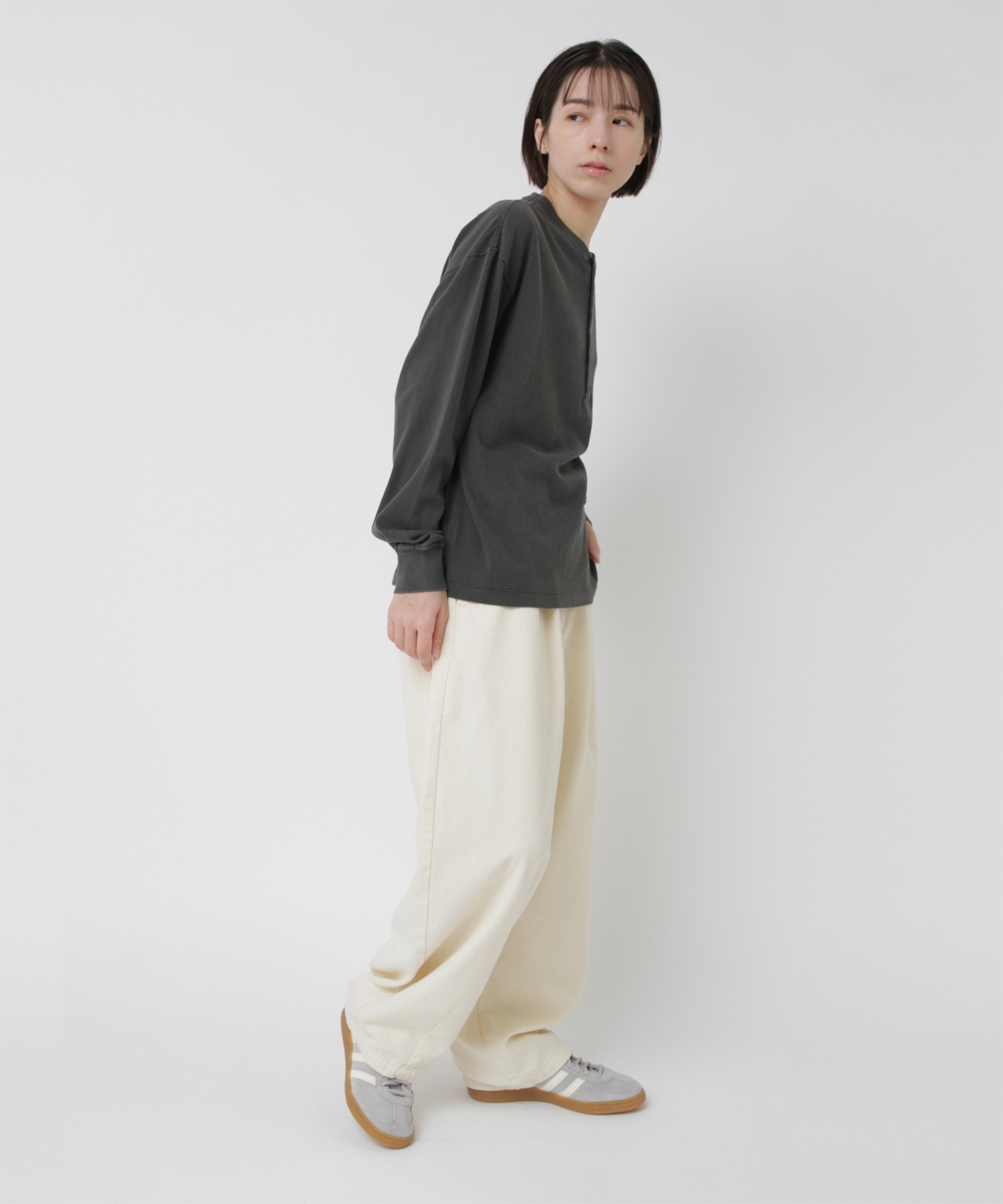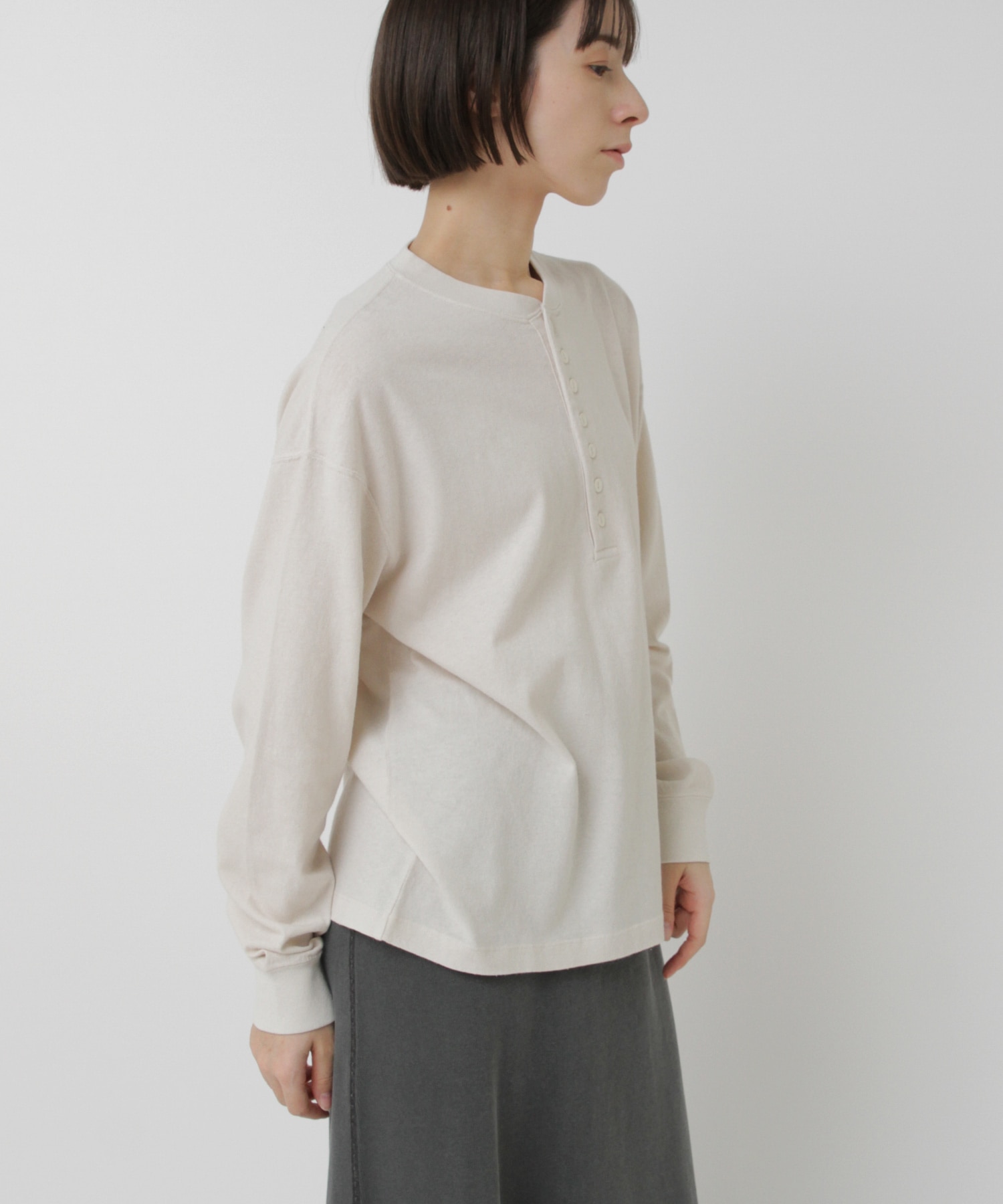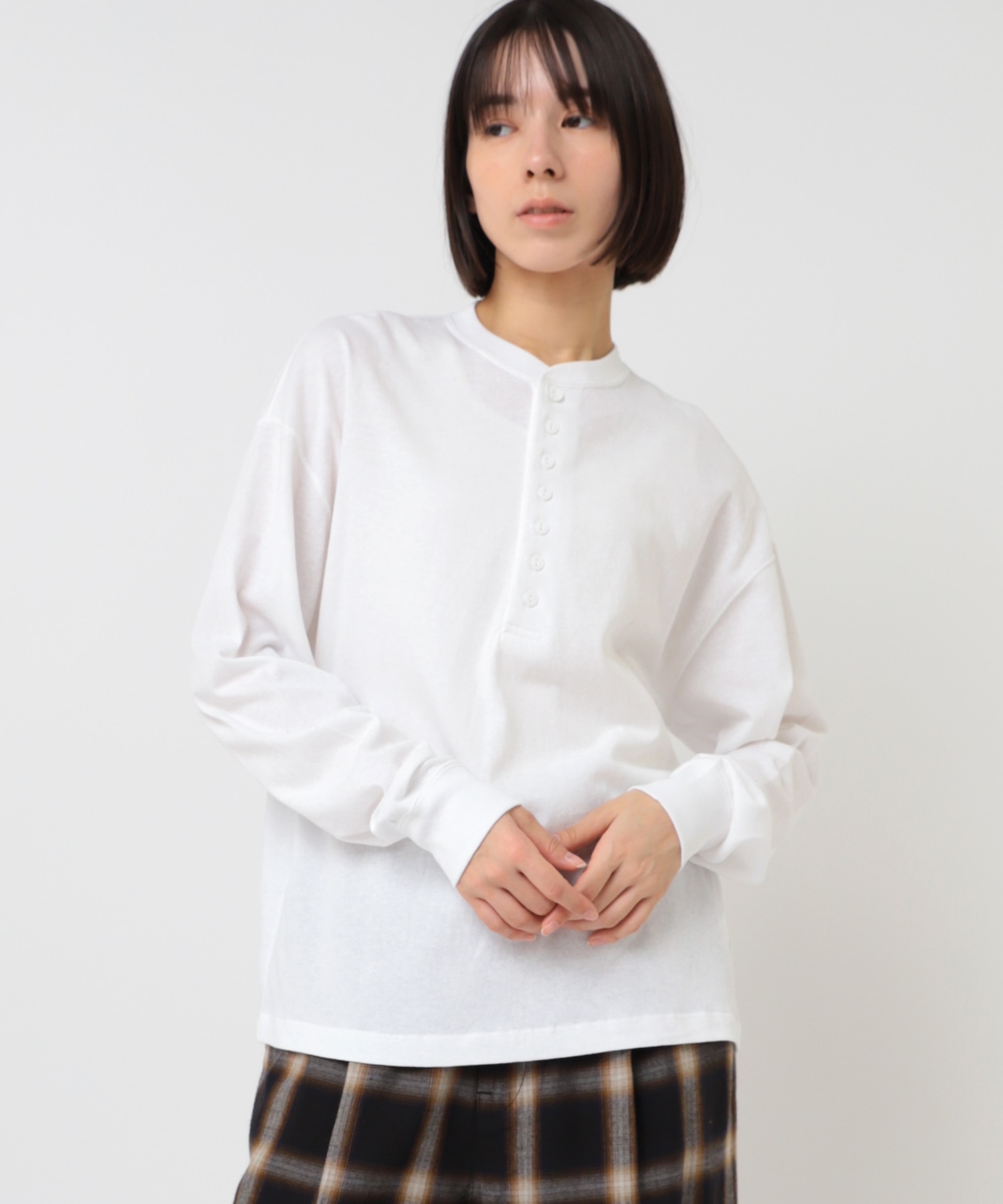 小ぶりのボタンで大人っぽく着られるヘンリー