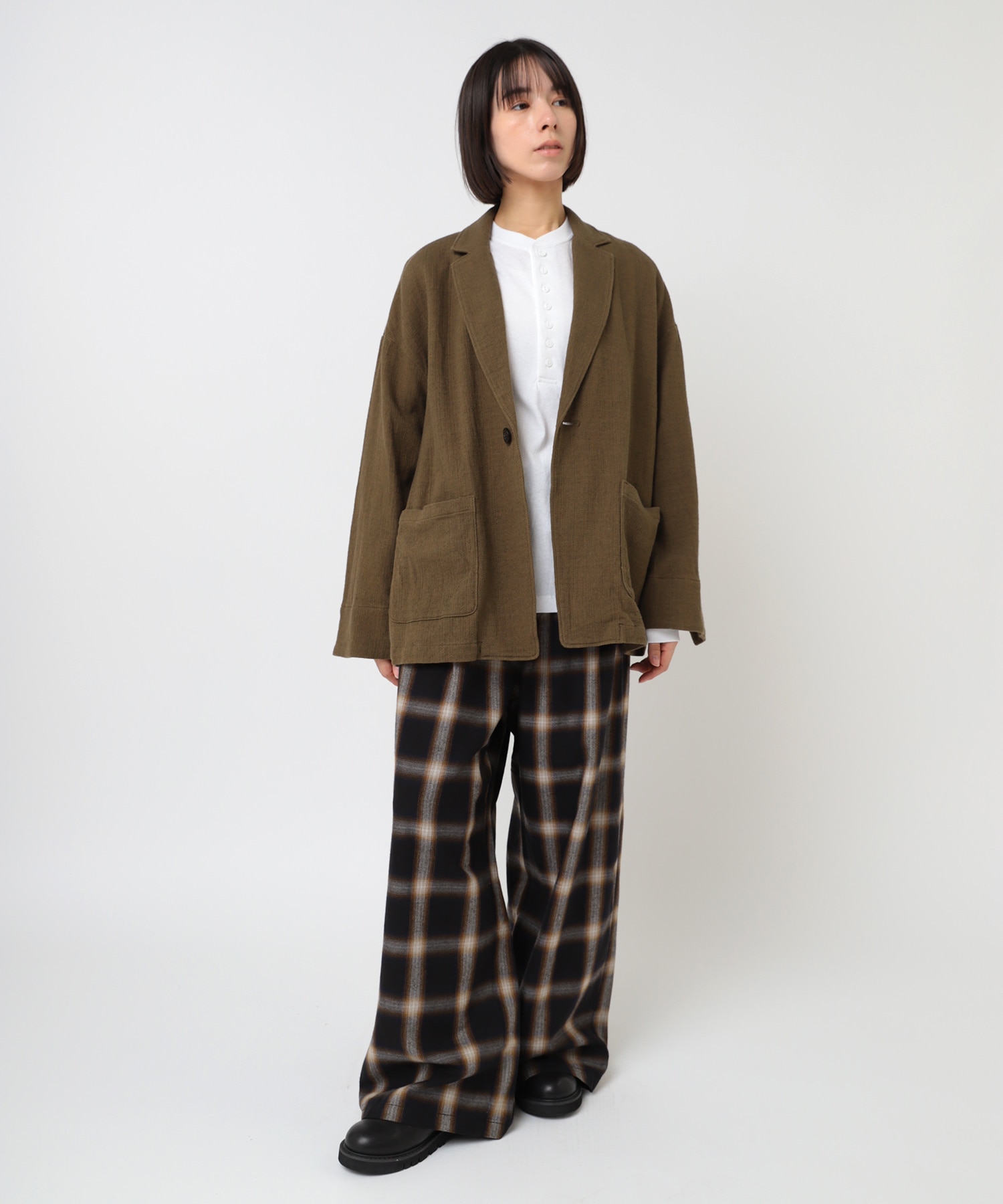 顔料染めはデニムと同様、摩擦や洗濯により表面の色が落ちてきて、味のあるユーズド感が出ることで、経年変化を楽しめる染色方法となっています。