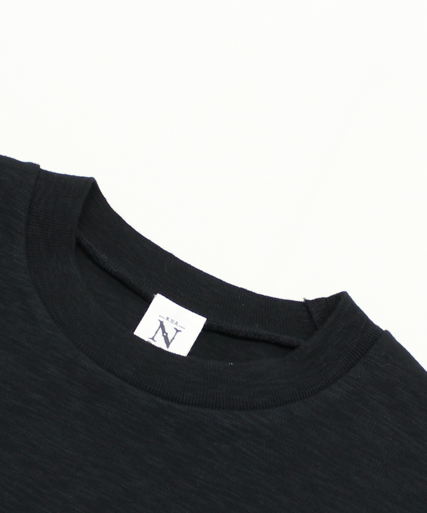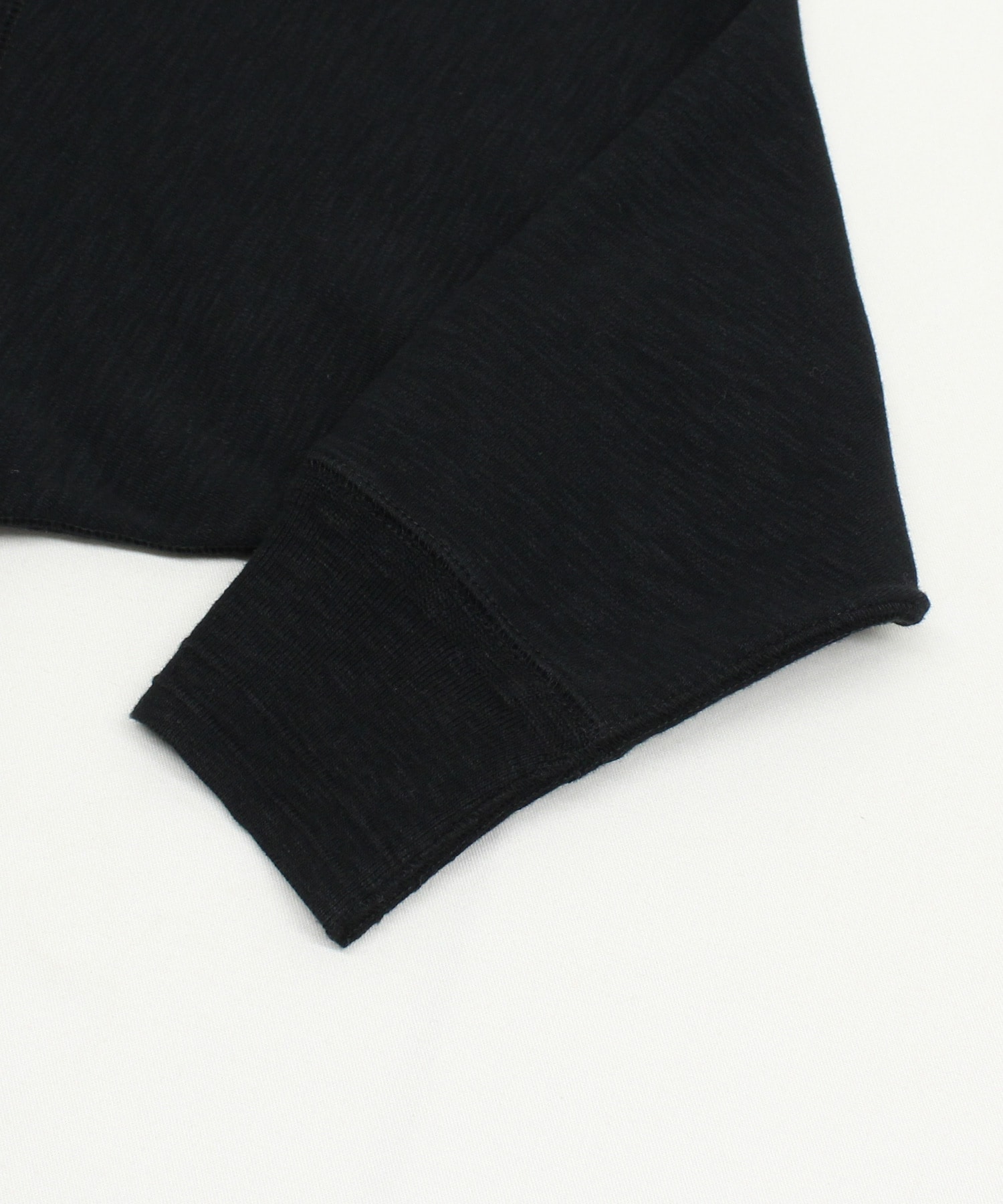 リブも同じスラブ糸でニット風に編み立て、カジュアルでナチュラルなイメージに。