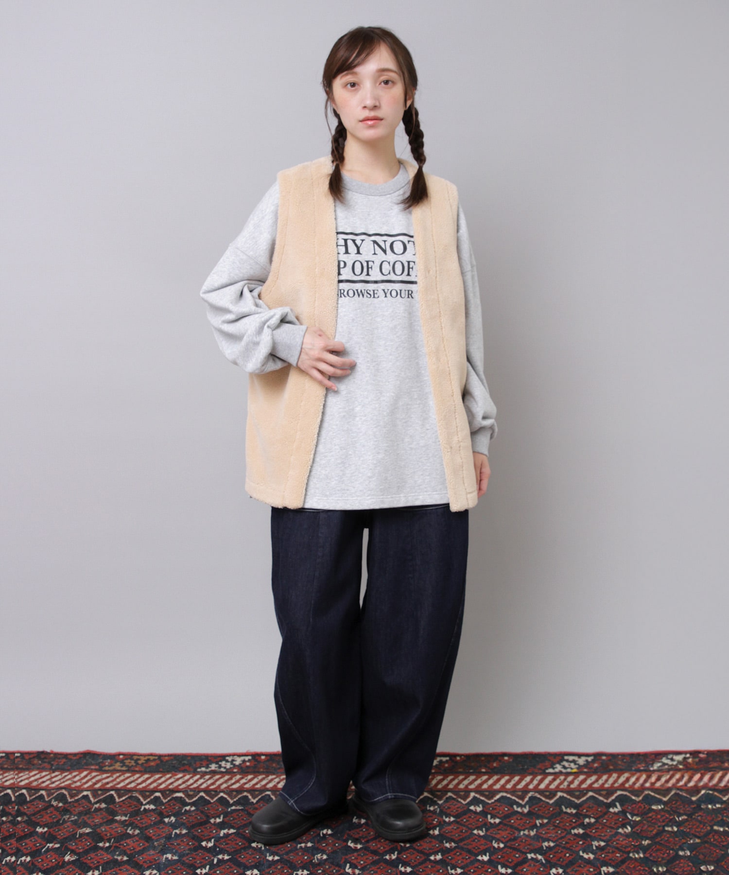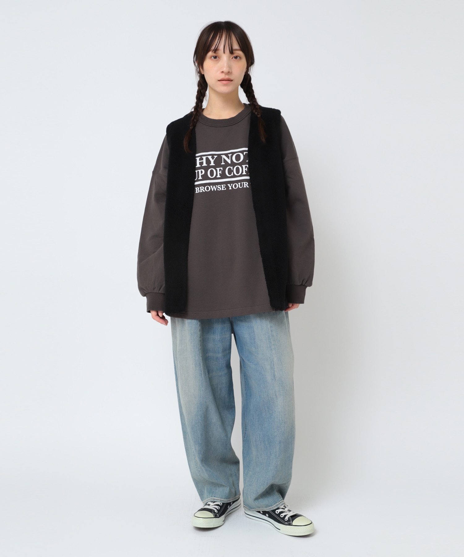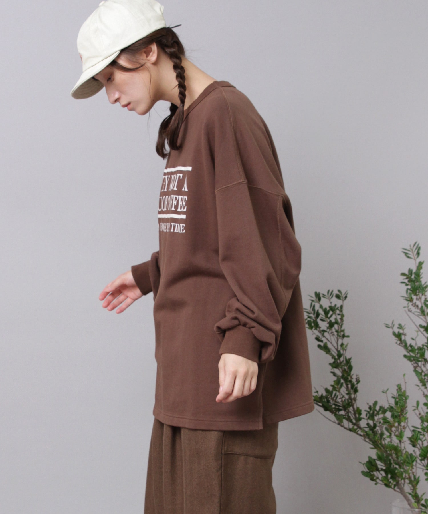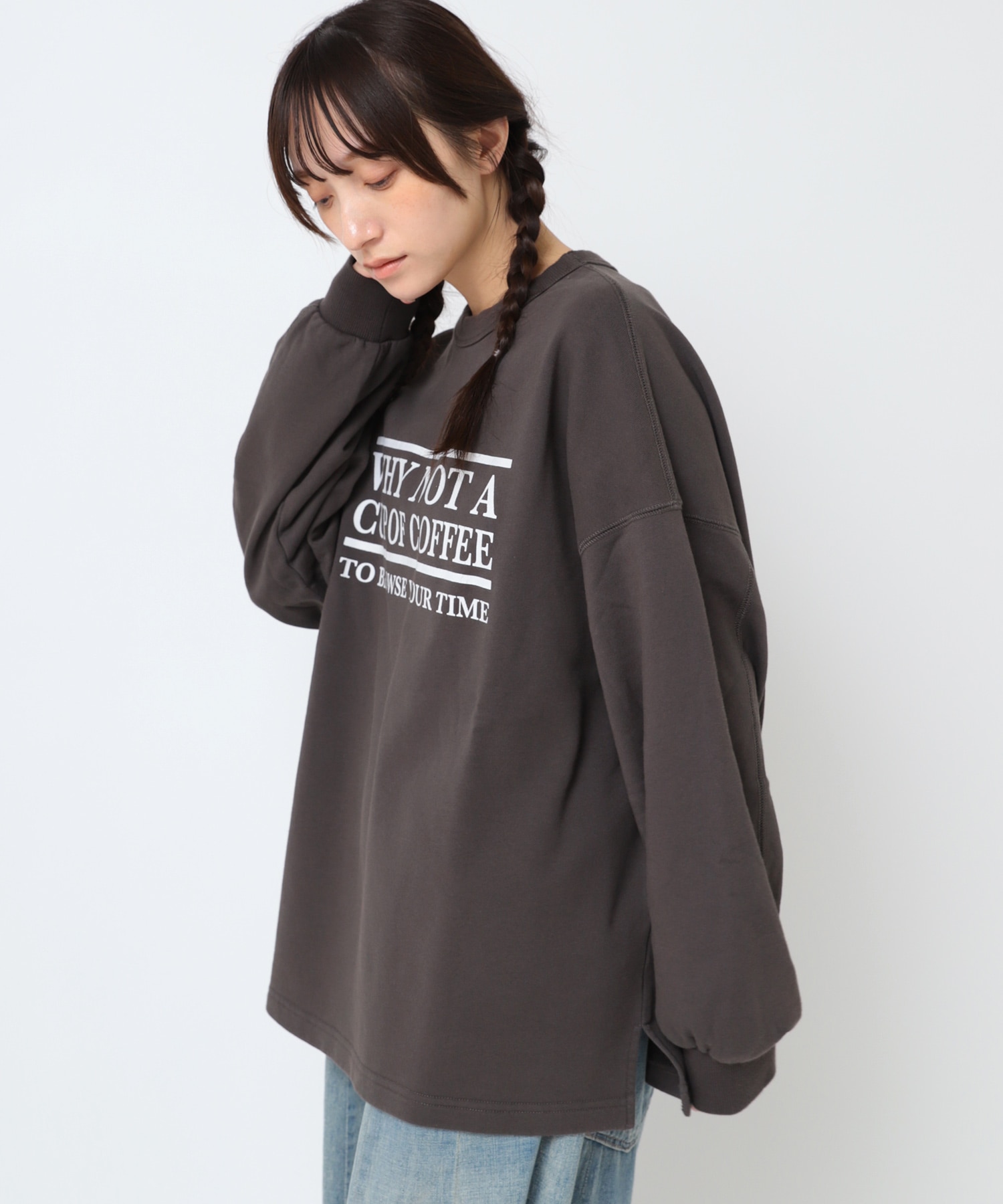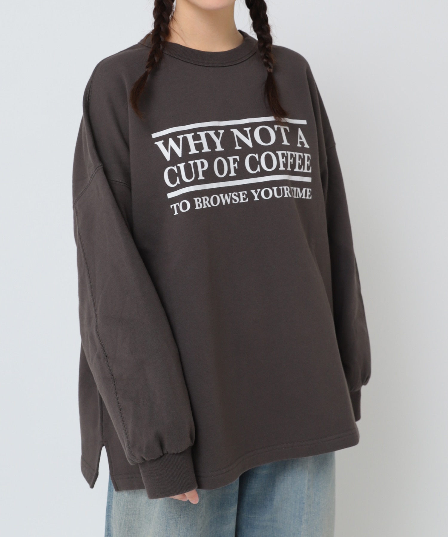 M2553 ”コーヒーどうですか”プリントビッグプルオーバー