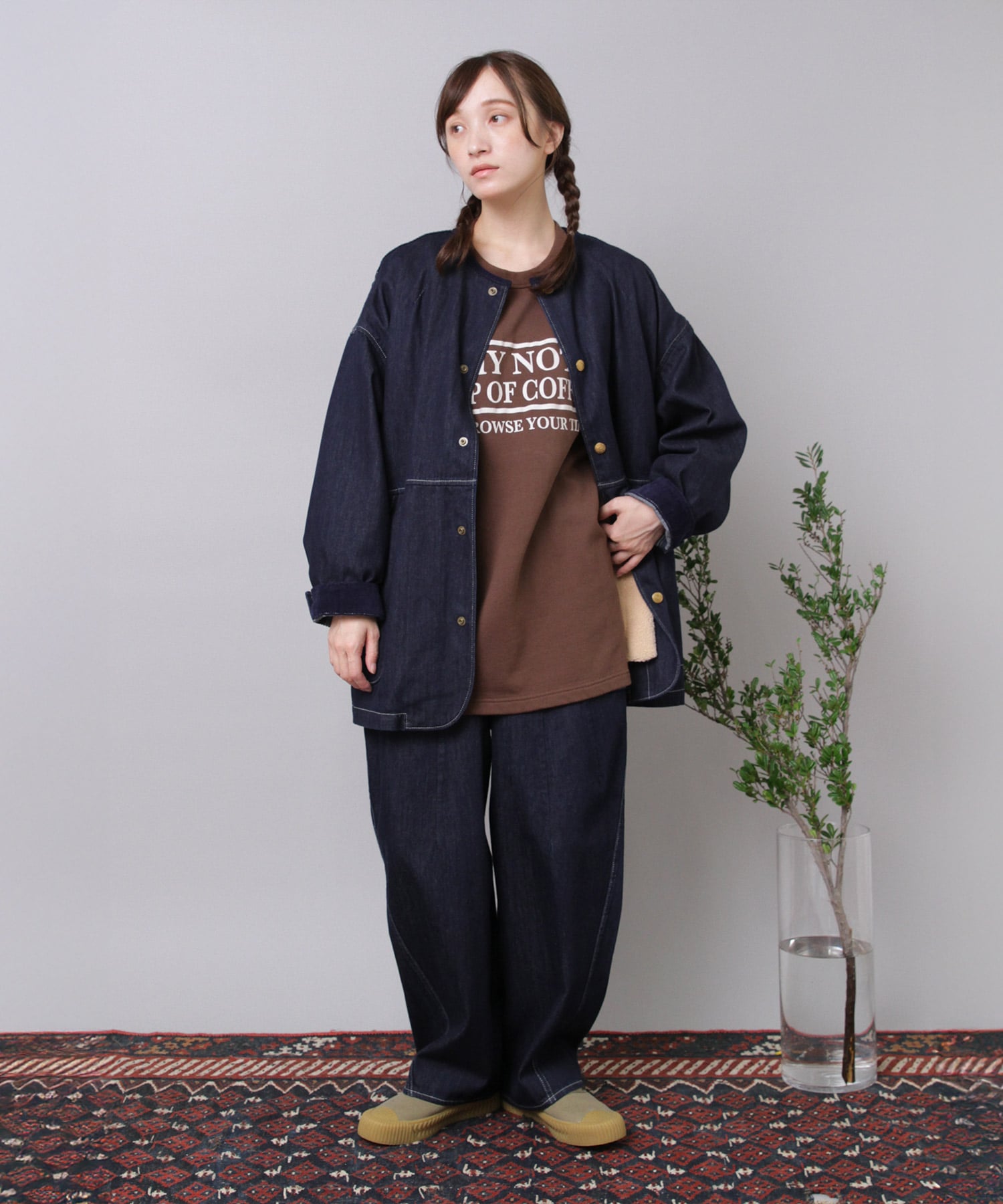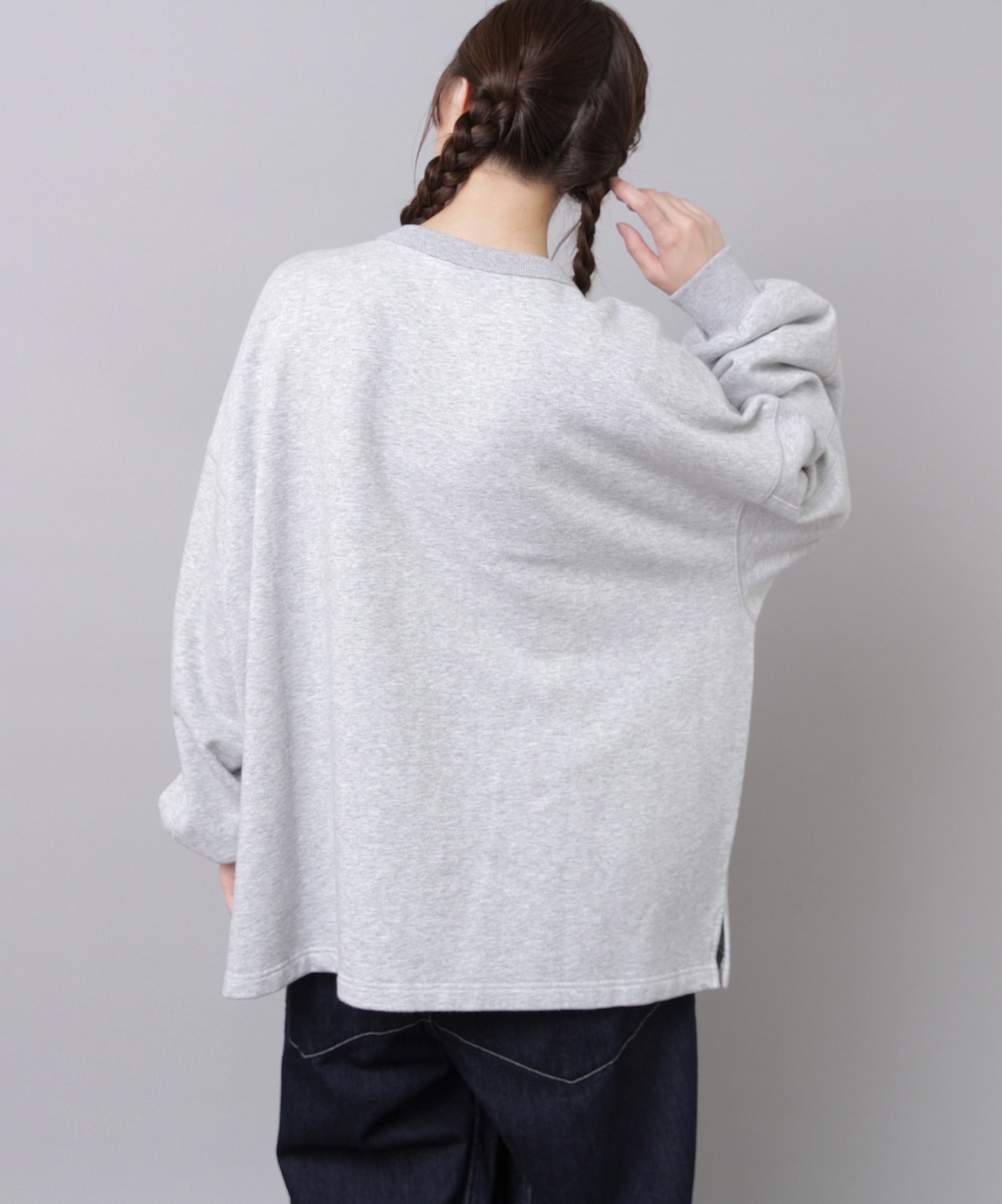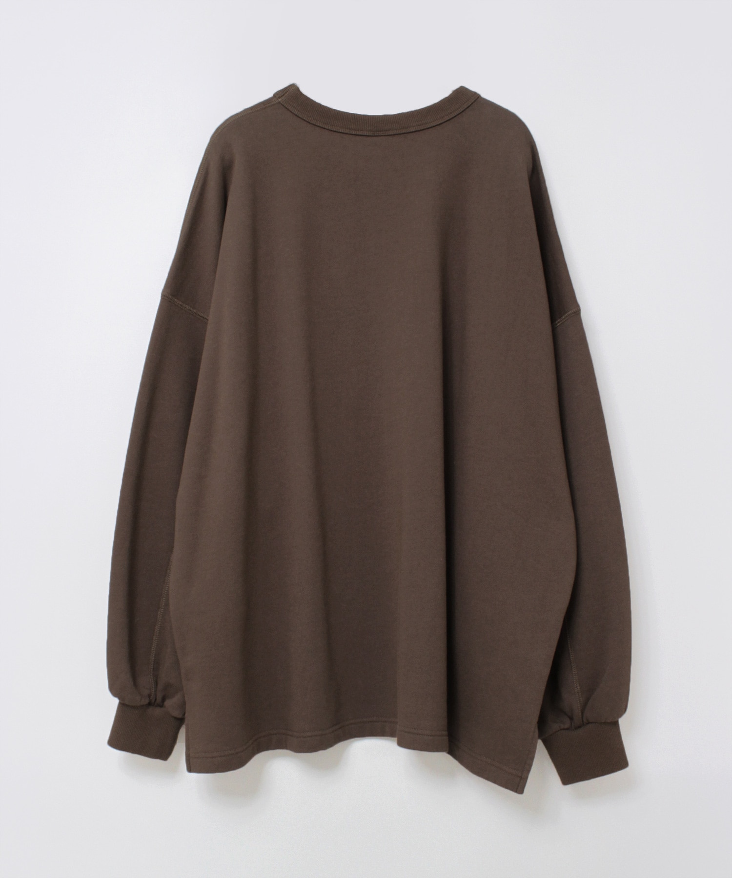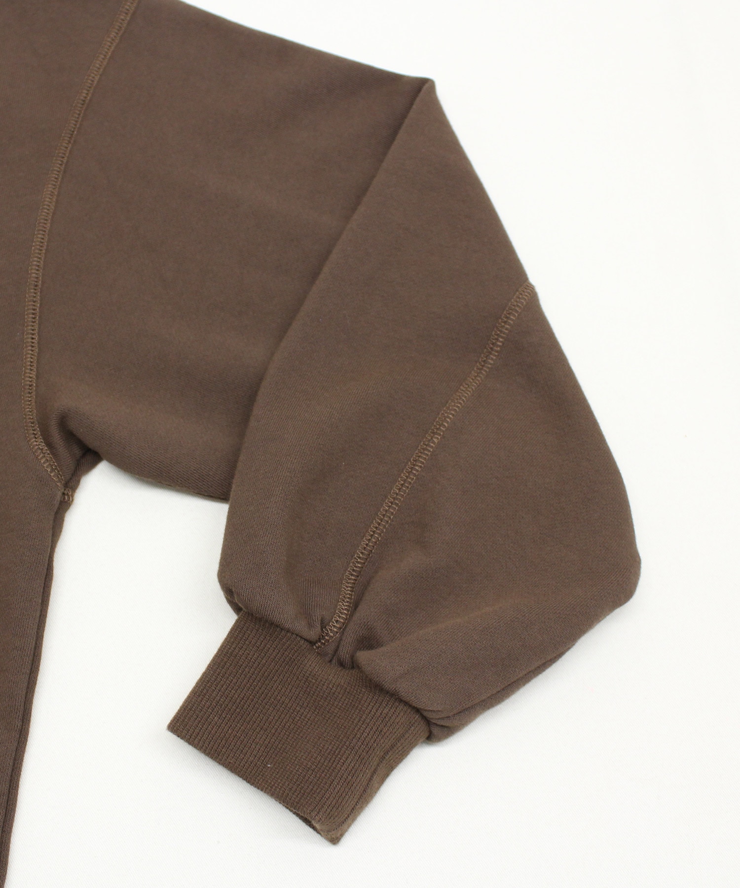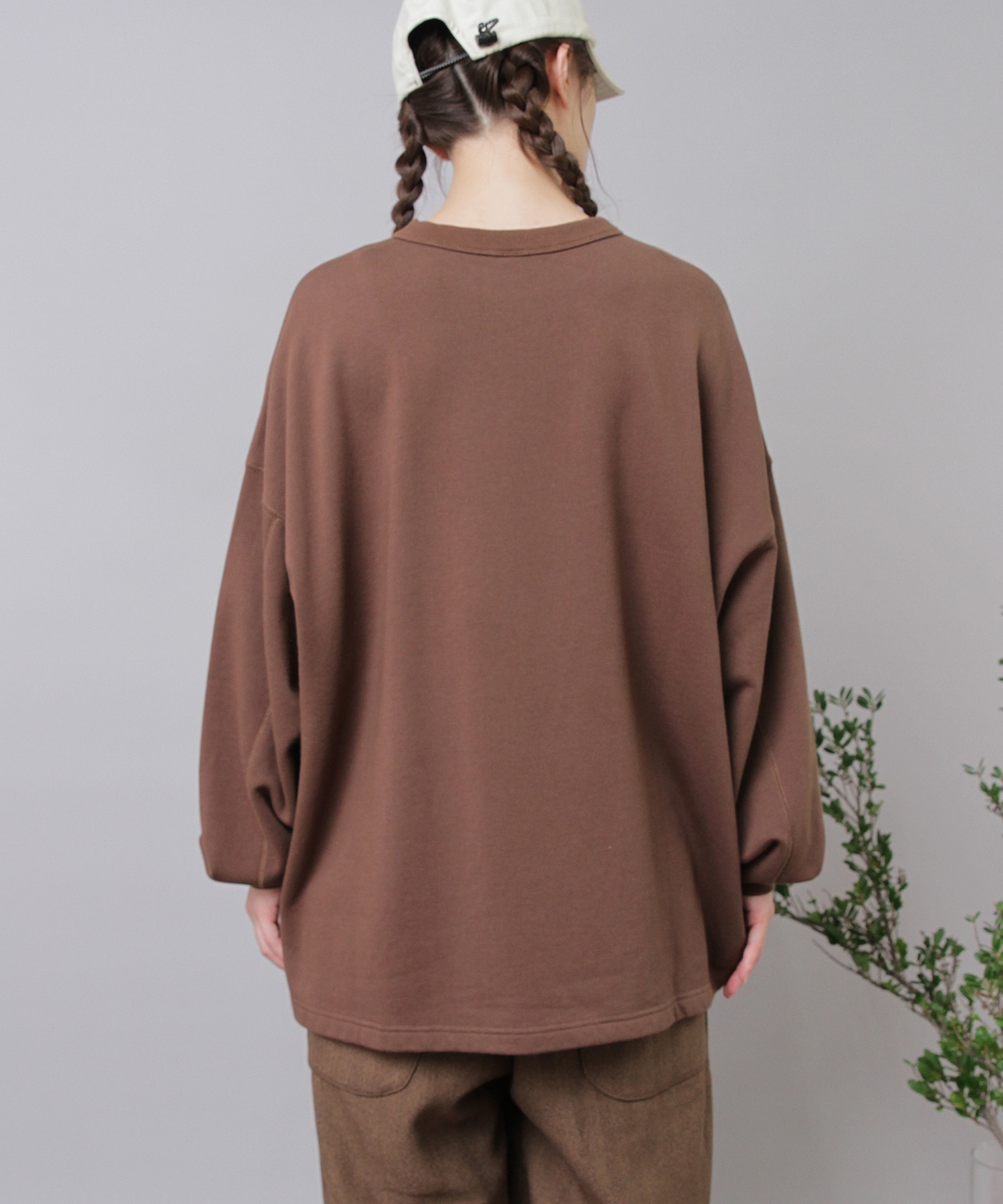 シルエットはゆったりとしたルーズ&ビッグサイズ。後ろ切り替えで生まれる丸みのある袖がポイントで、ほどよいボリュームを持たせたパフスリーブが女性らしさを演出します。太めのリブや小さめの衿ぐりなど、ヴィンテージを意識したディテールも魅力。