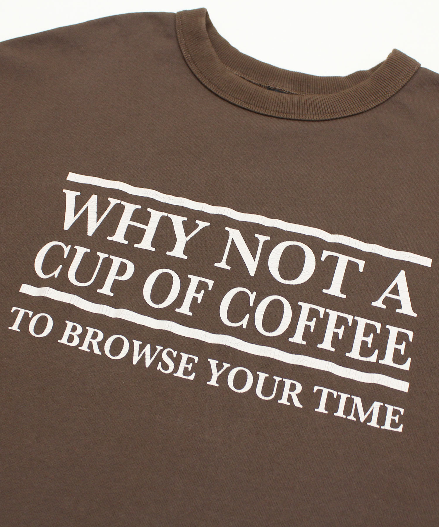 フロントには「WHY NOT A CUP OF COFFEE TO BROWSE YOUR TIME(時間つぶしにコーヒーでもどうですか?)」のメッセージプリント。