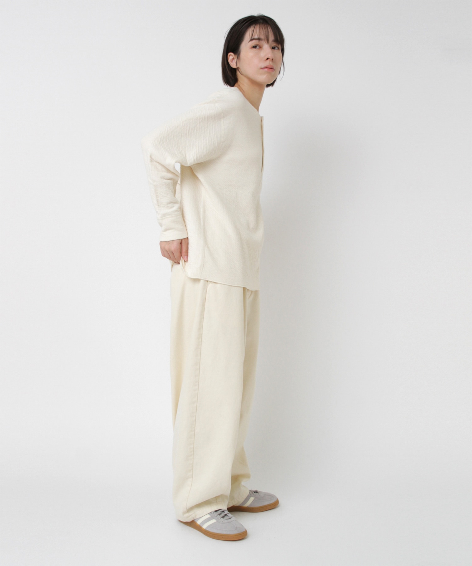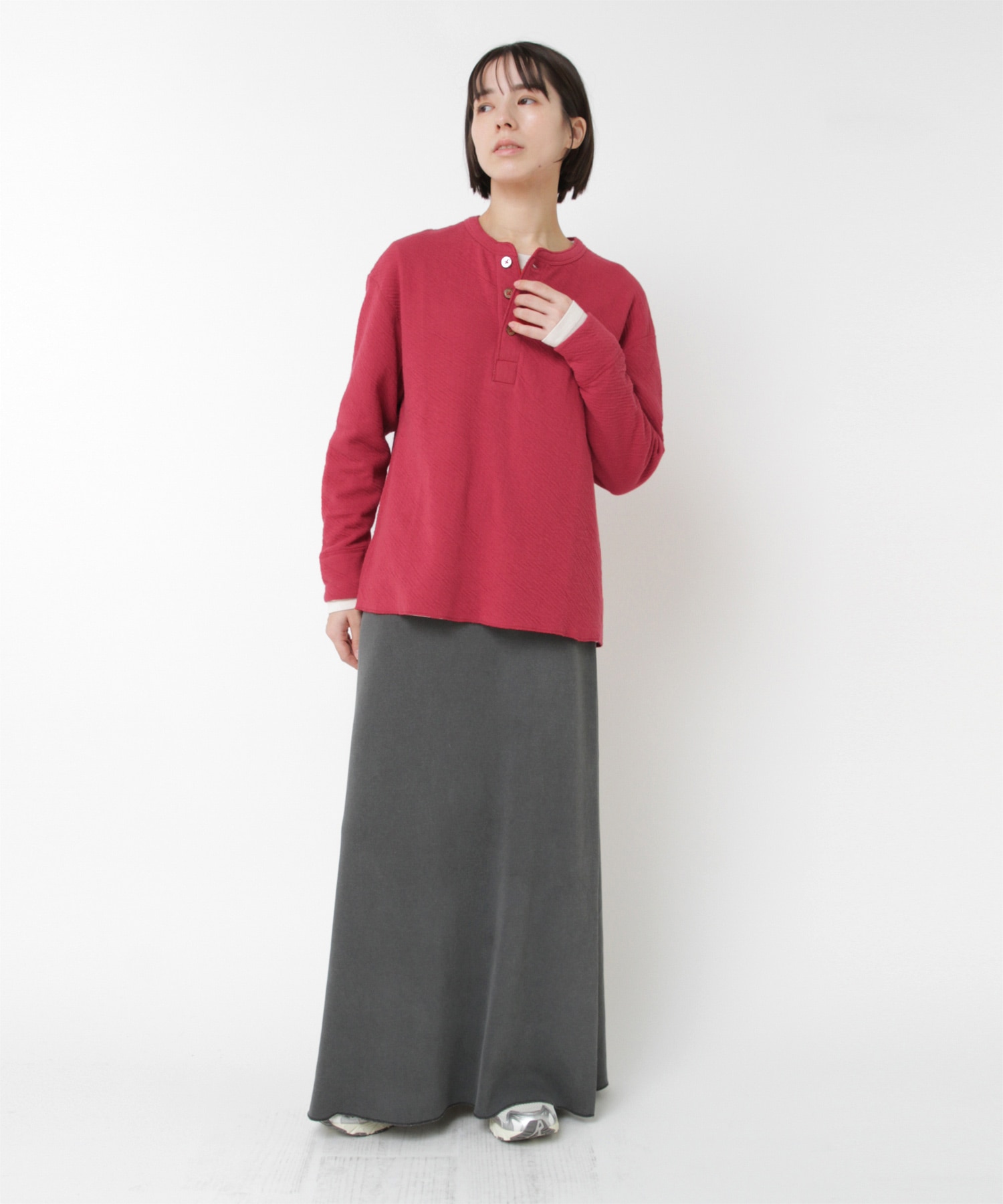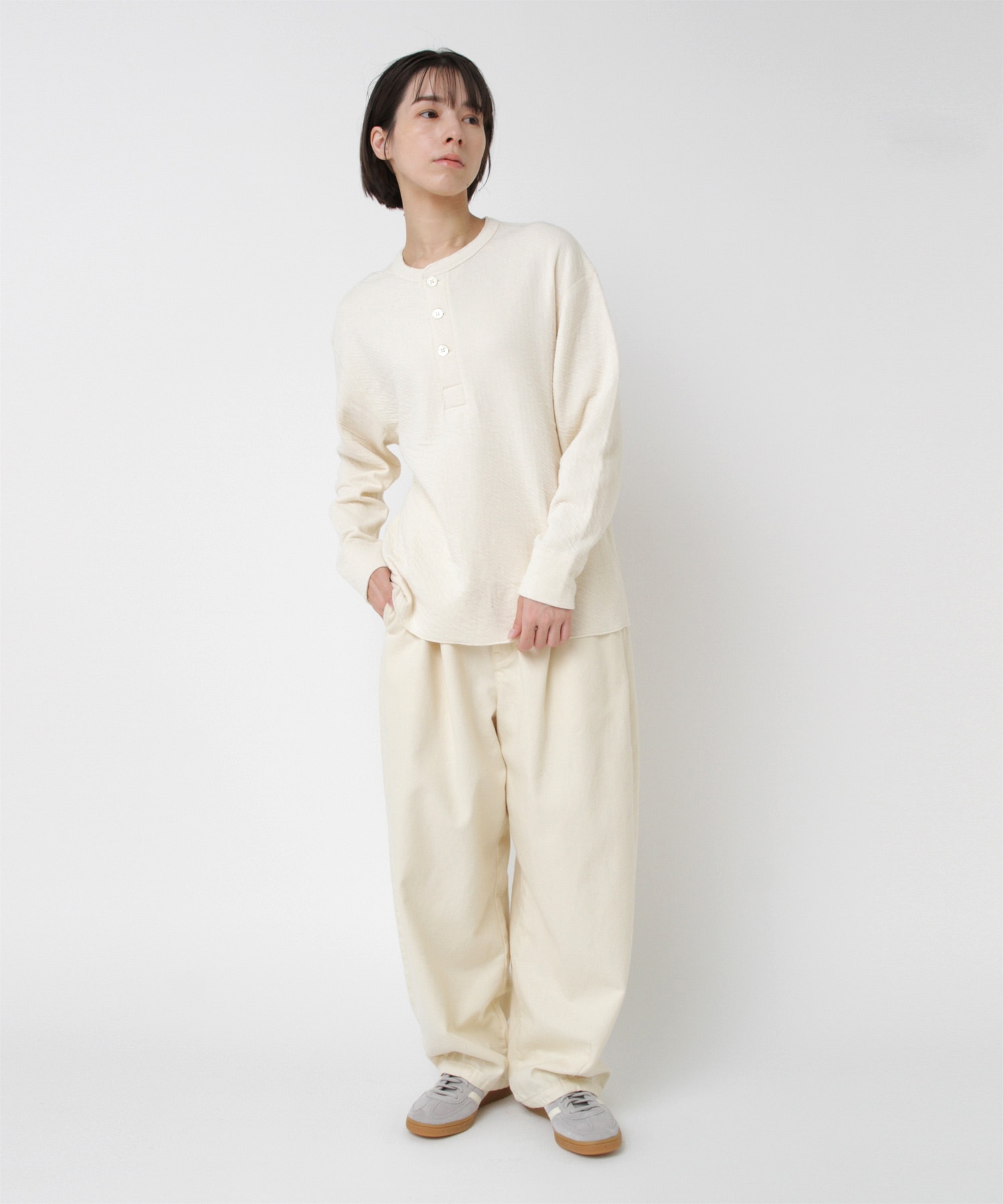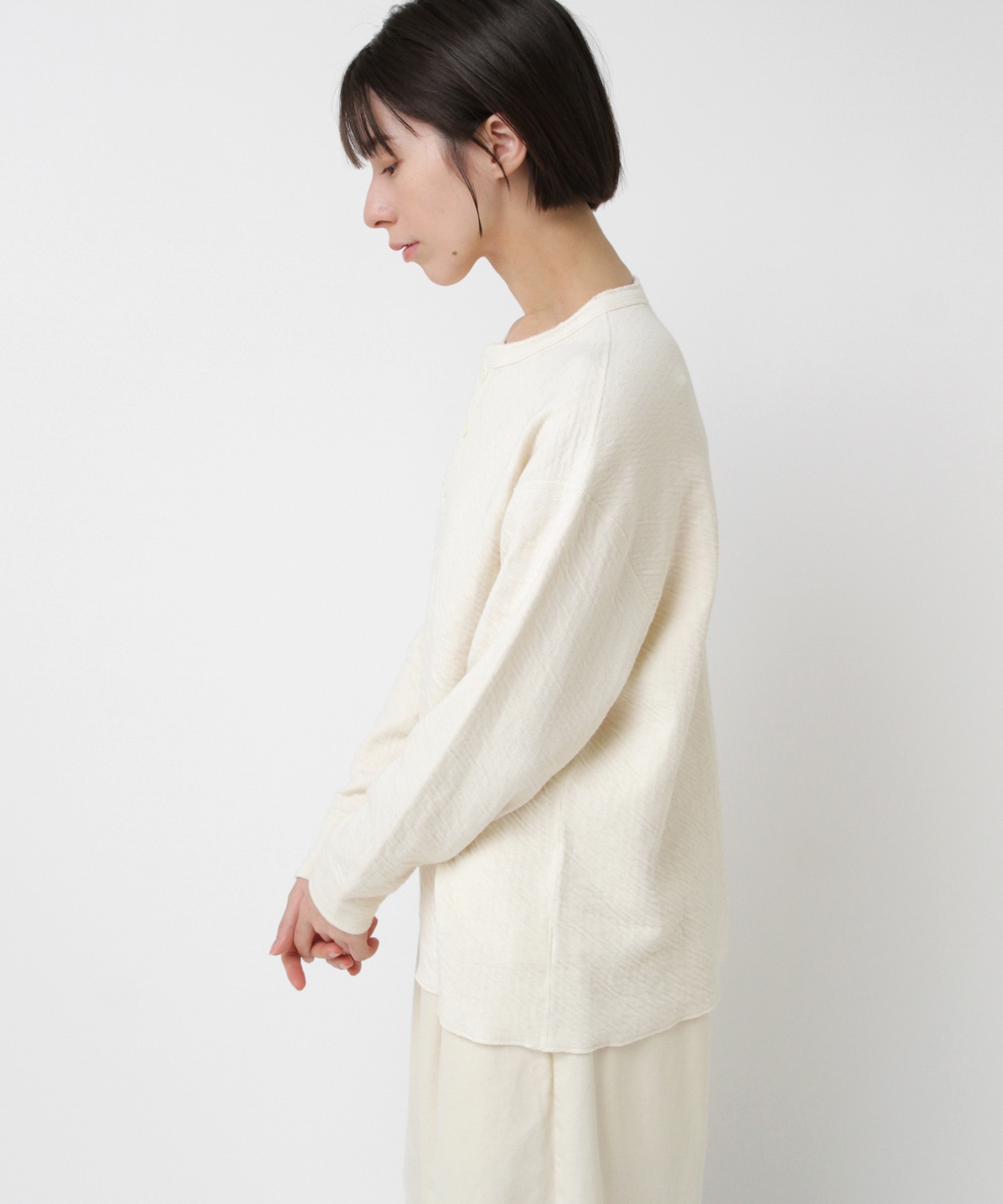 程よいゆとりを持たせたシルエットで、一枚でもインナーとしても着回しやすい接結ヘンリー