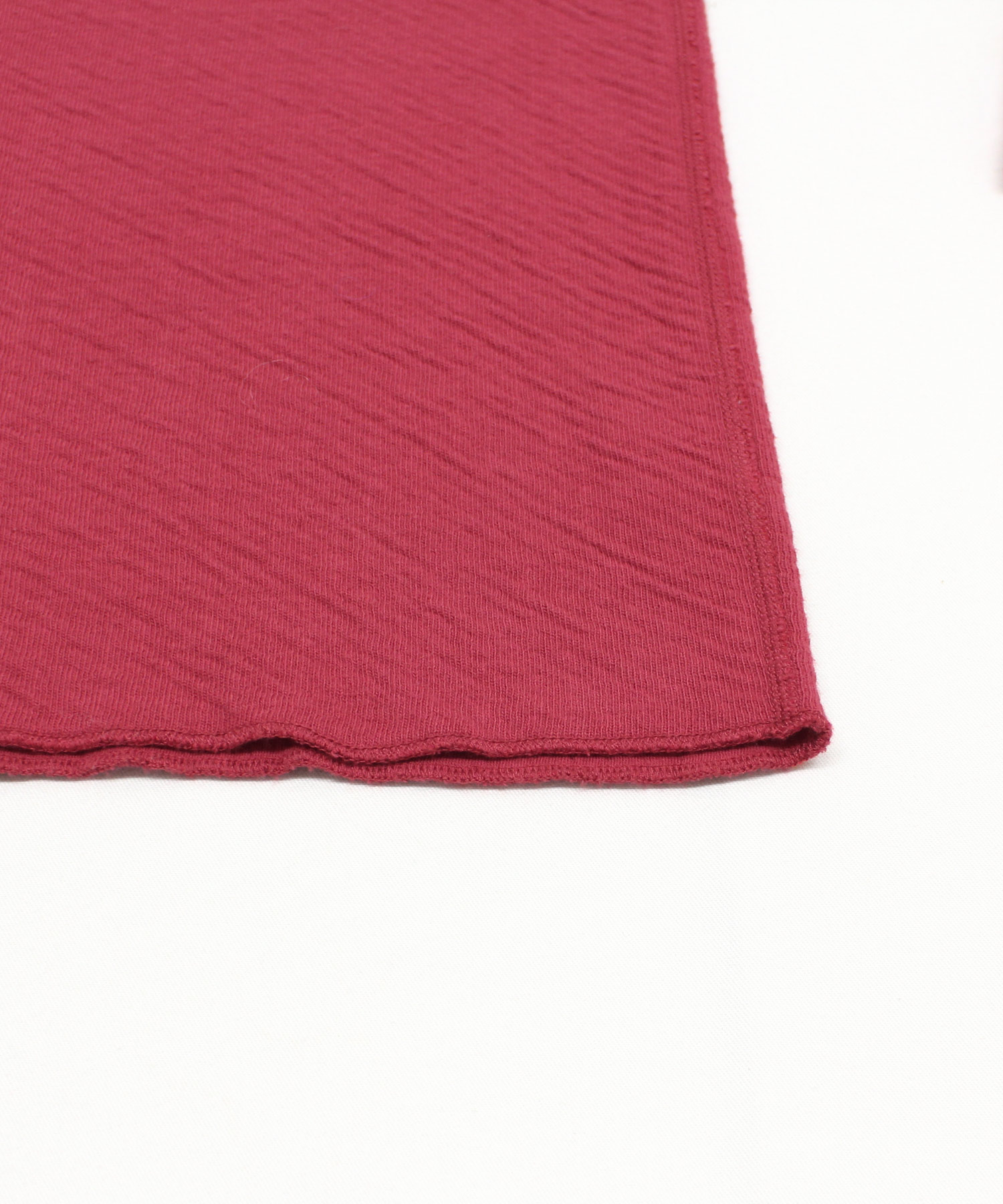 裾はオーバーロック仕上げでラフな印象にデザインしました。インナーとして使っても、裾がアクセントになります。