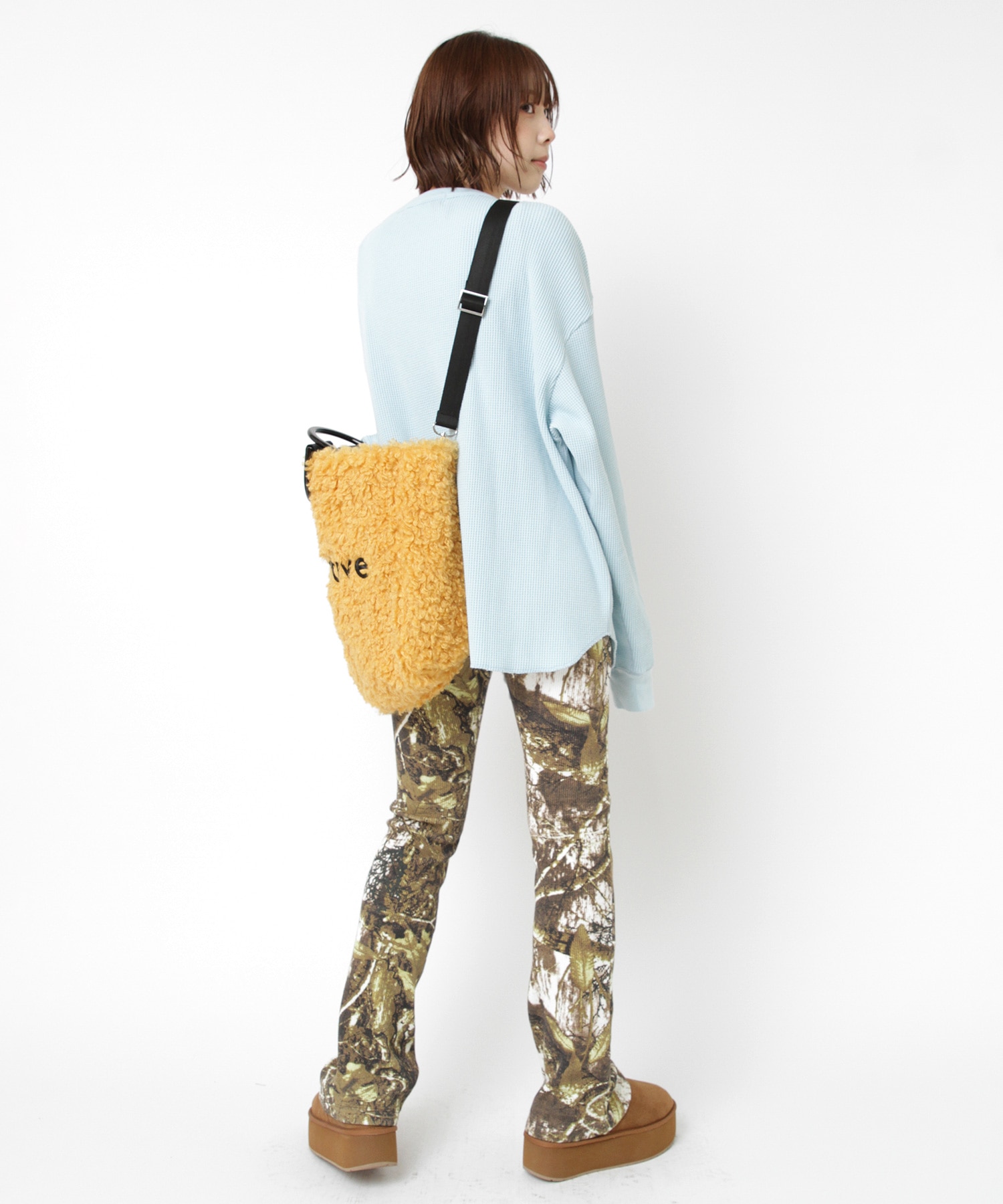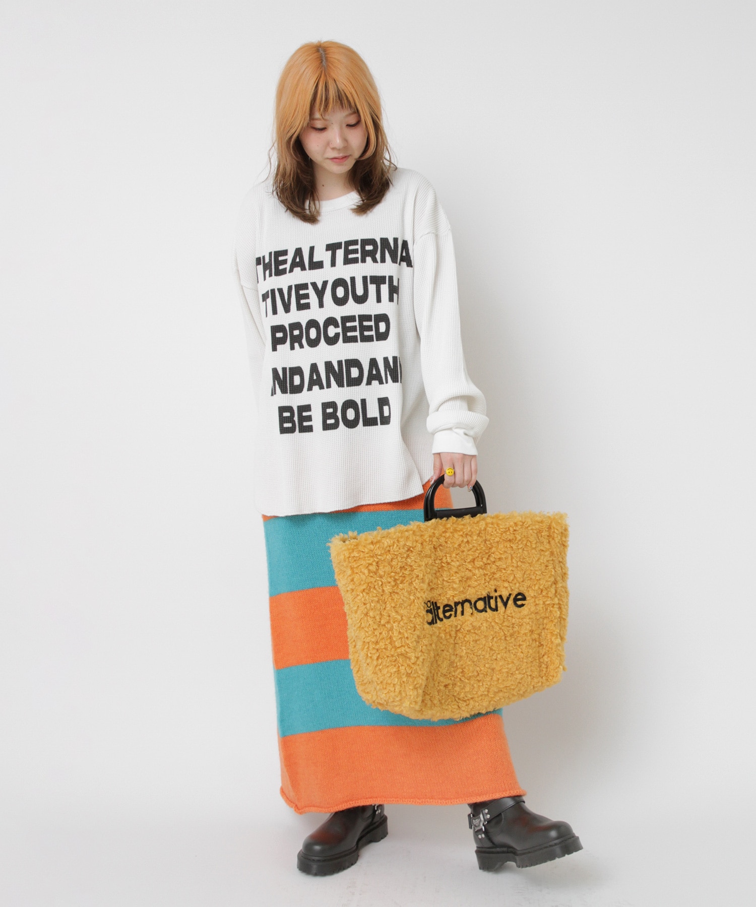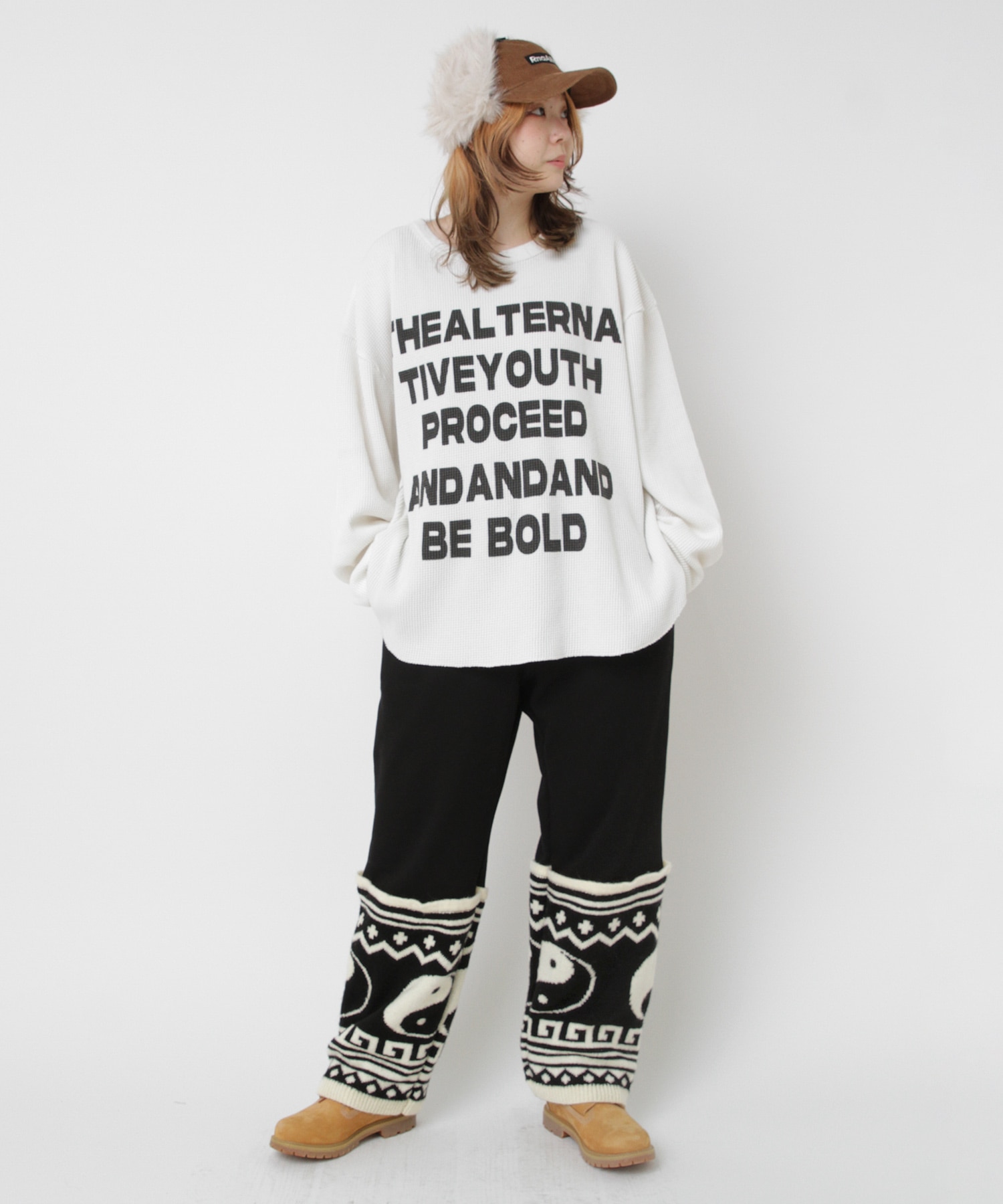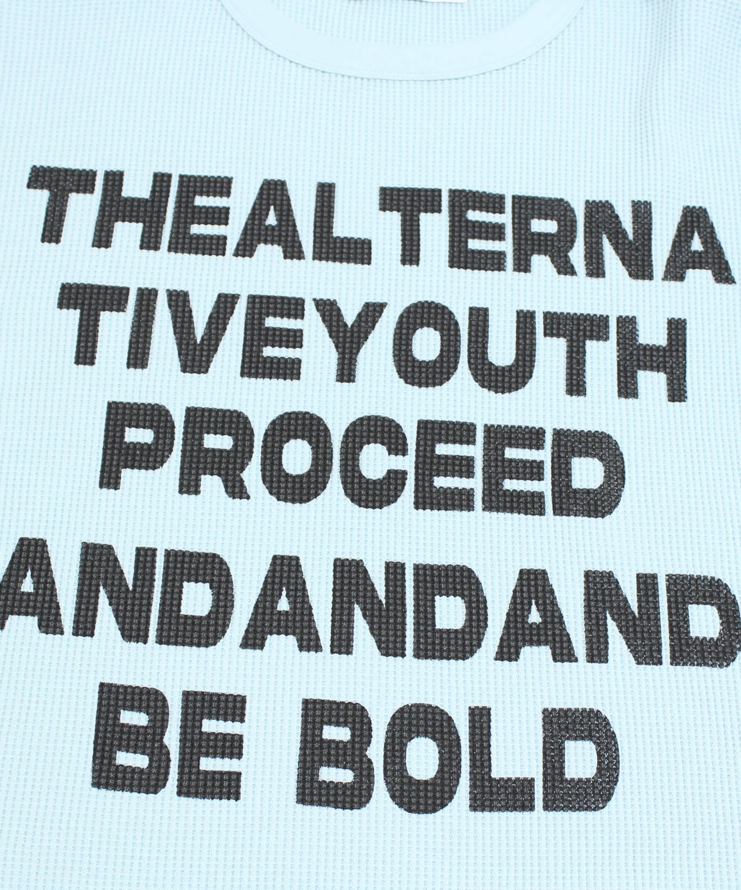 大胆にプリントされたかすれ感のあるロゴがよりインパクトのあるアイテムです。