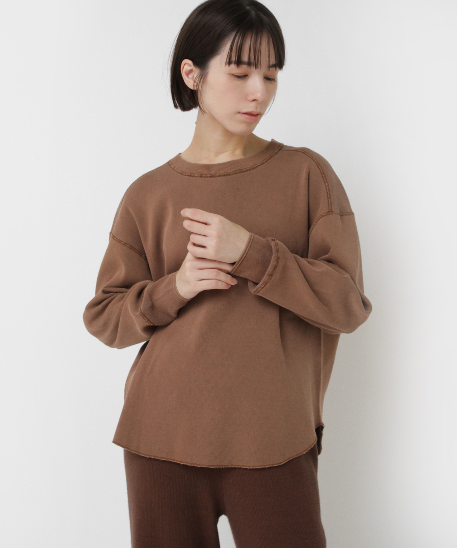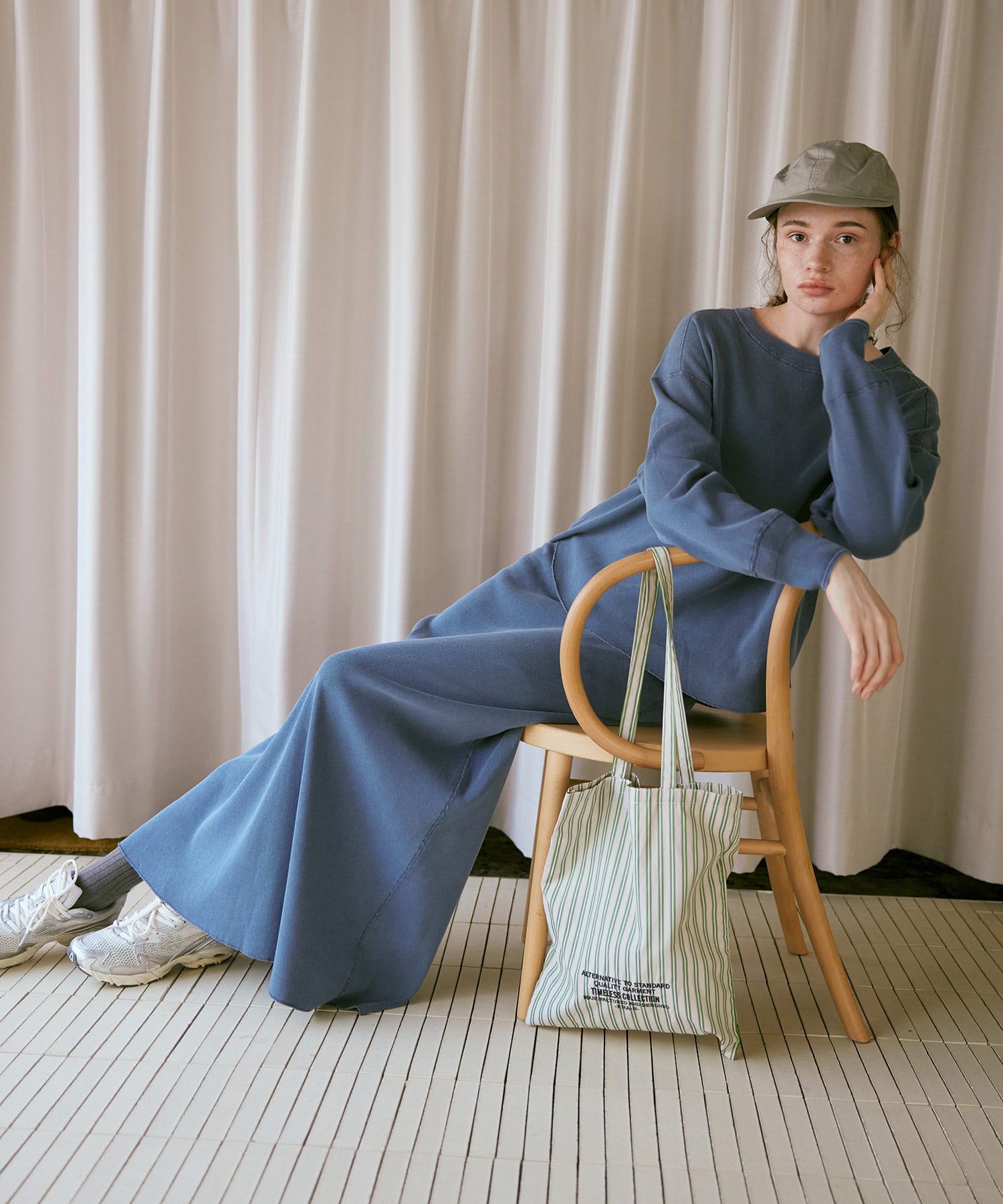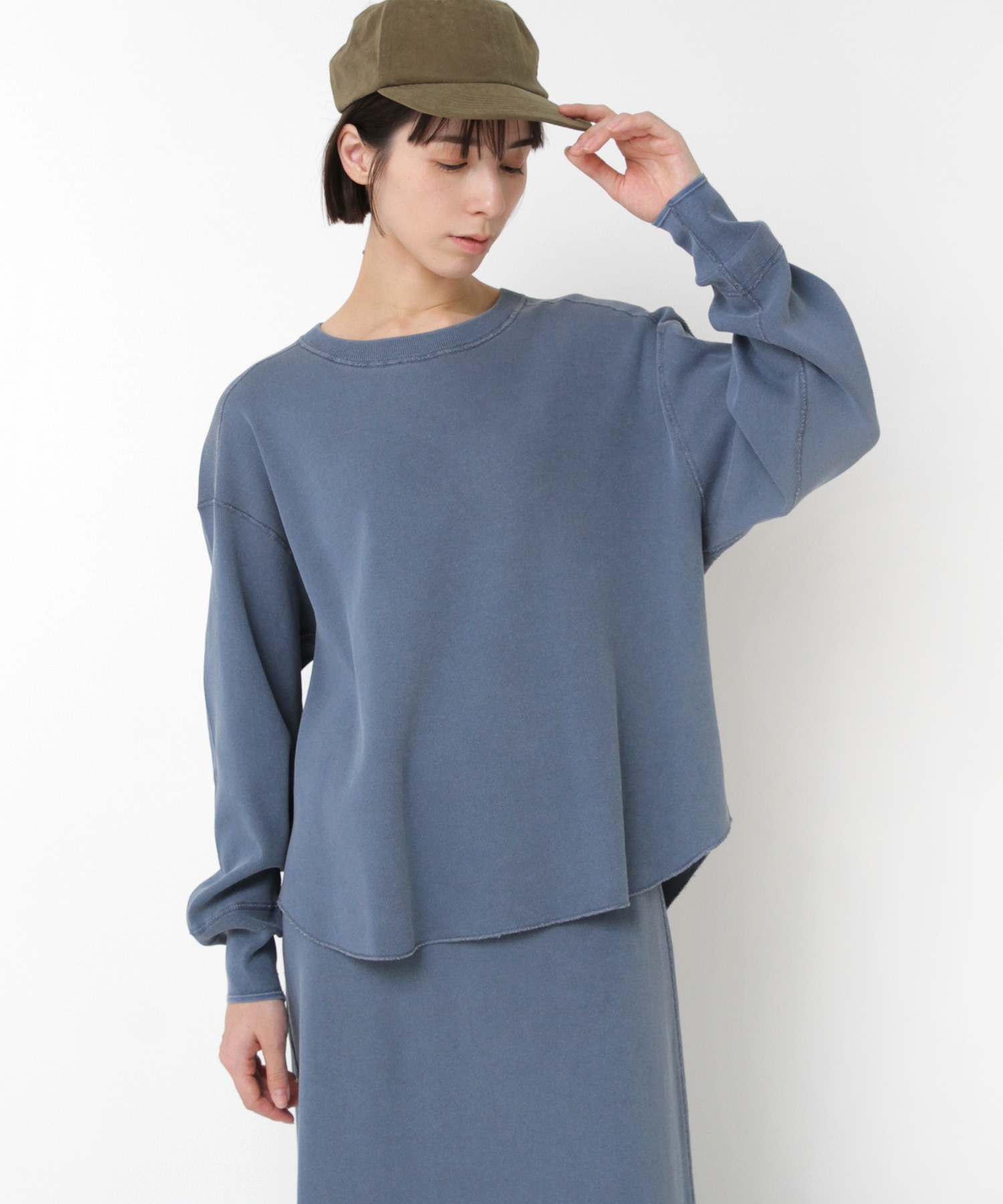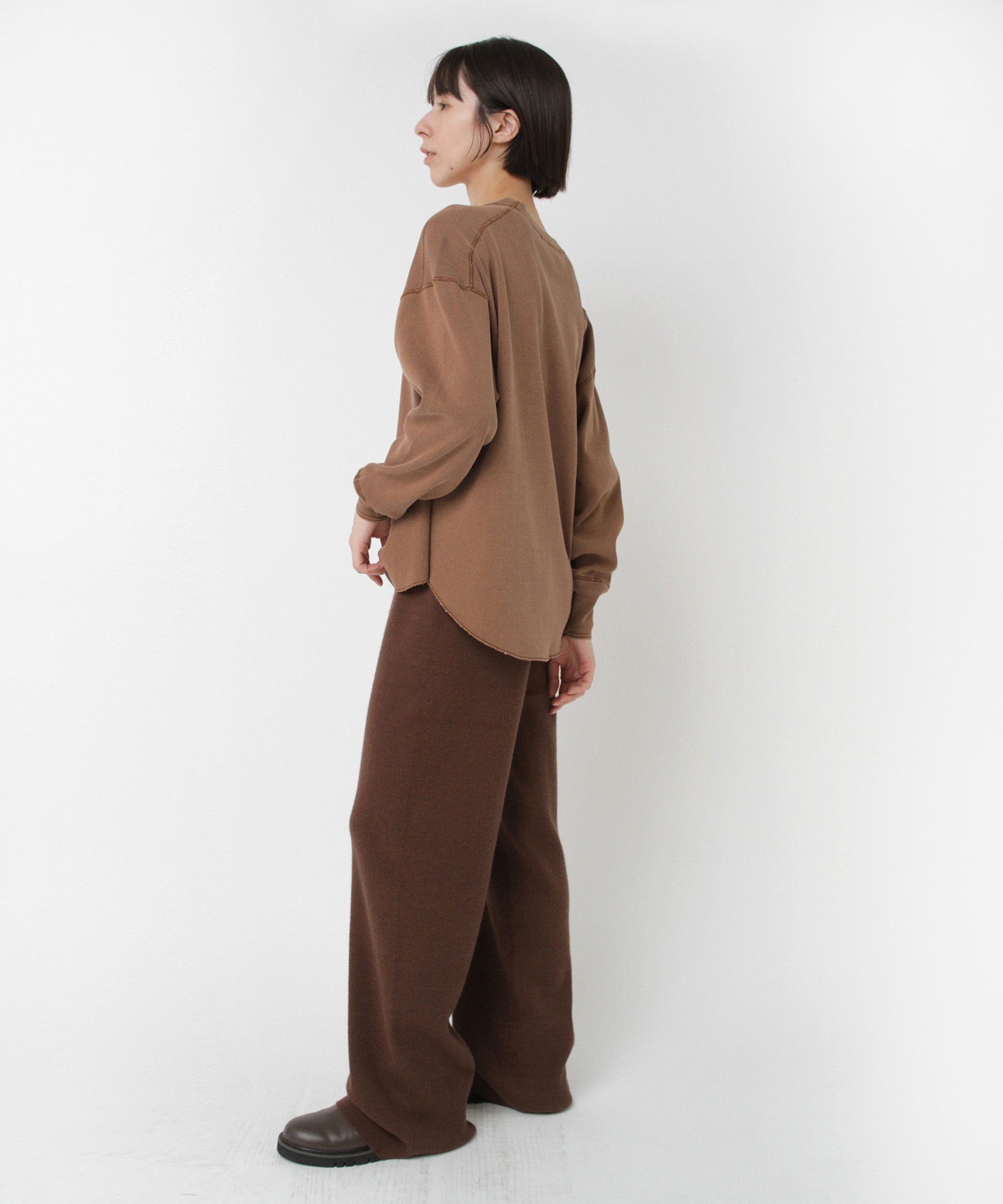 顔料染めで仕上げたコットンフライス生地は、柔らかく肌に寄り添いながらも、表面にはざっくりとした凹凸が特徴。