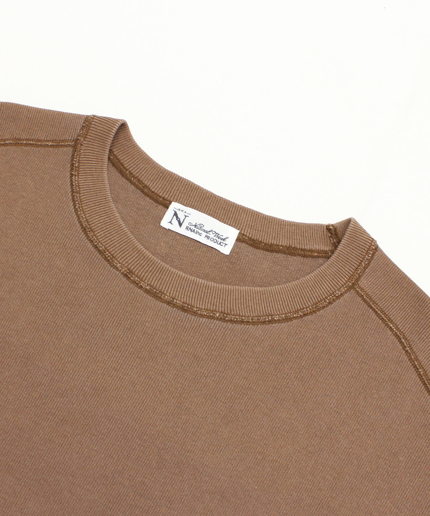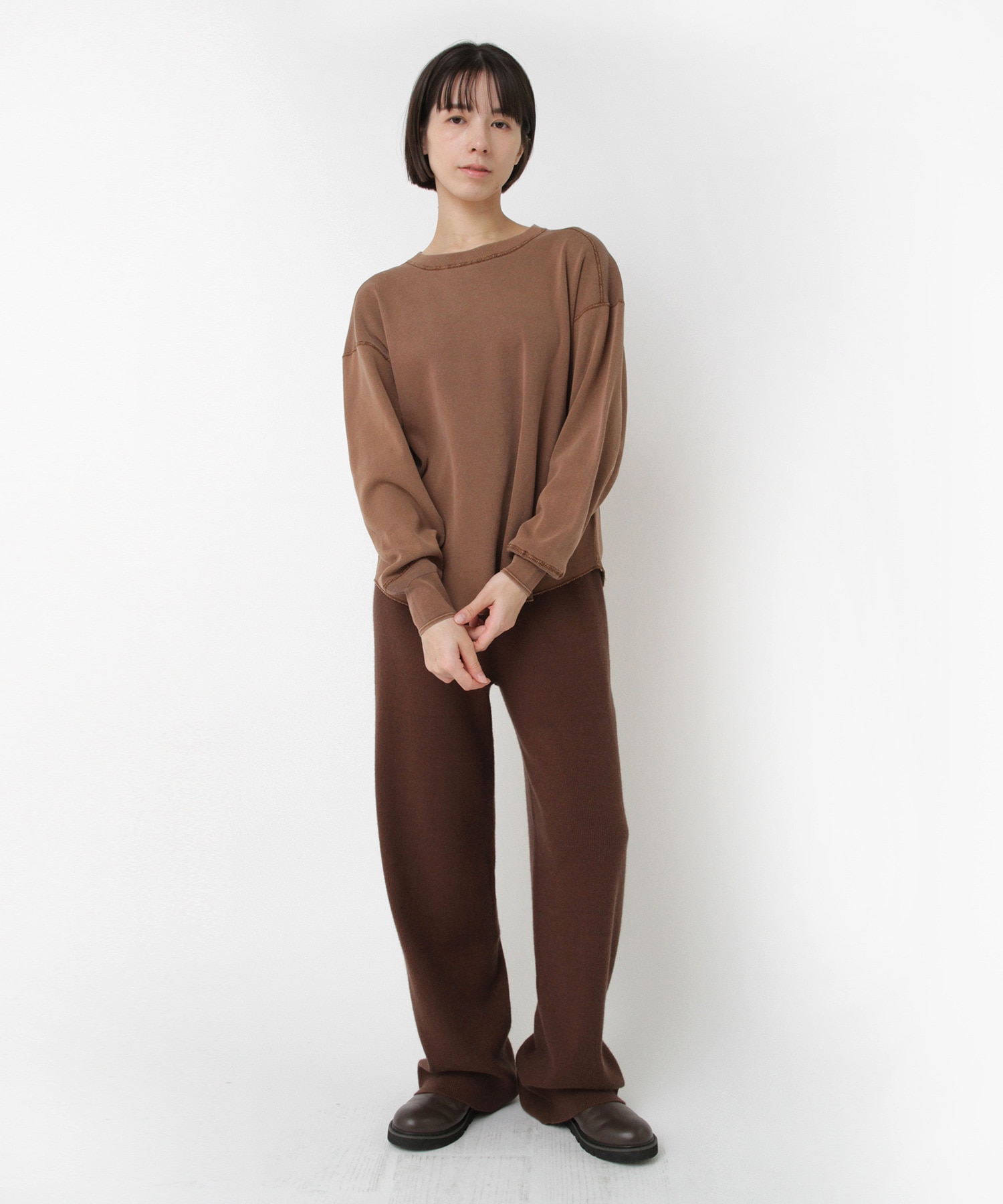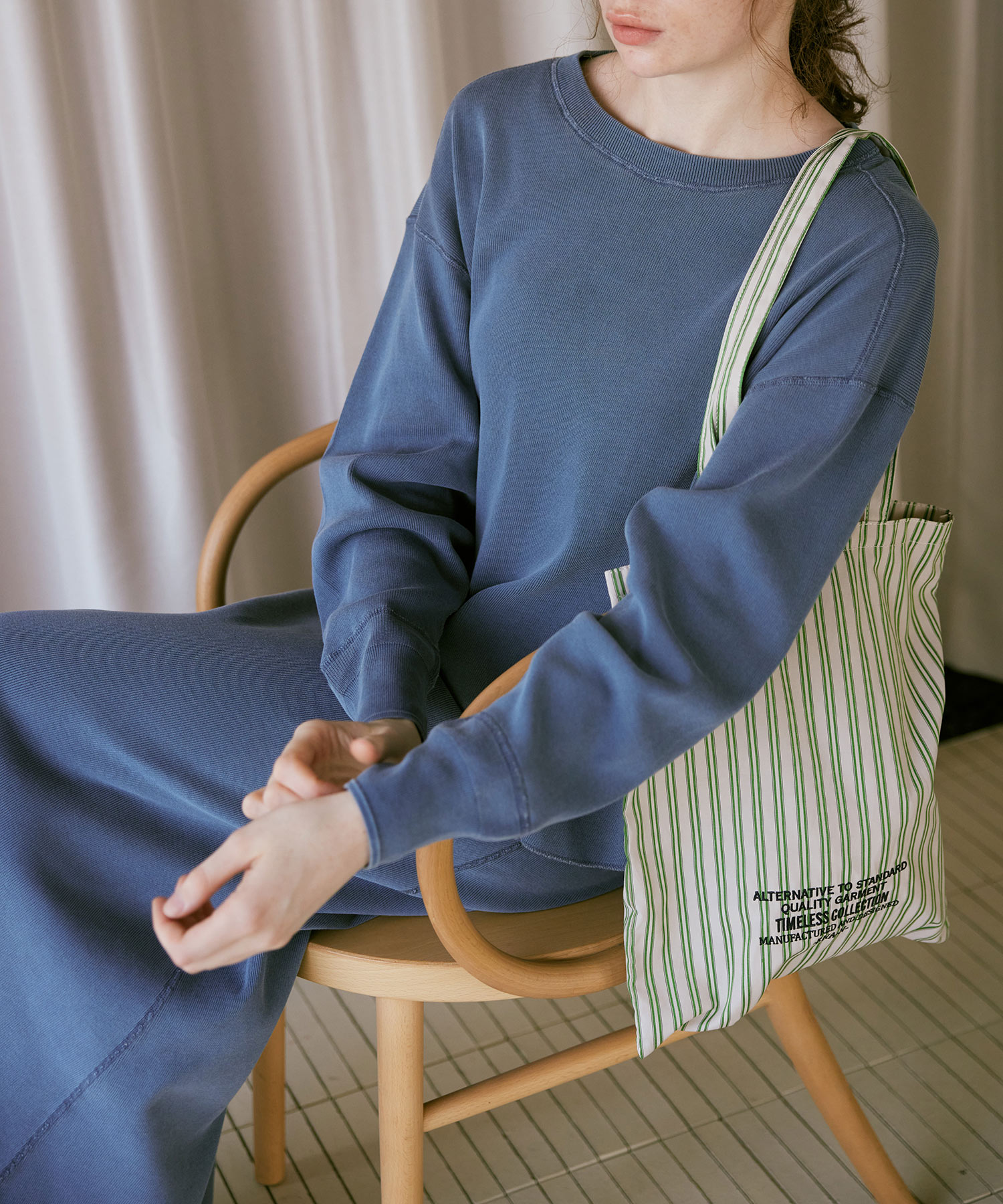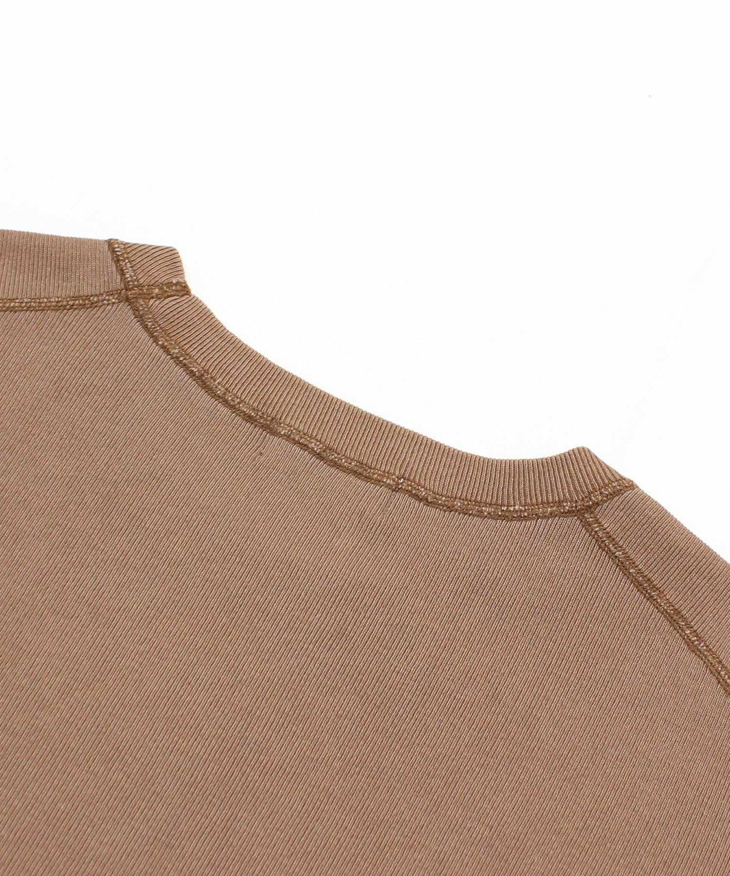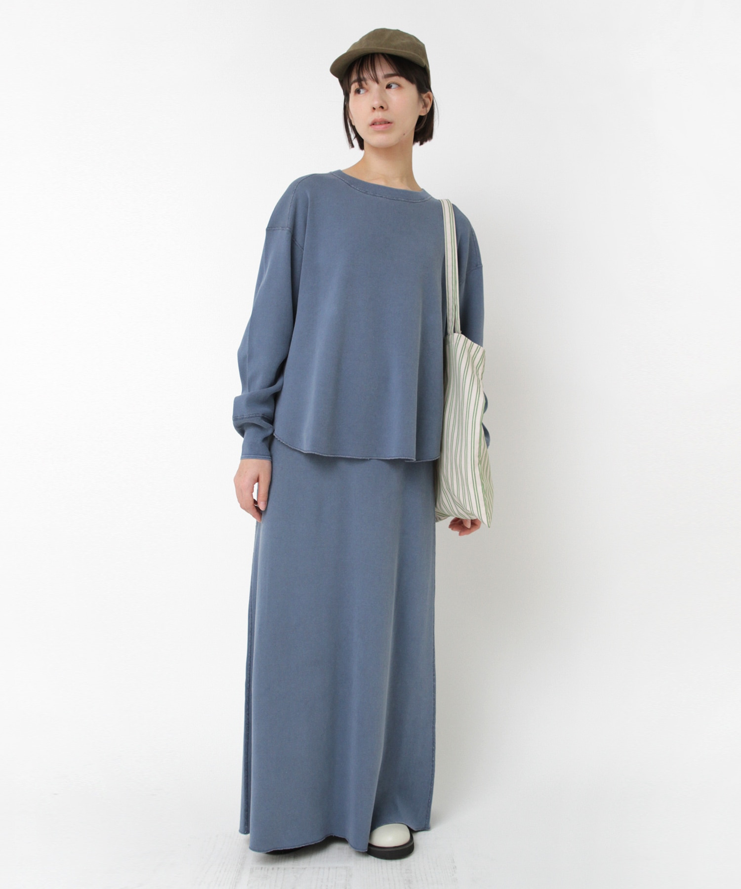 顔料染めで仕上げたコットンフライス生地は、柔らかく肌に寄り添いながらも、表面にはざっくりとした凹凸が特徴。