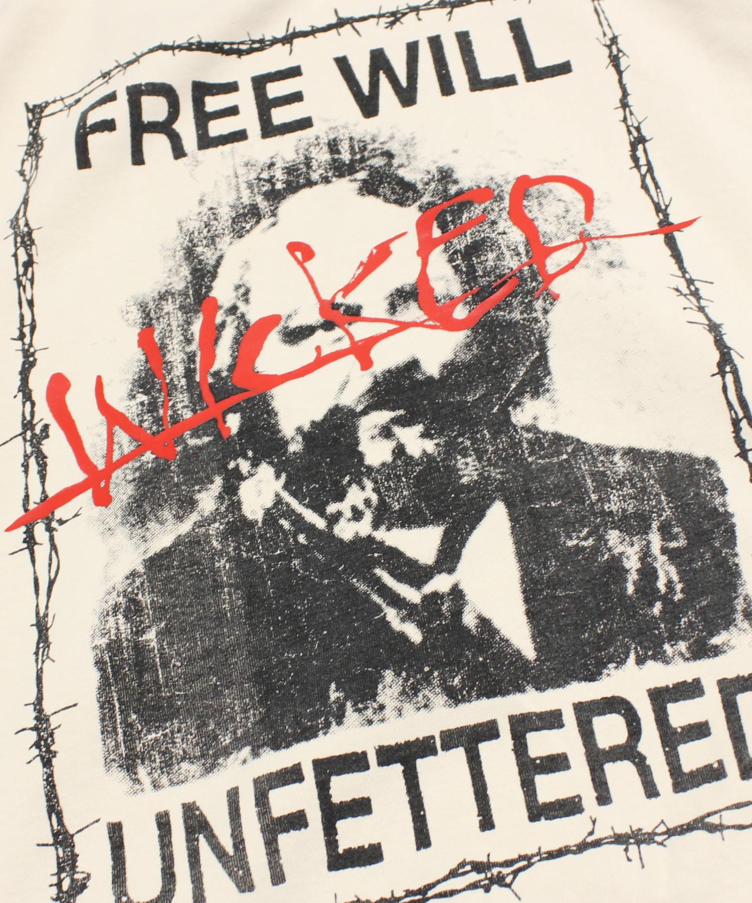 コラージュして作った架空の自由主義者の肖像画がプリントされています。