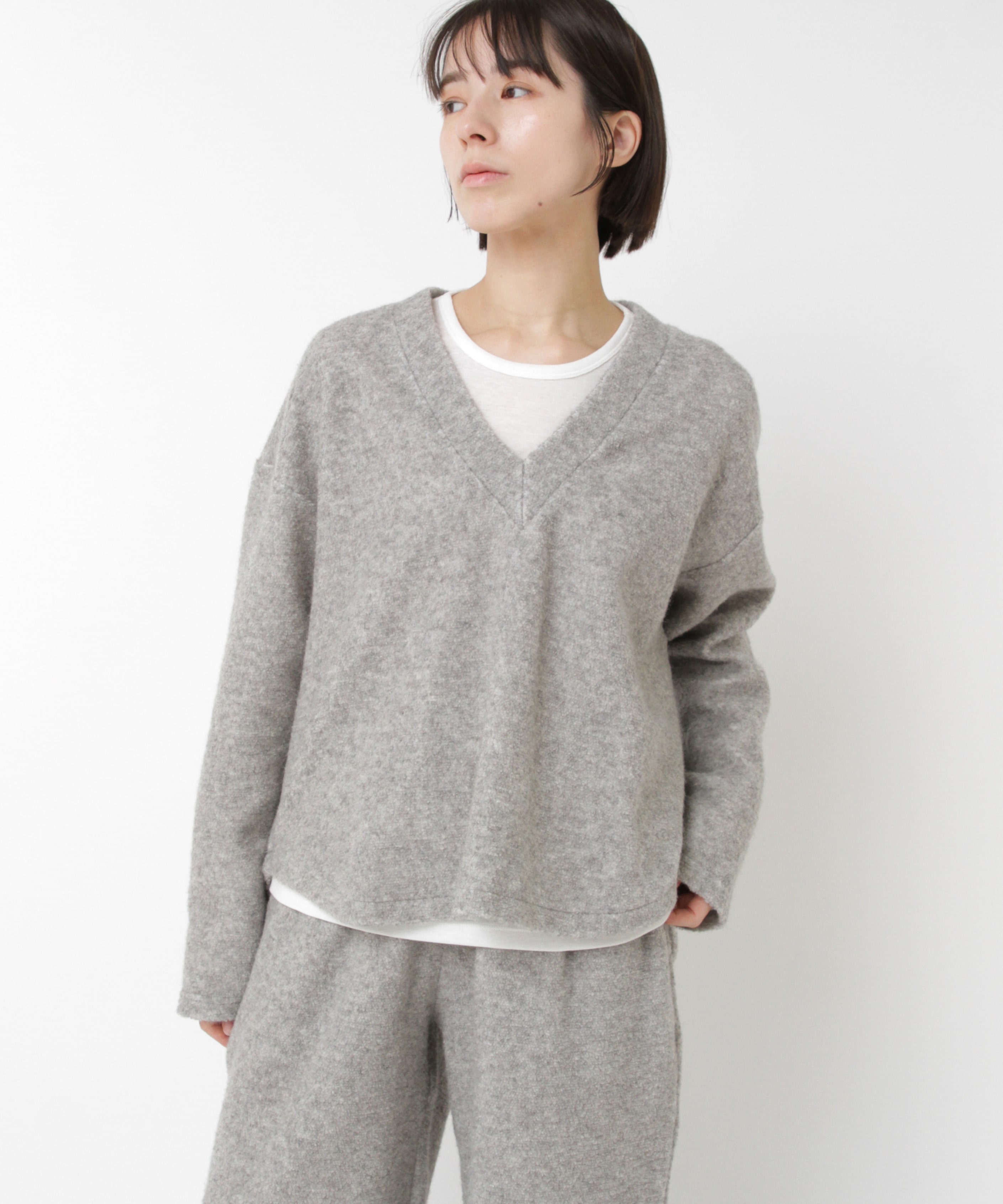 深めのVネックにアレンジし、ネックラインにほどよいデザインを施したプルオーバー