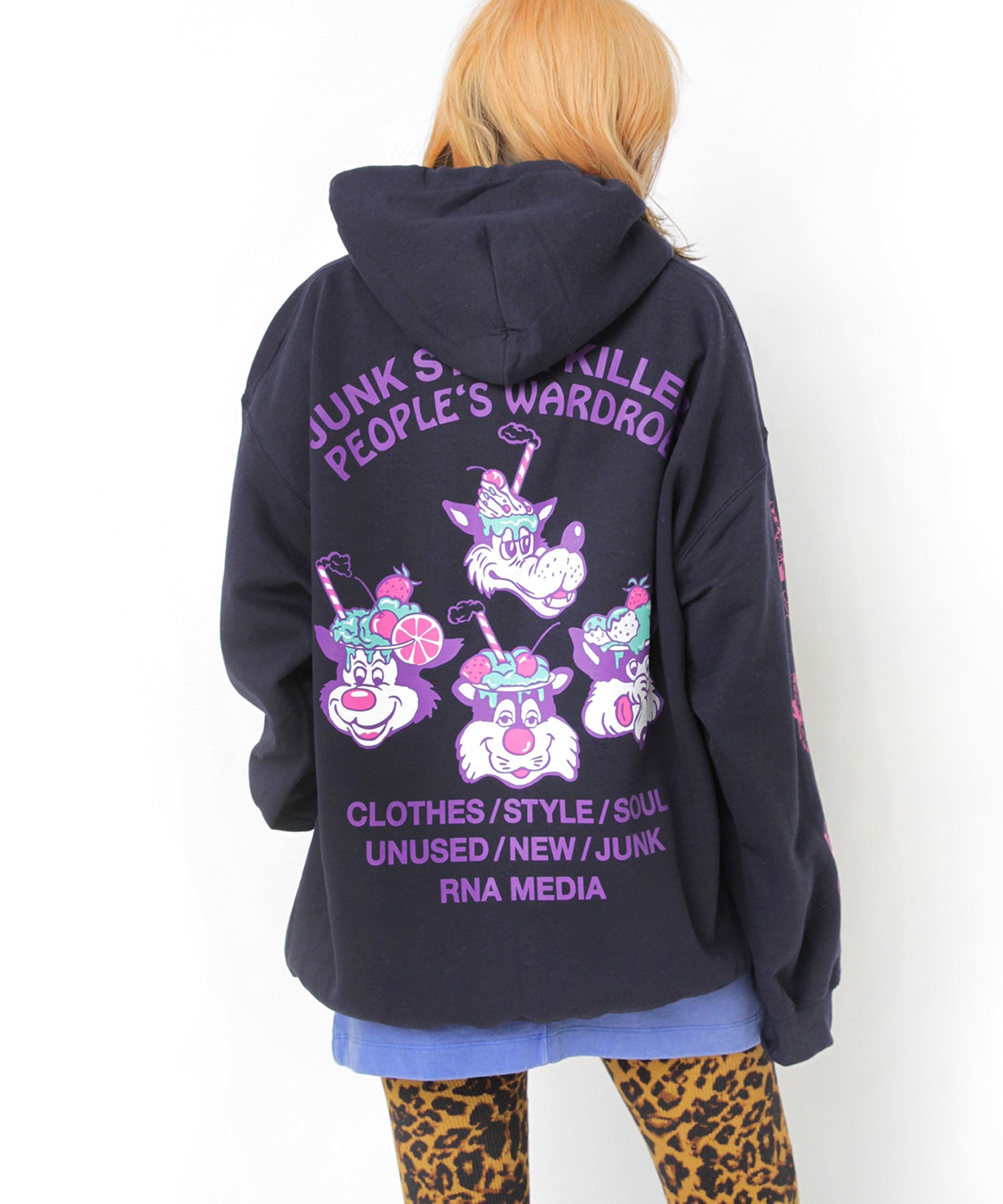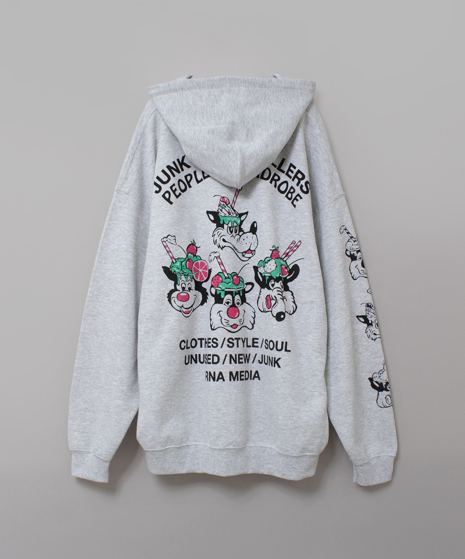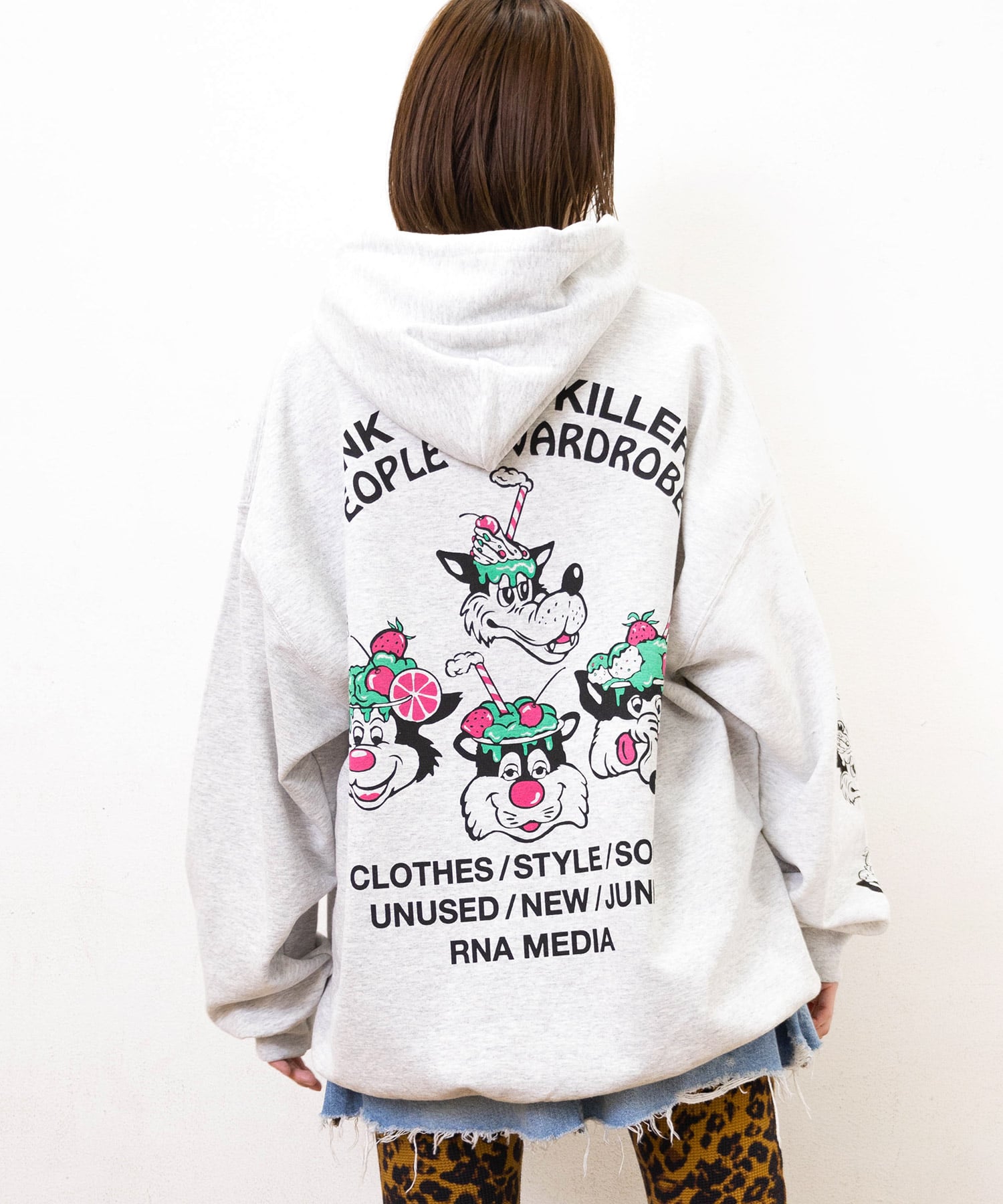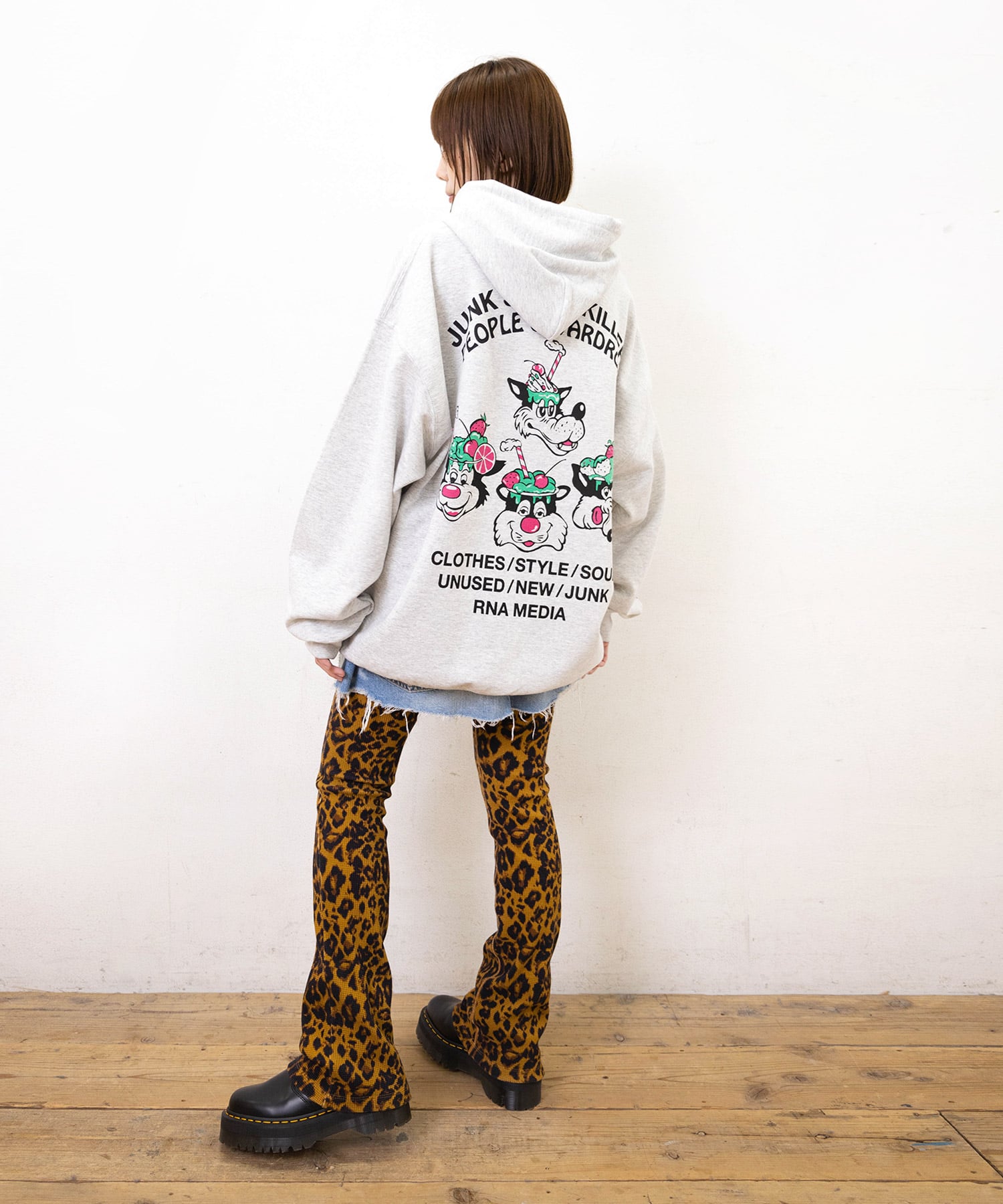 ジャンクでブラックユーモアのあるキャラプリントパーカー