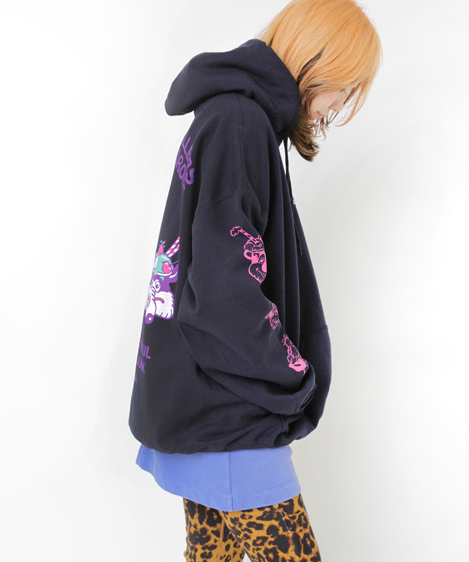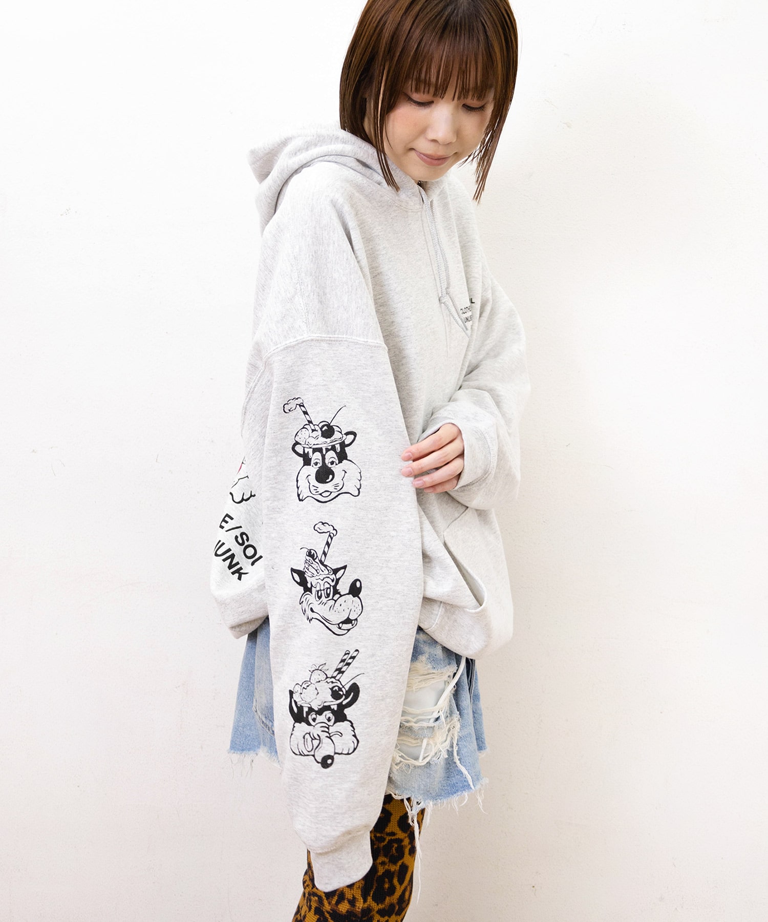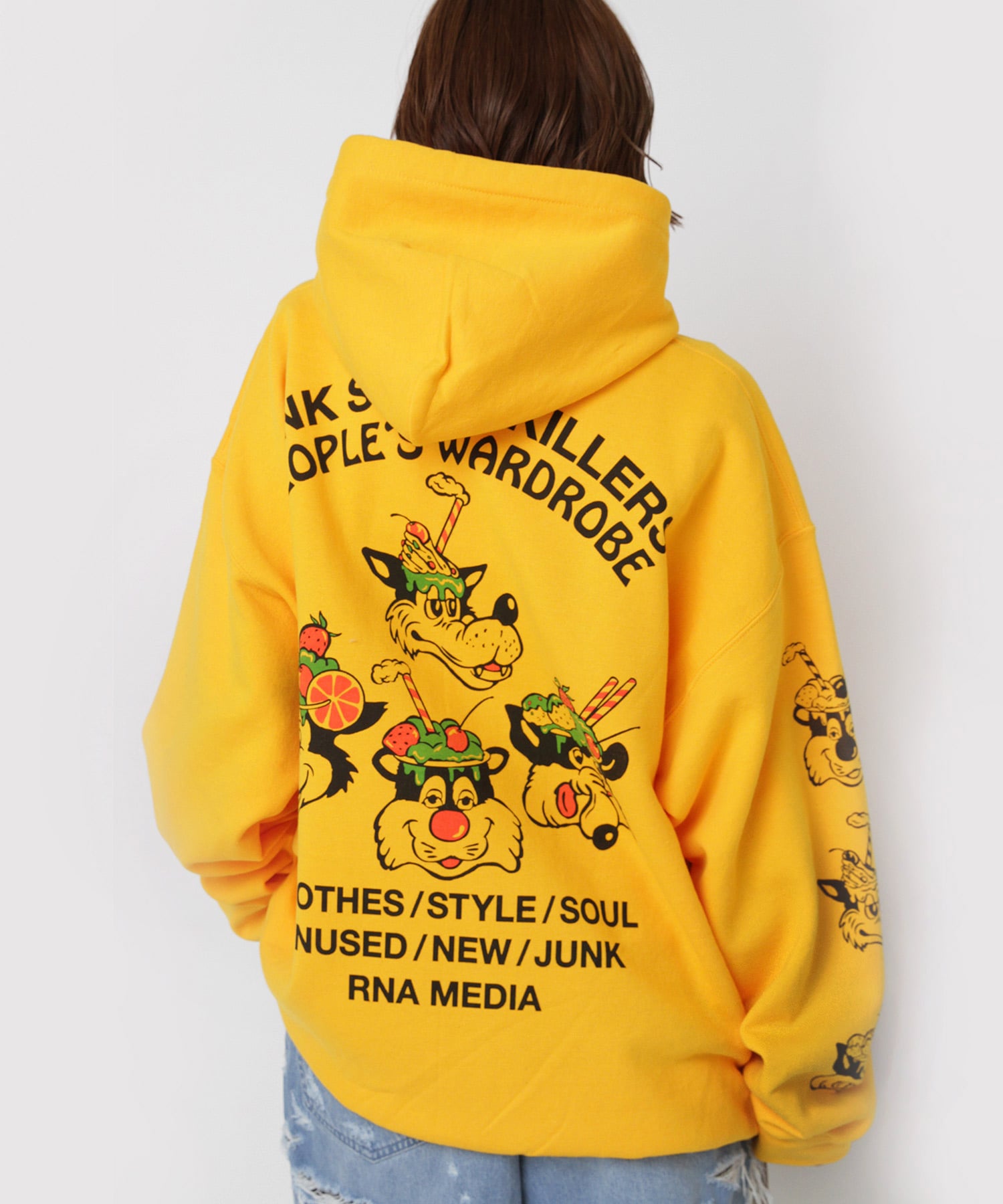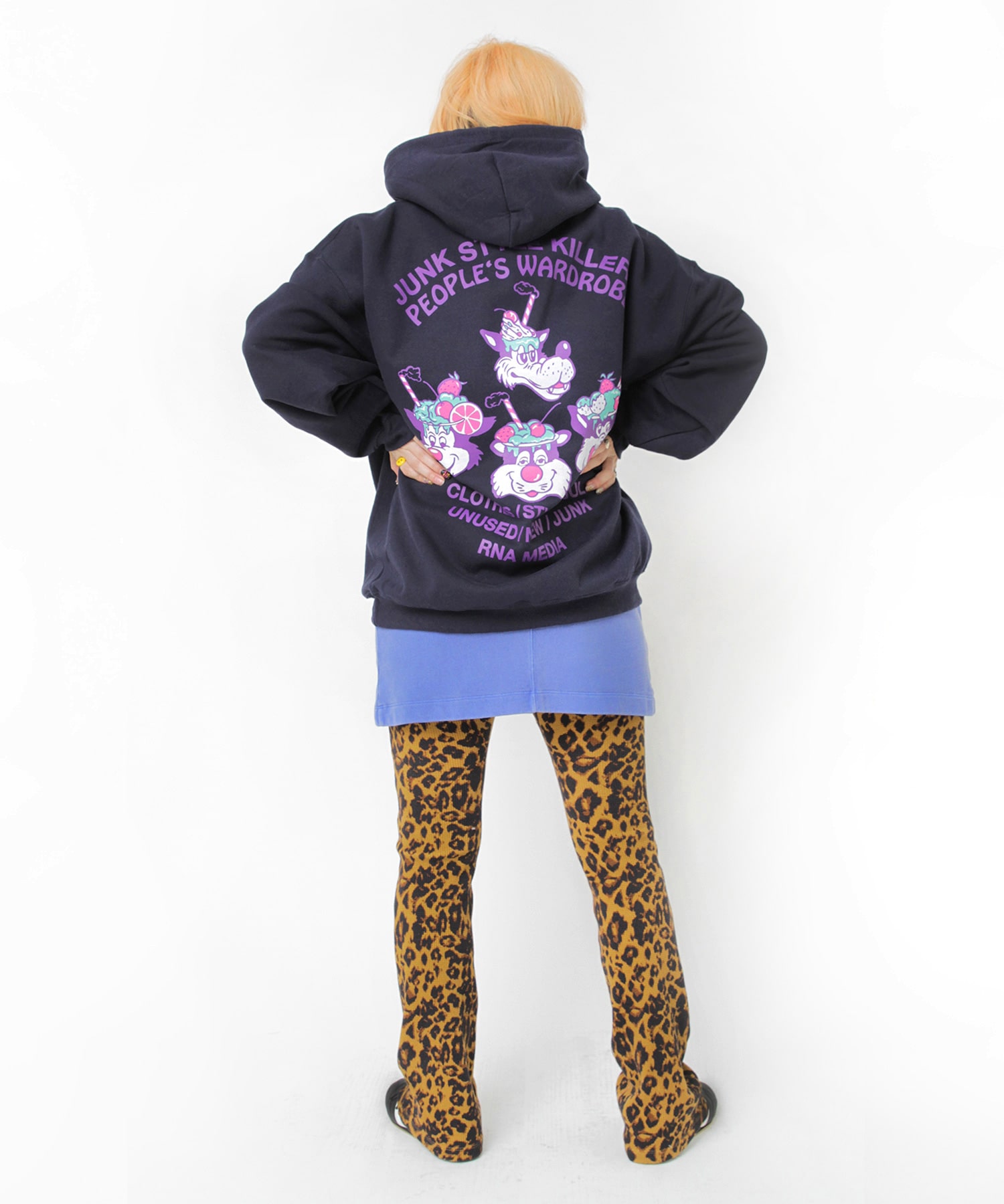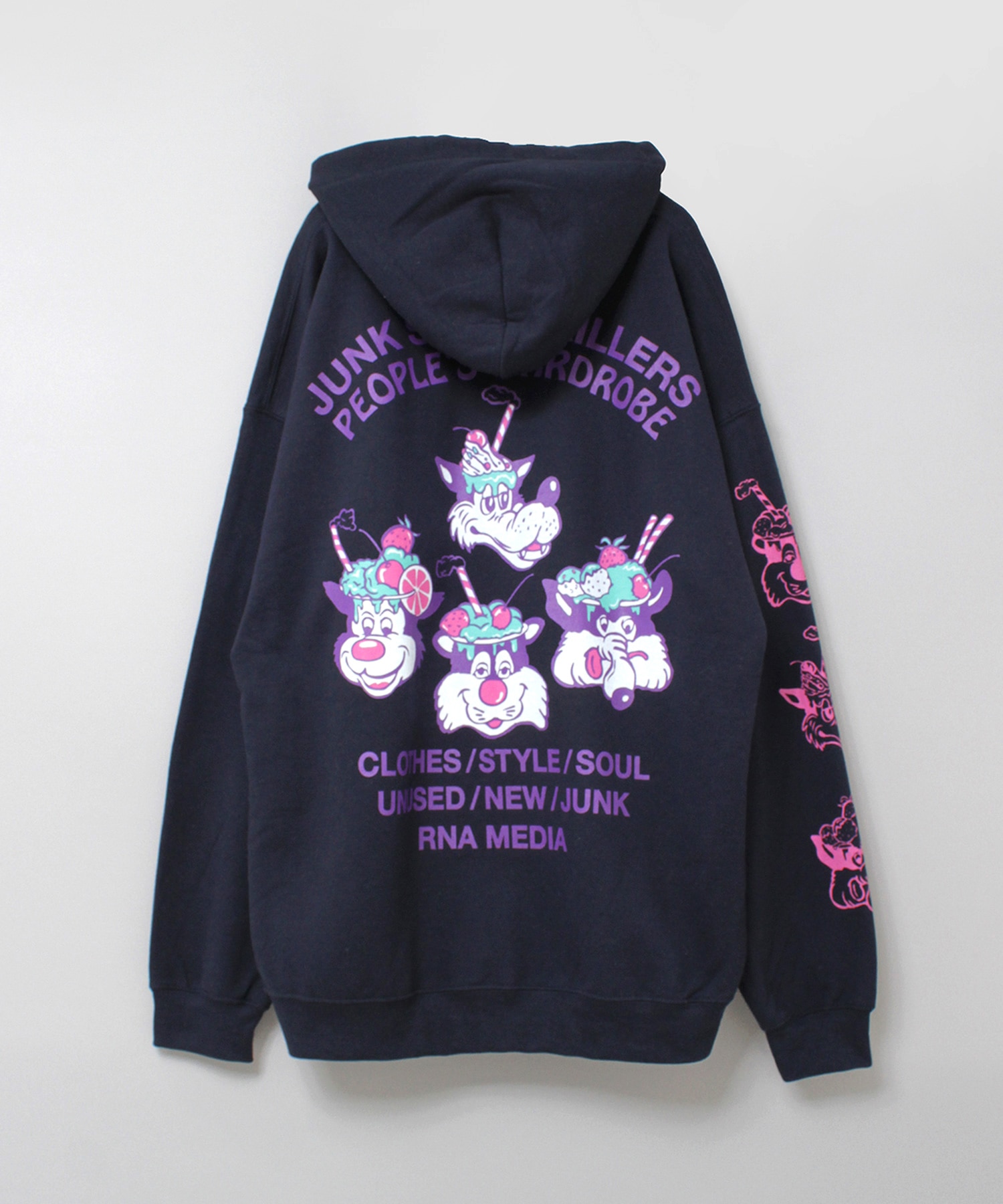 ジャンクでブラックユーモアのあるキャラプリントパーカー