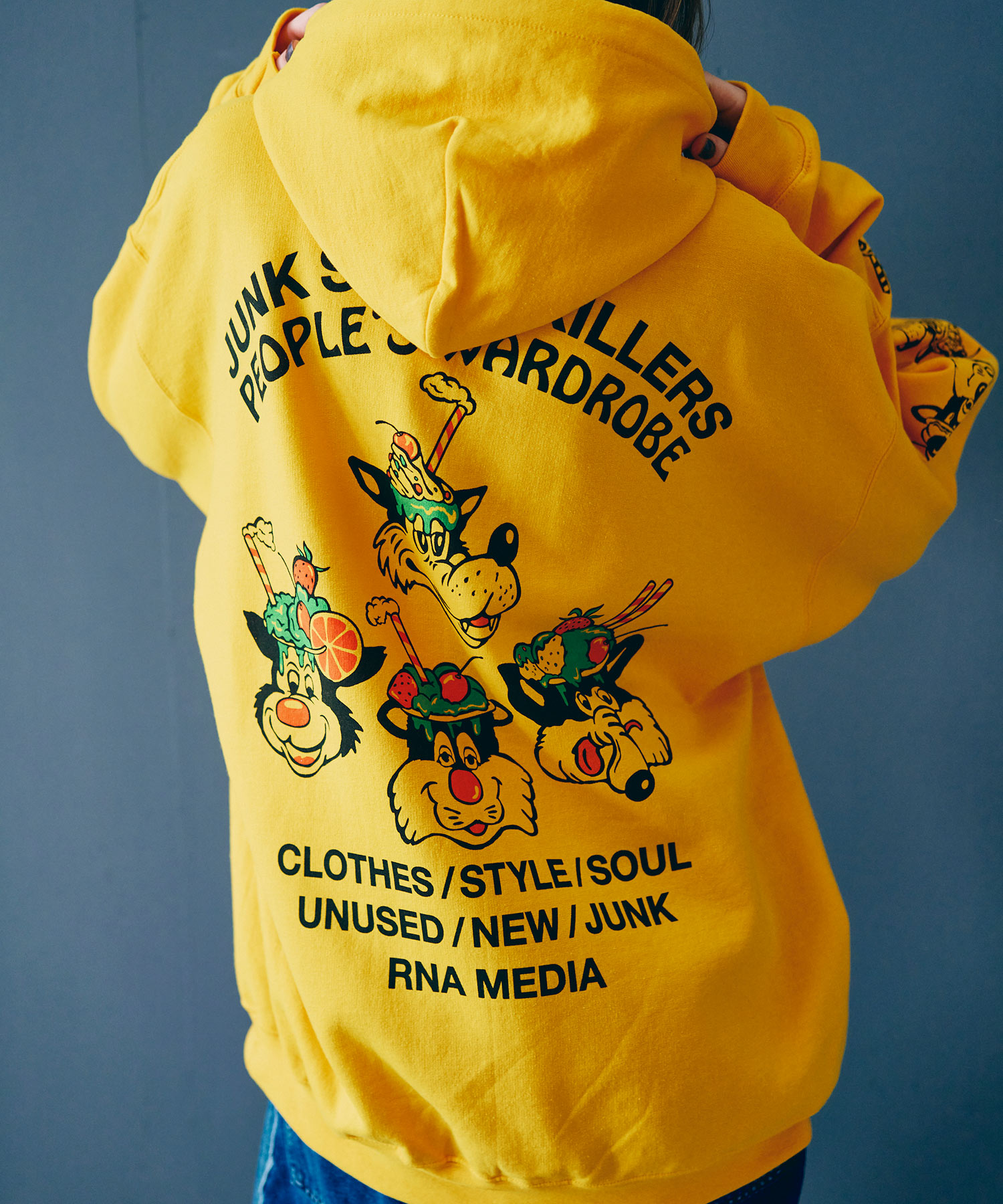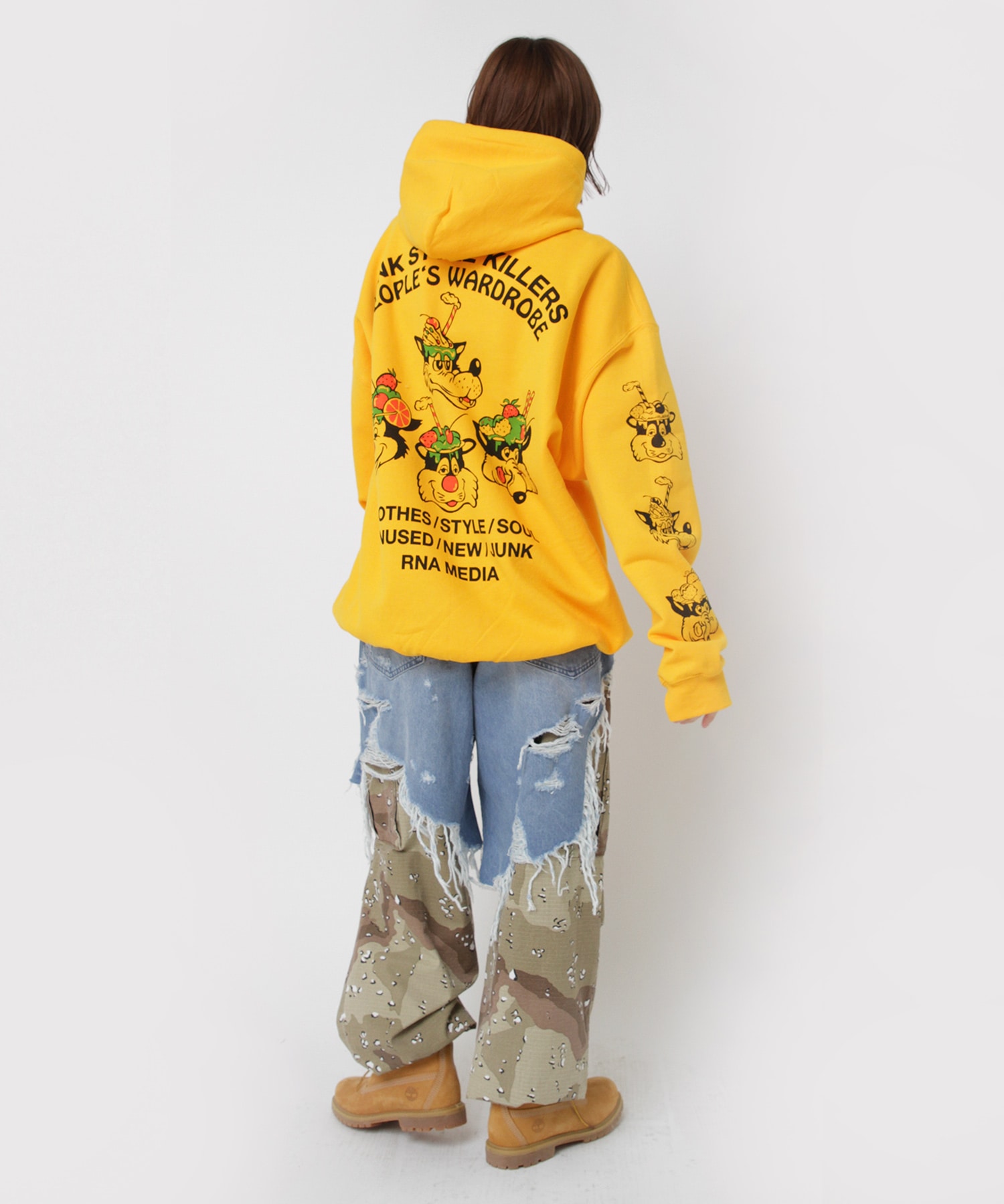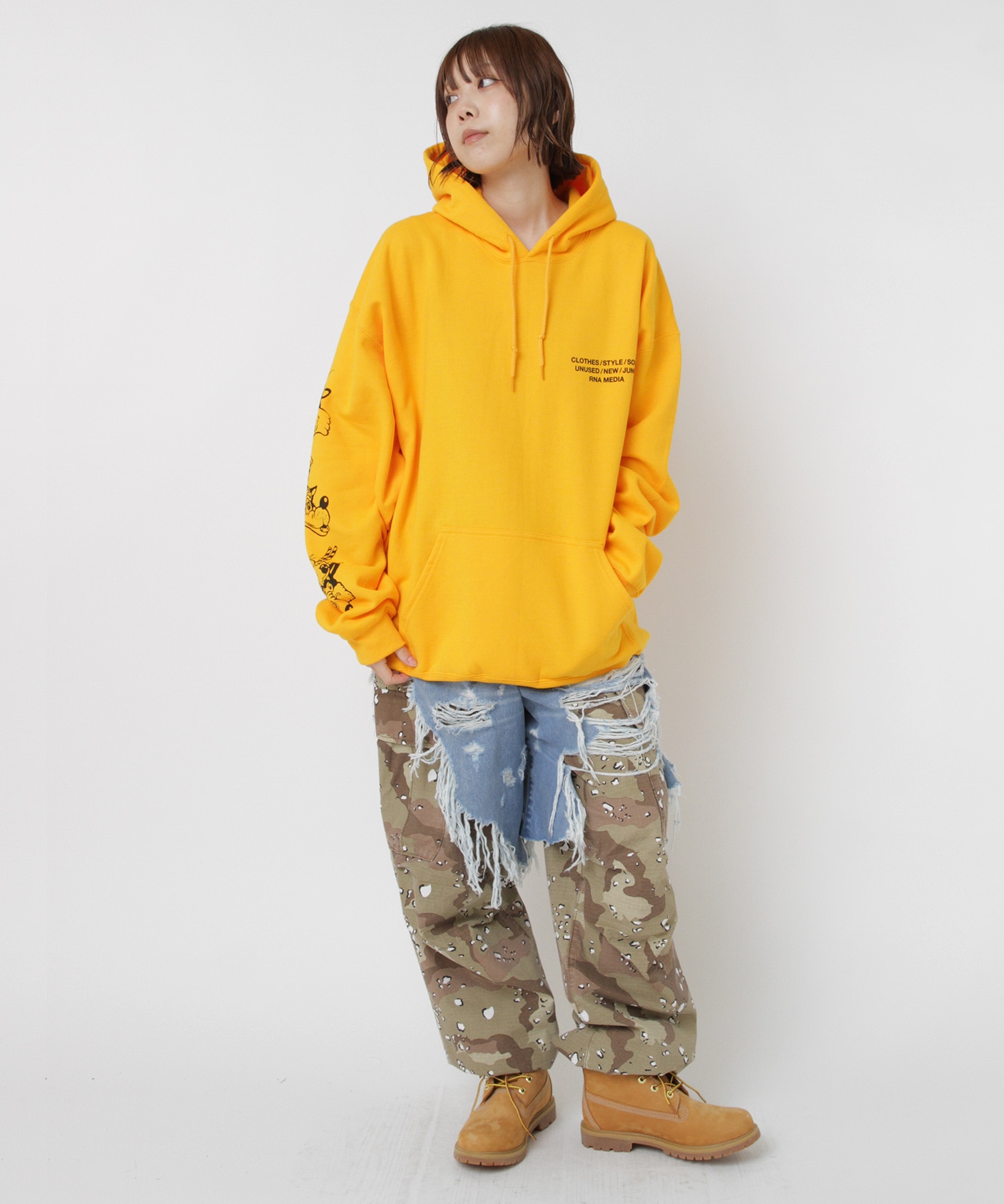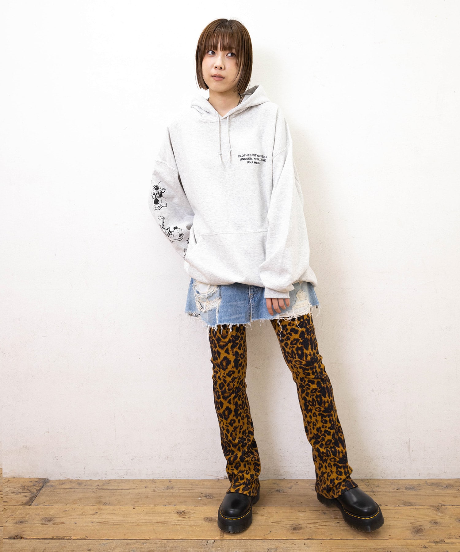 ジャンクでブラックユーモアのあるキャラプリントパーカー